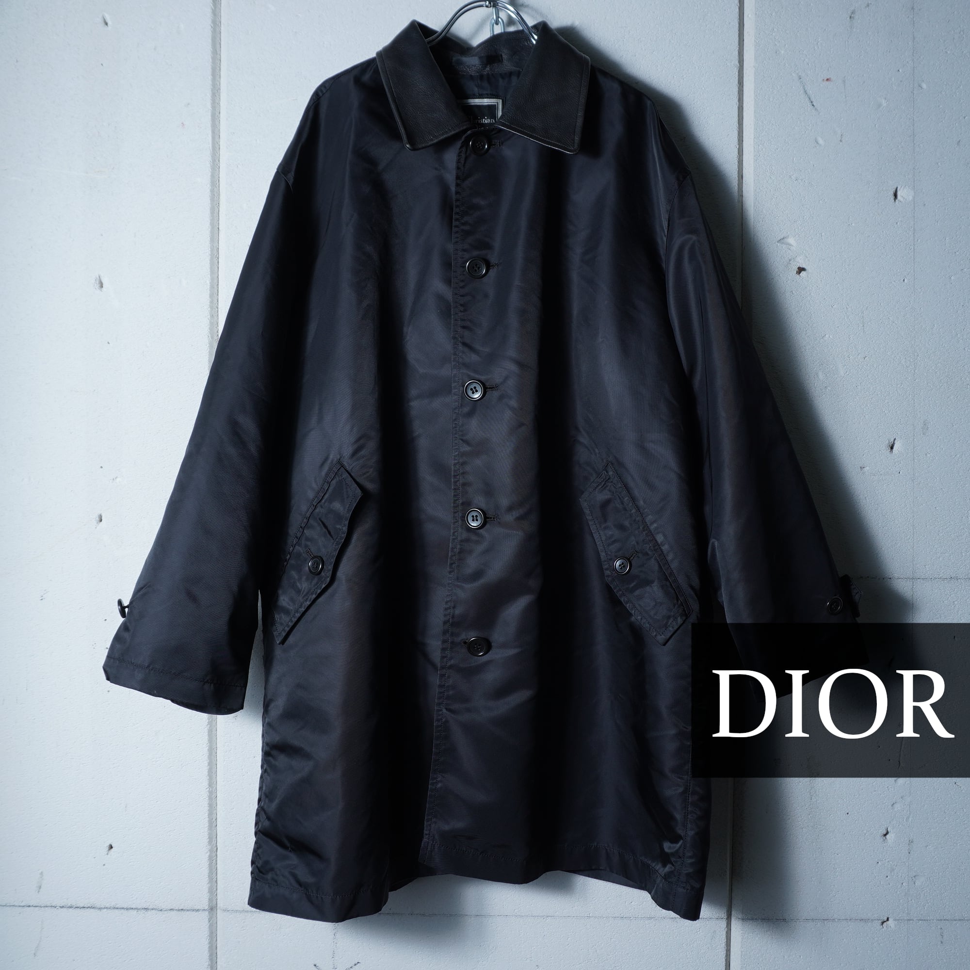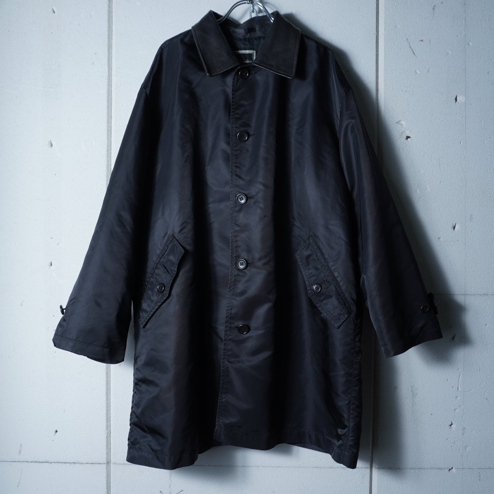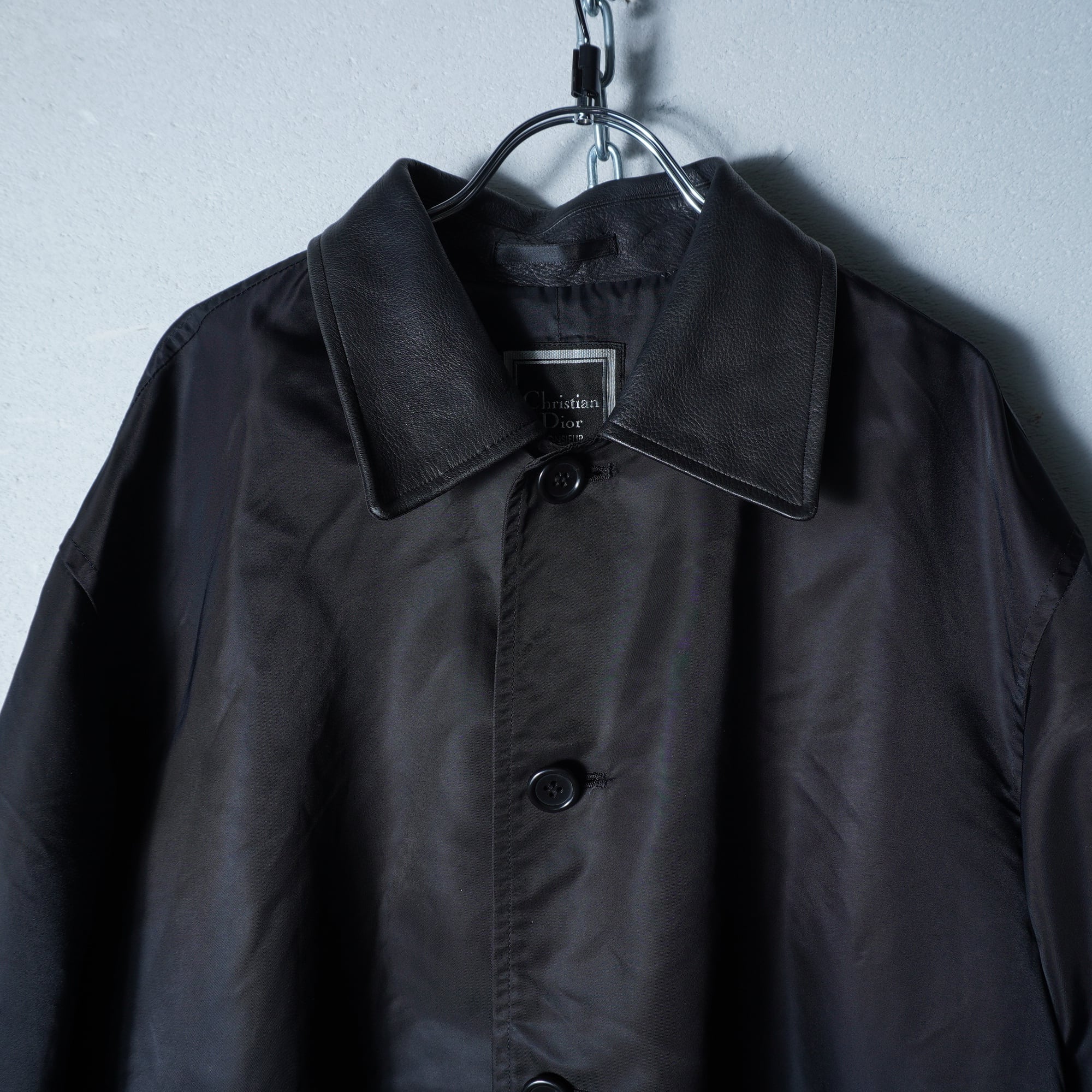 【Christian Dior】クリスチャンディオール ラムレザーカラーナイロンコート black