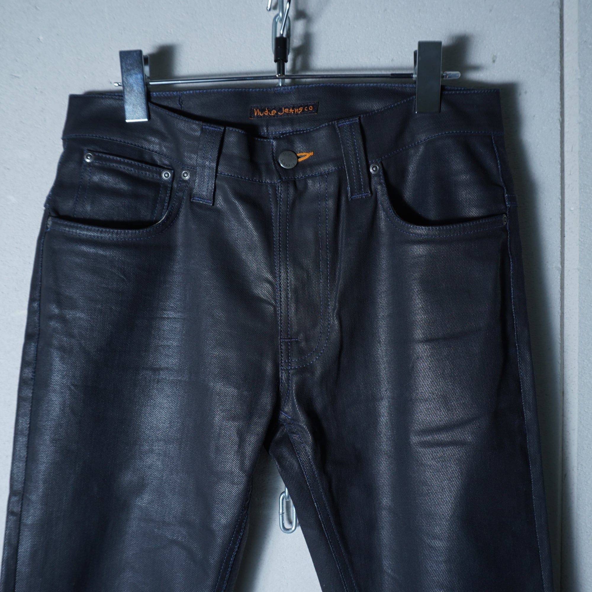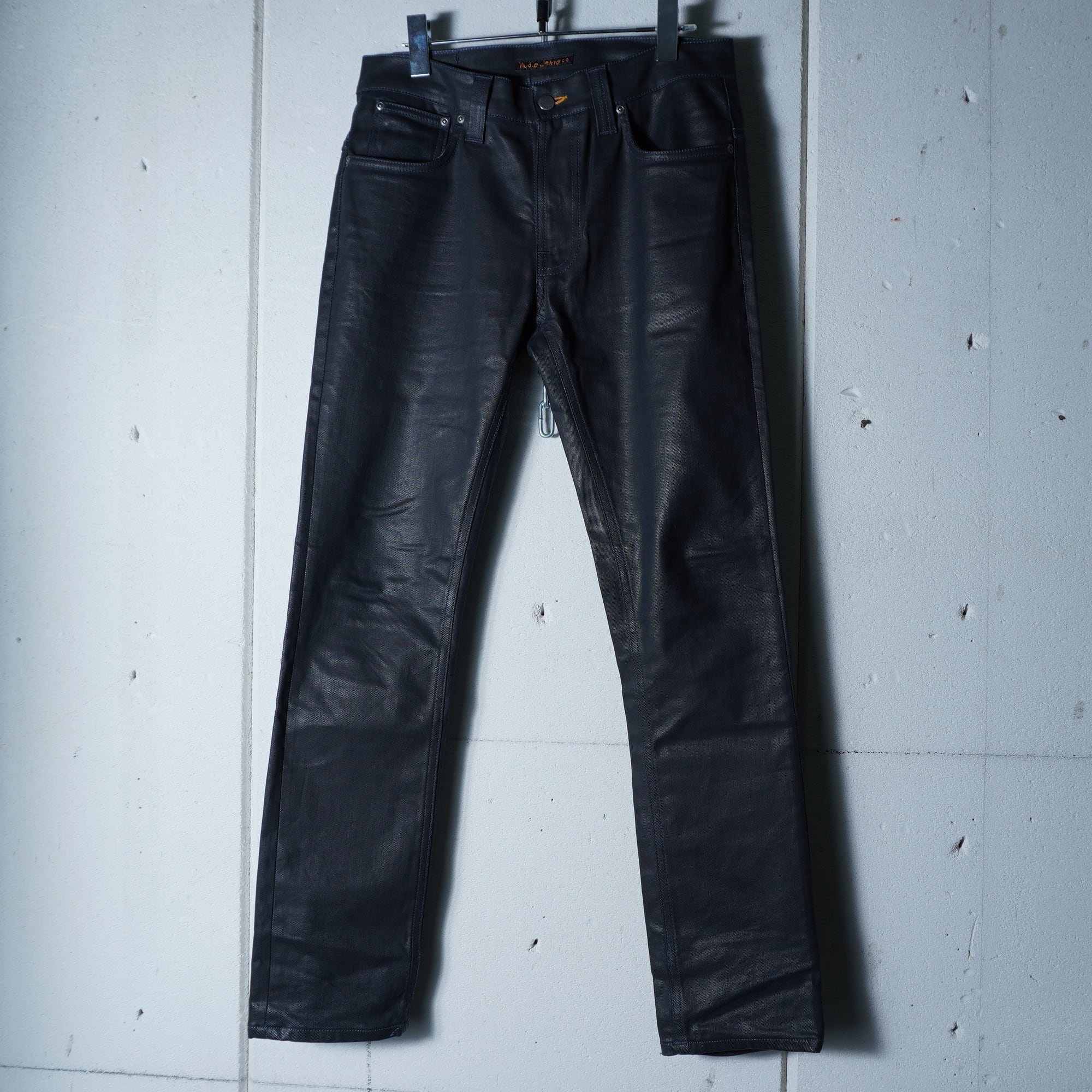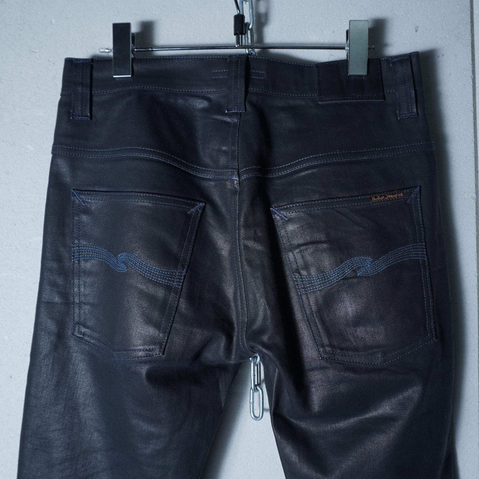【Nudie Jeans】ヌーディージーンズ ”dark wear"コーティングスキニーデニムパンツ black