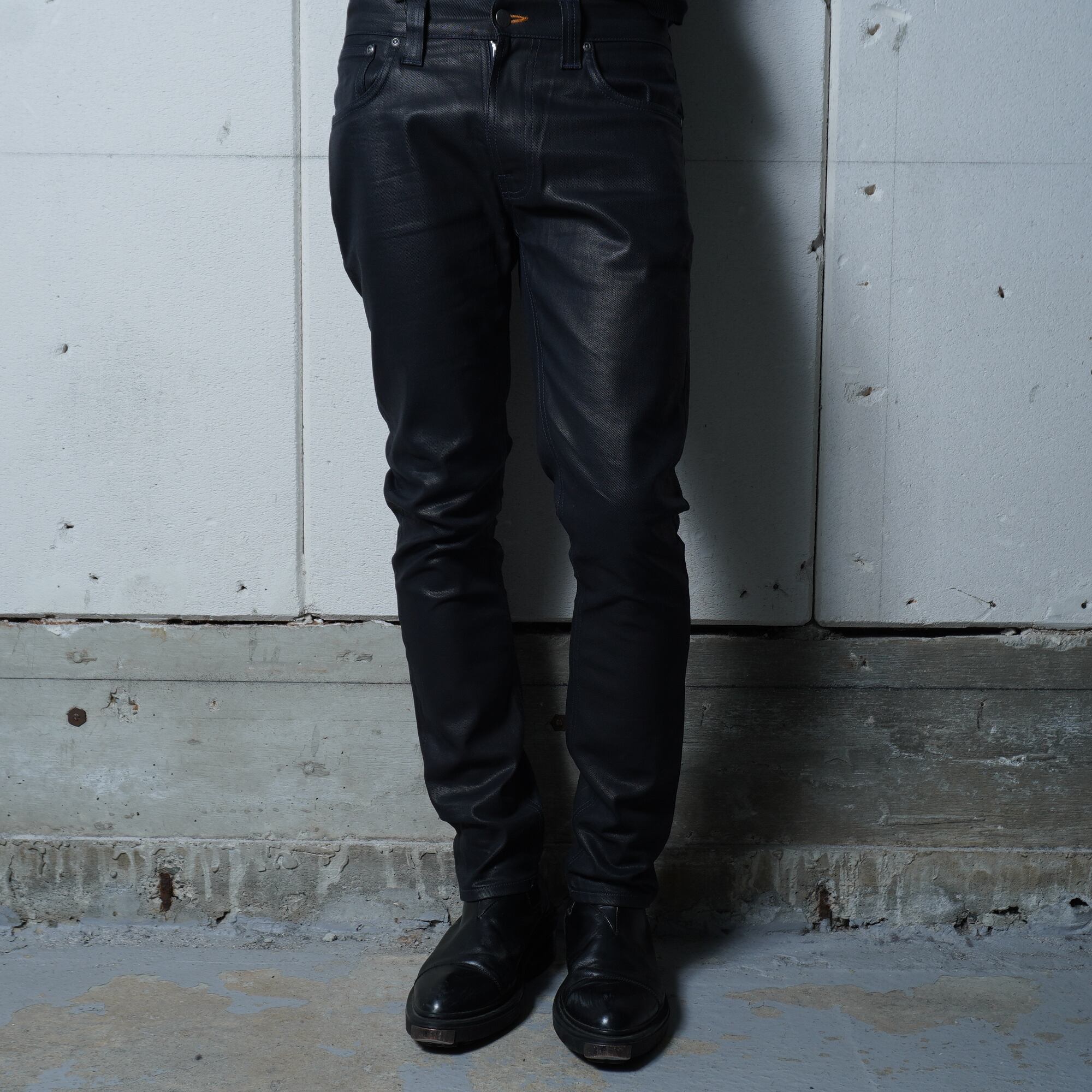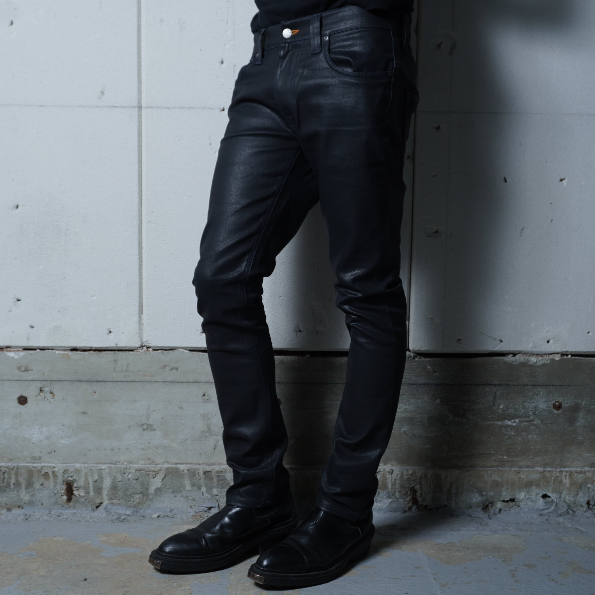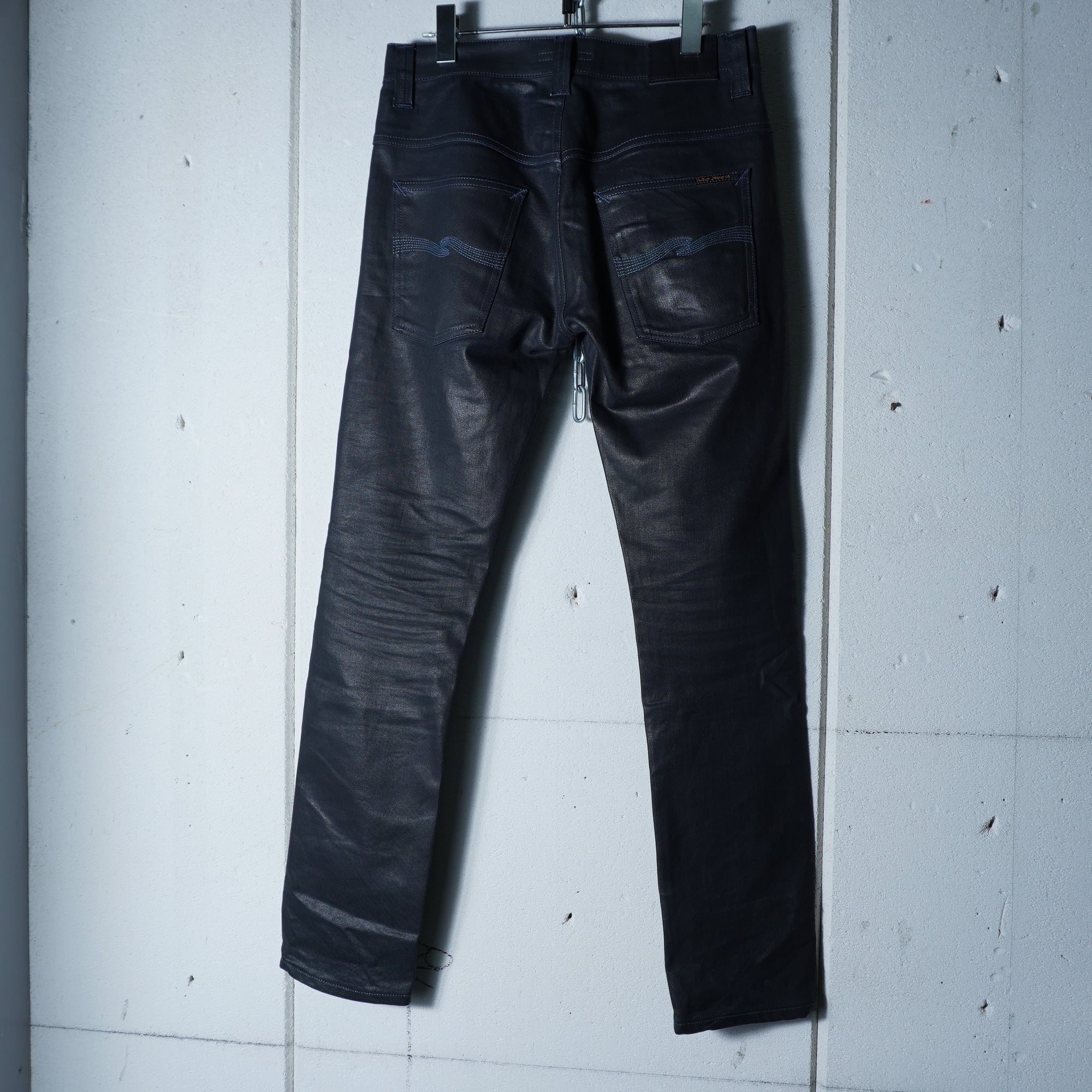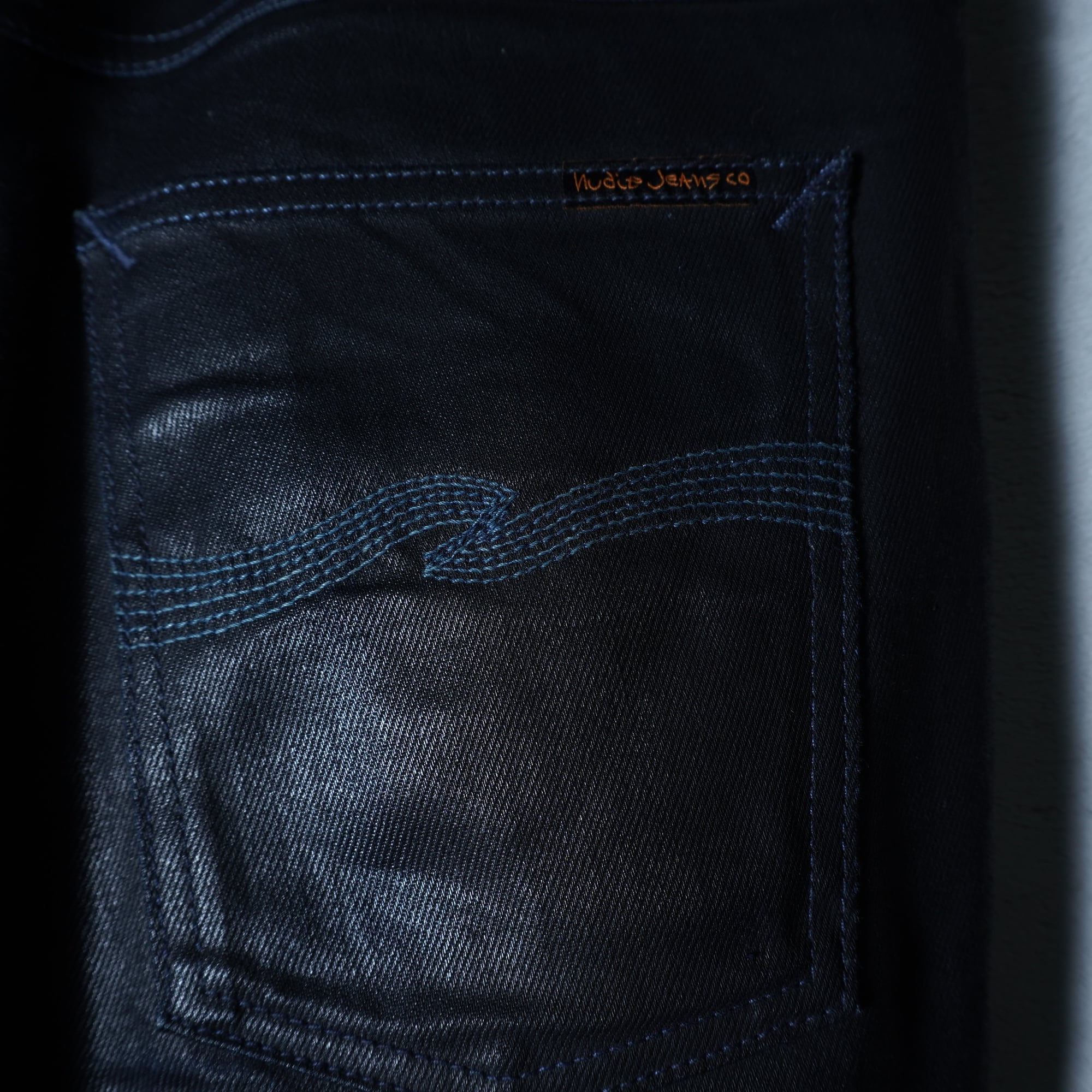 【Nudie Jeans】ヌーディージーンズ ”dark wear"コーティングスキニーデニムパンツ black