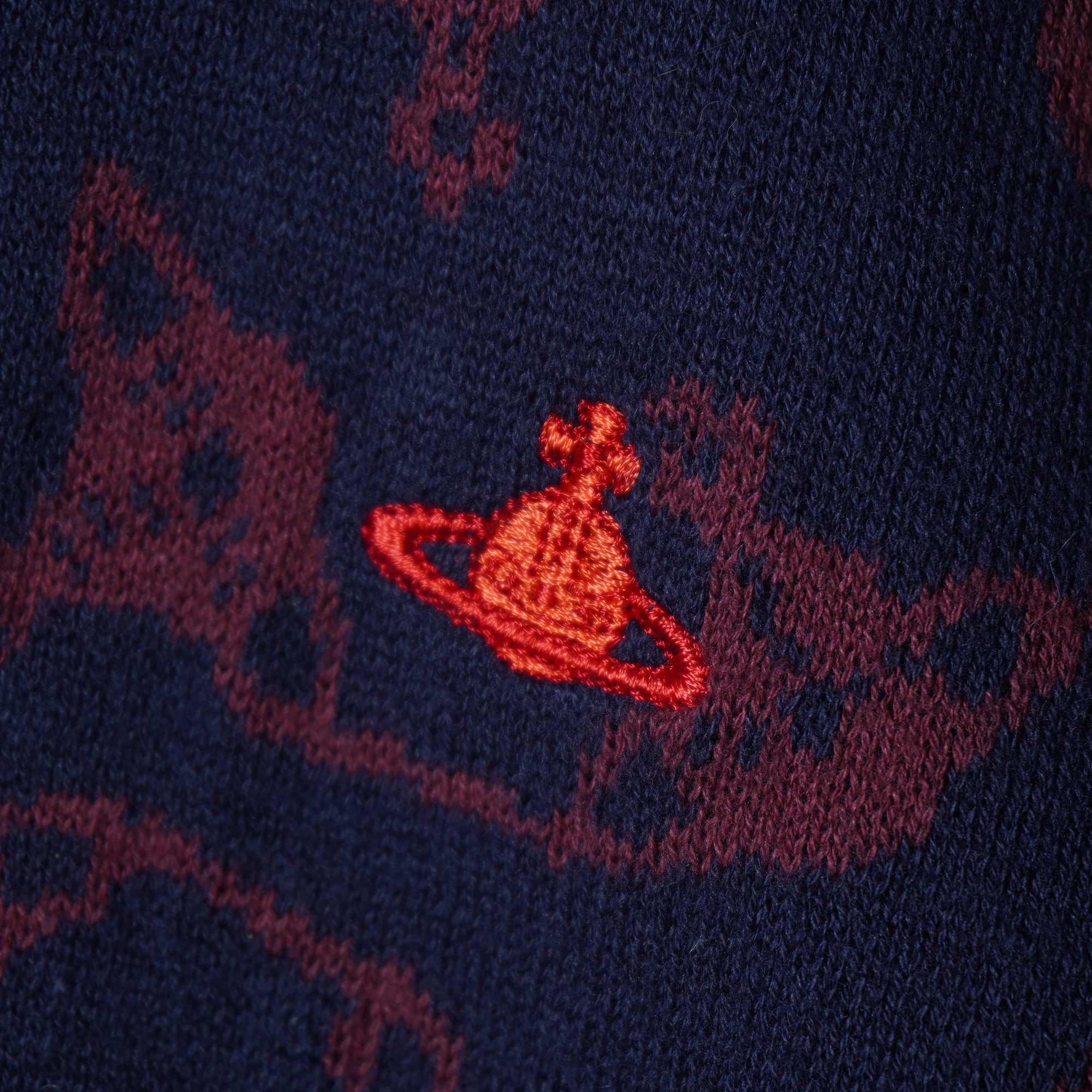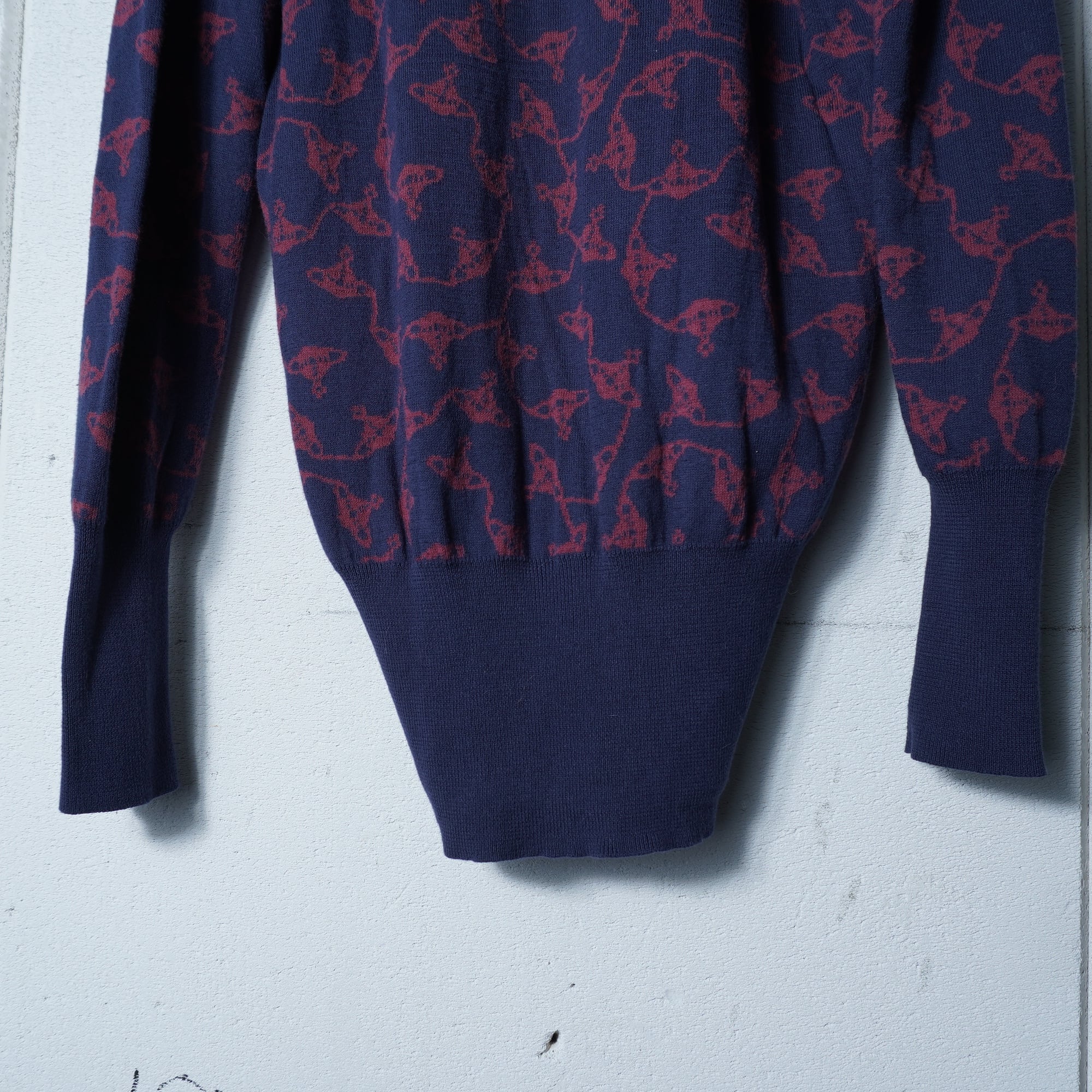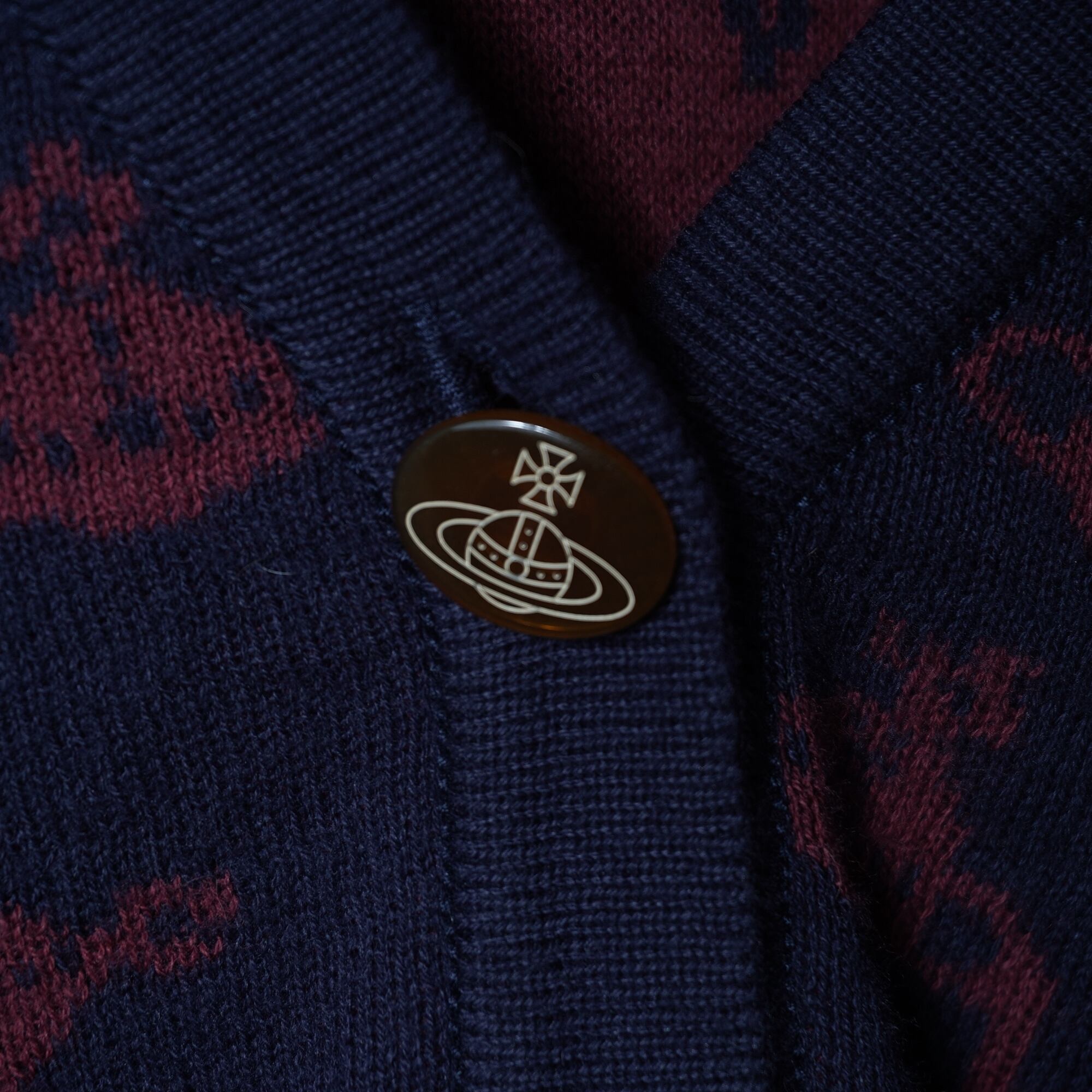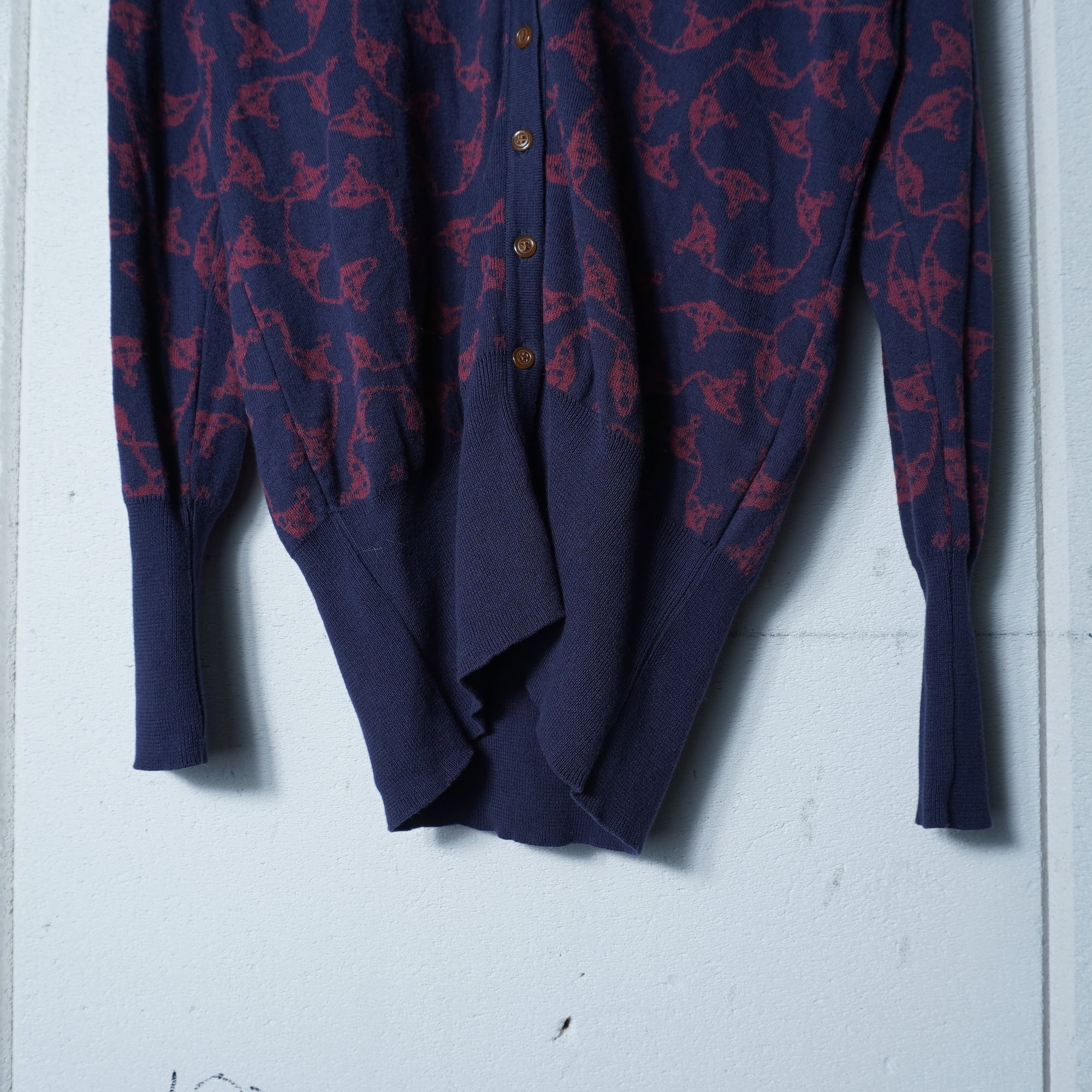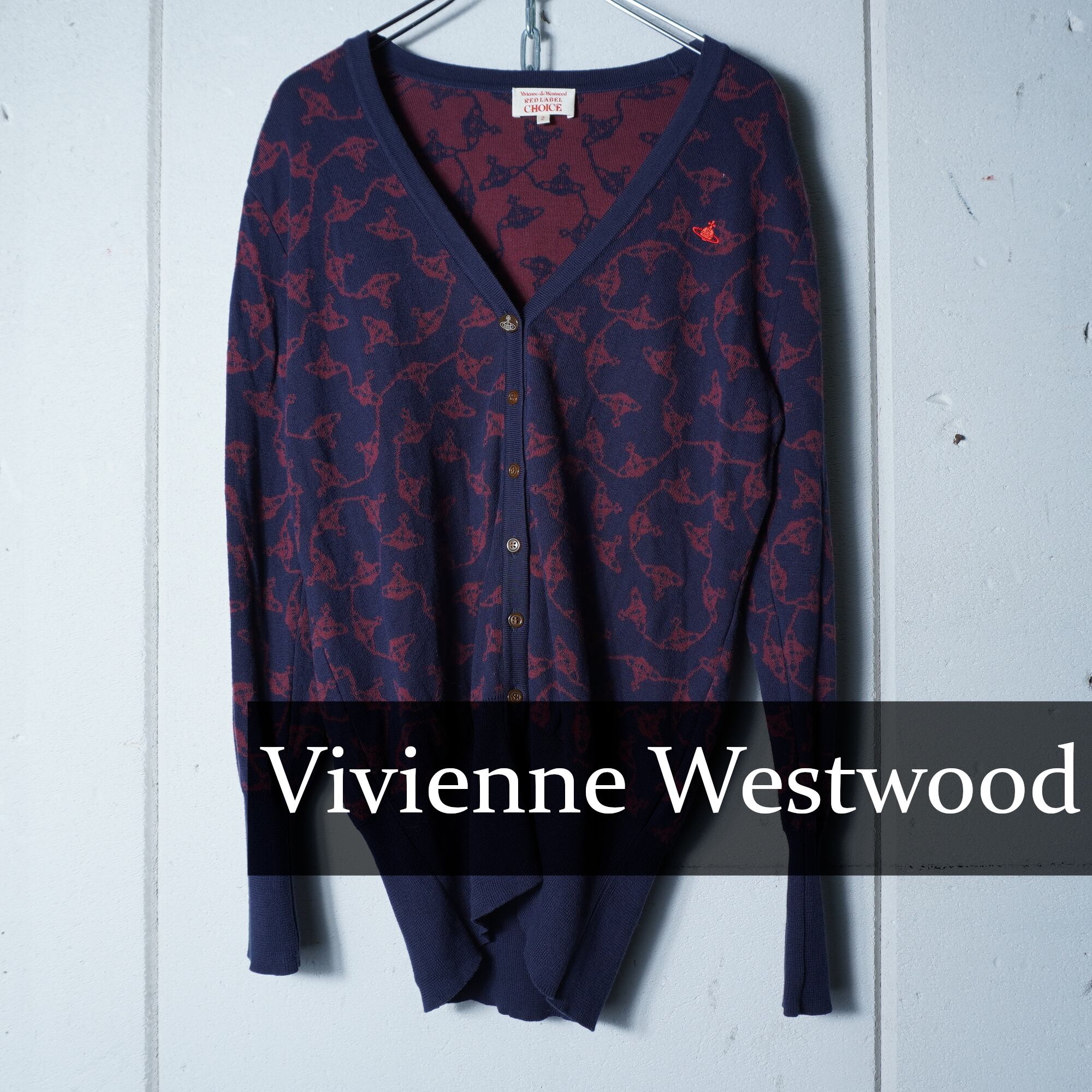 【Vivienne Westwood】ヴィヴィアンウエストウッド オーブロゴ刺繍・オーブ総柄カーディガン navy&wine red