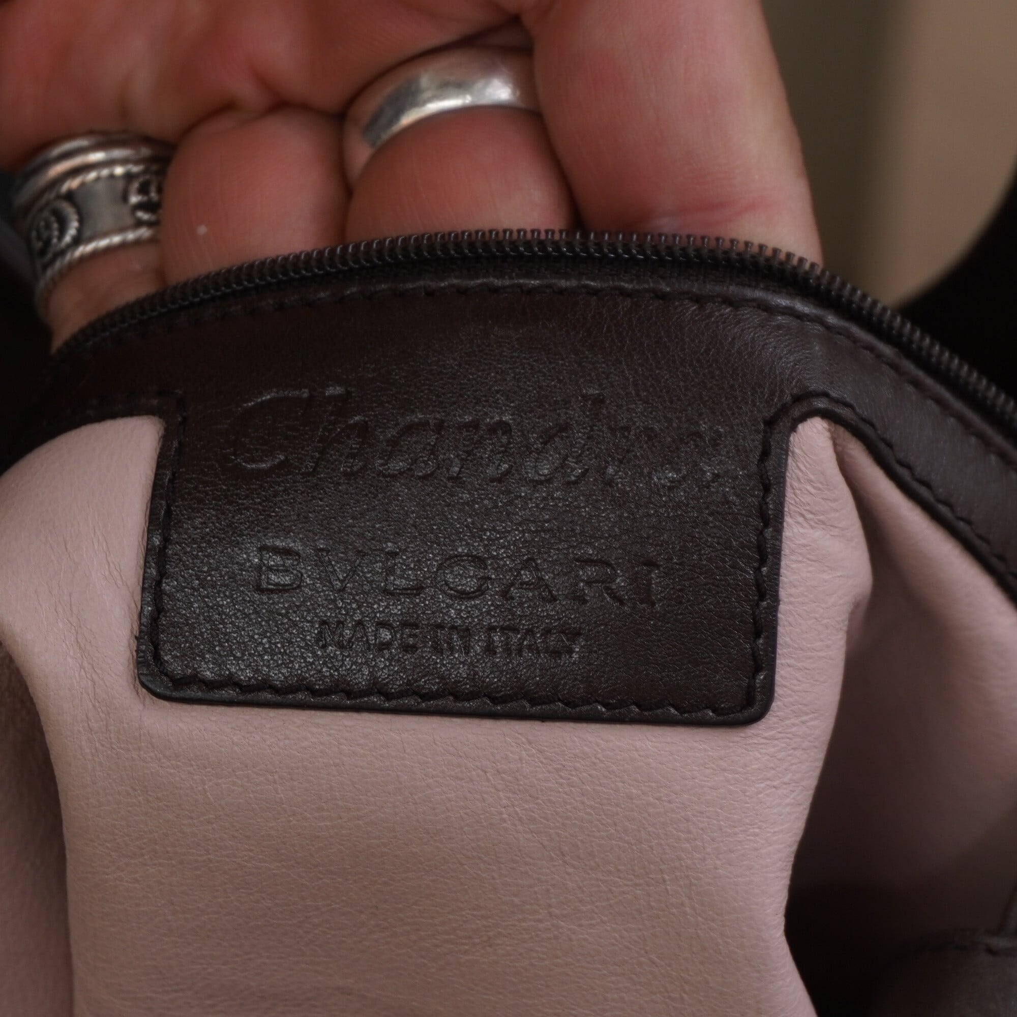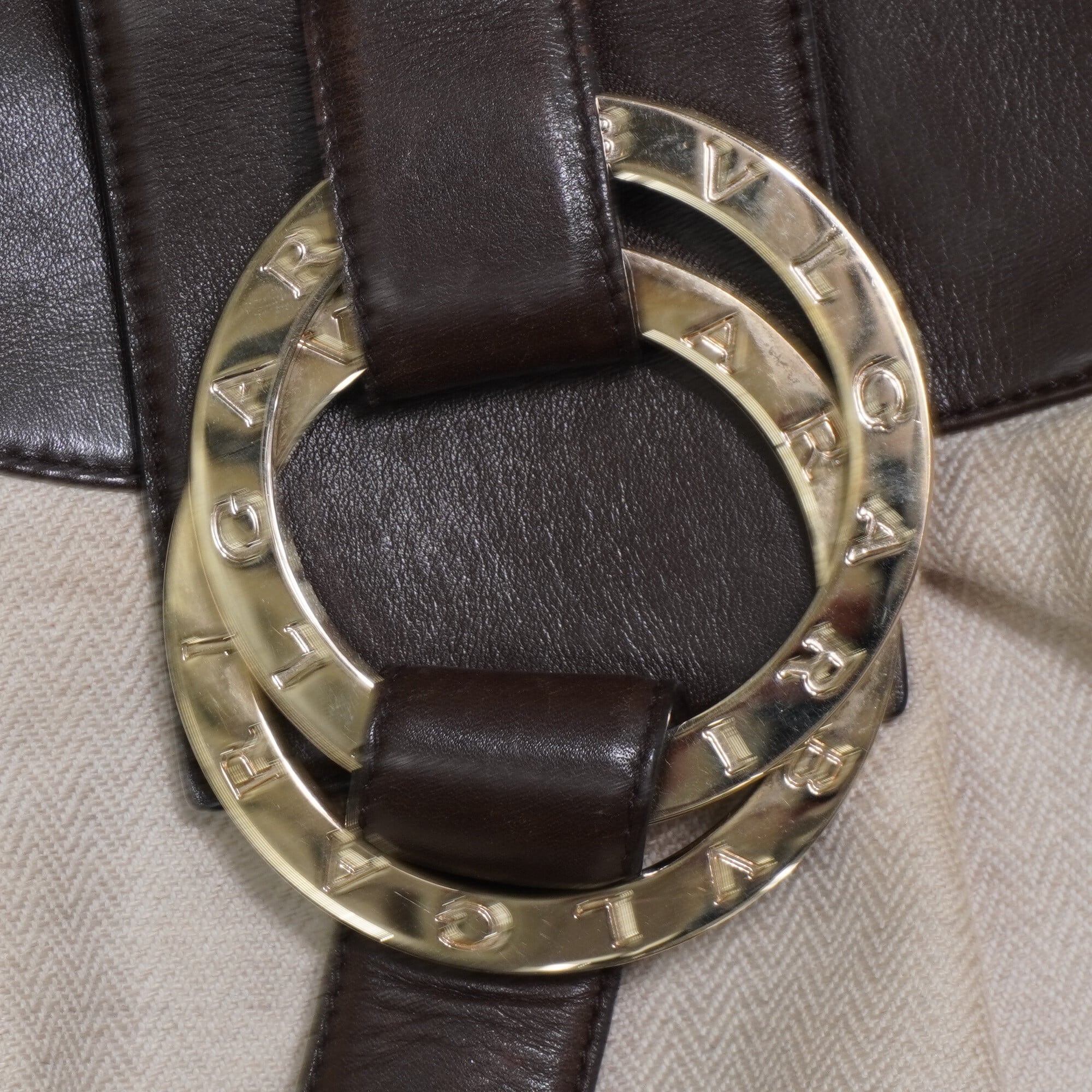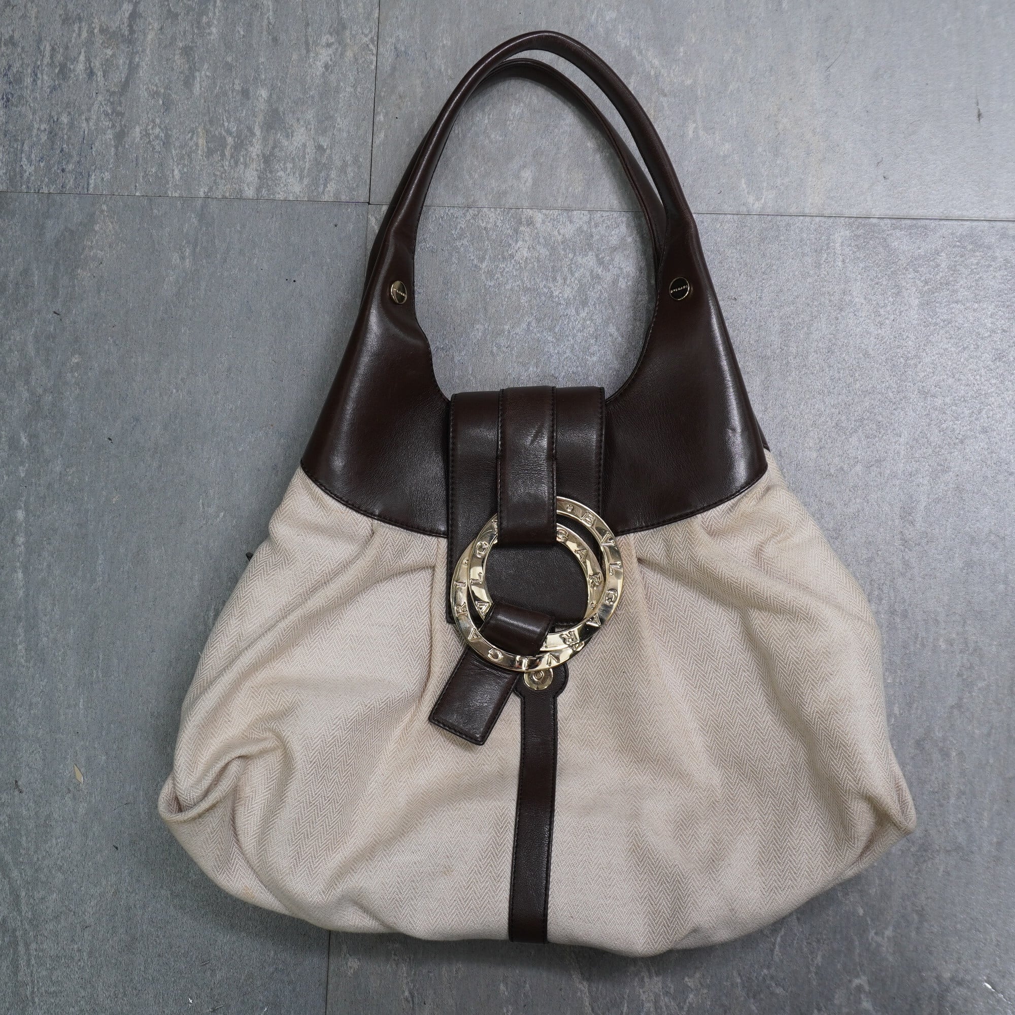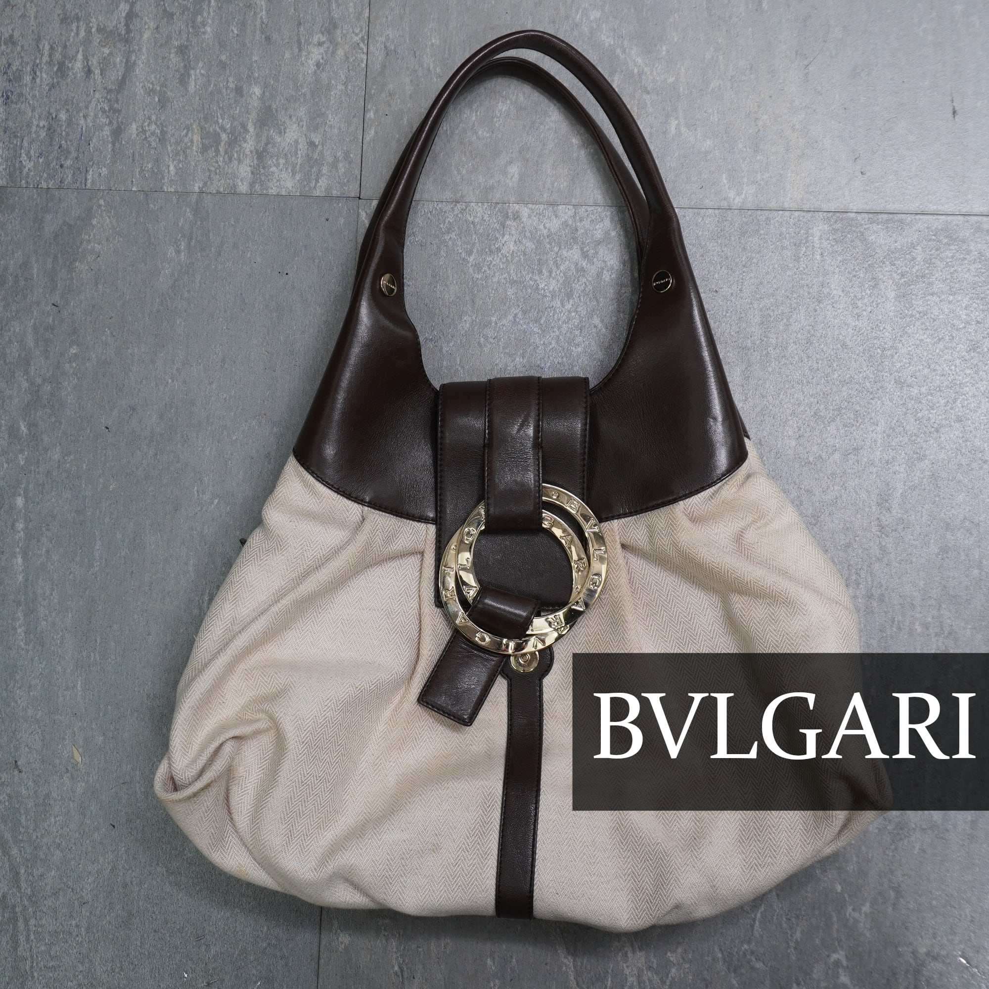 【BVLGARI】ブルガリ チャンドラ ダブルリング キャンパスレザーハンドバッグ