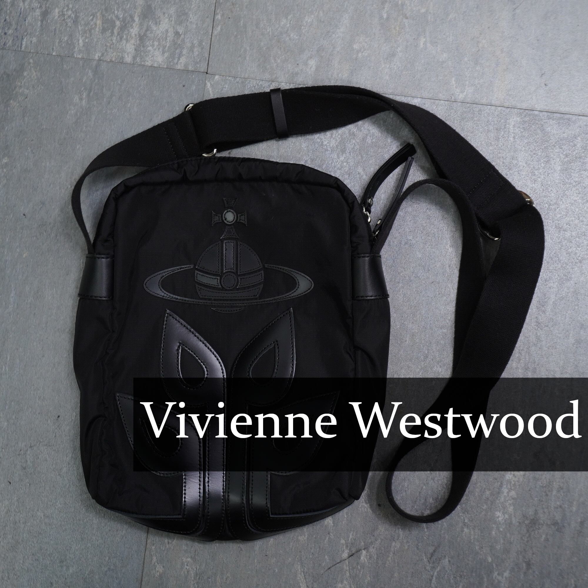 【Vivienne Westwood】ヴィヴィアンウエストウッドTREEORB レザーパッチデザインナイロンショルダーバッグ black
