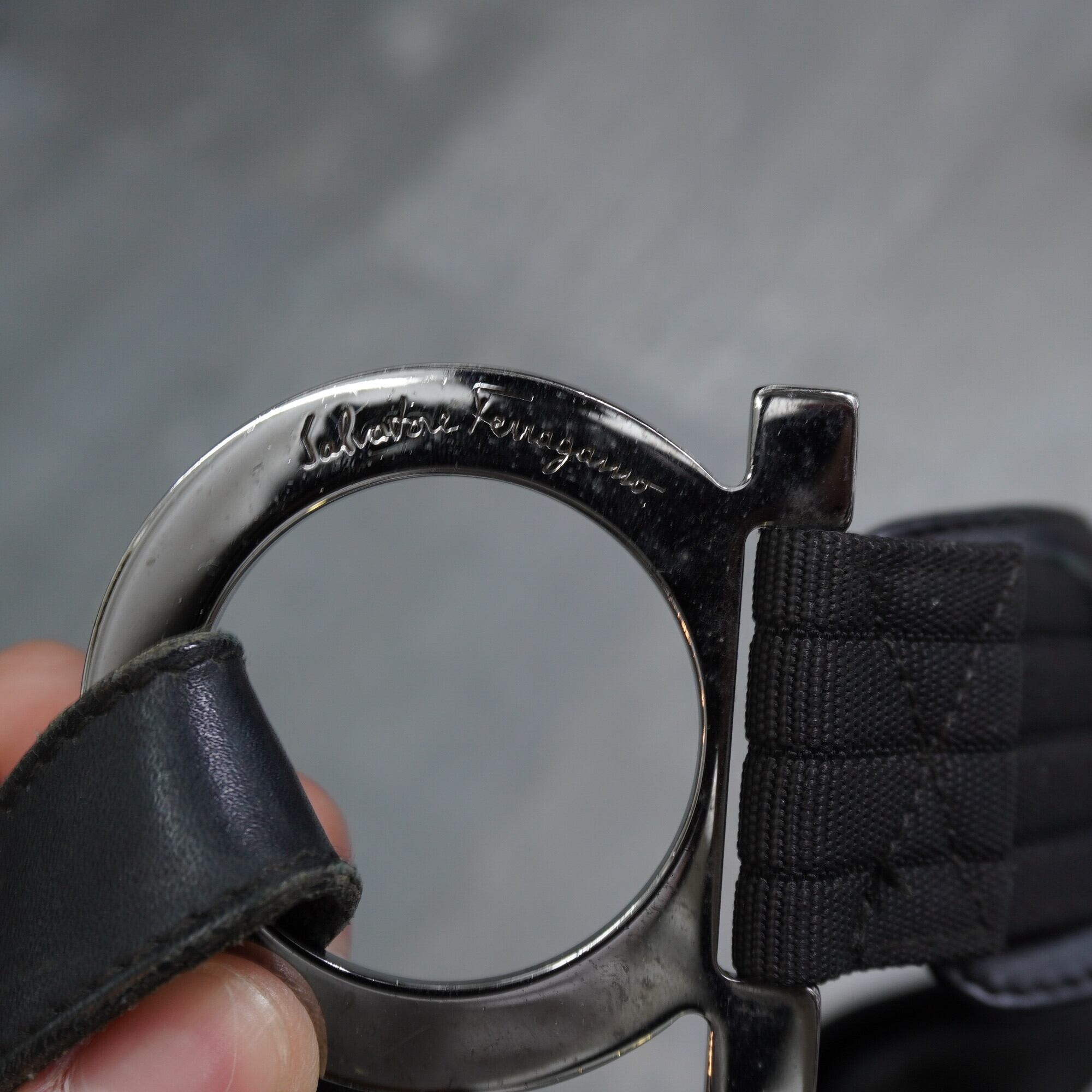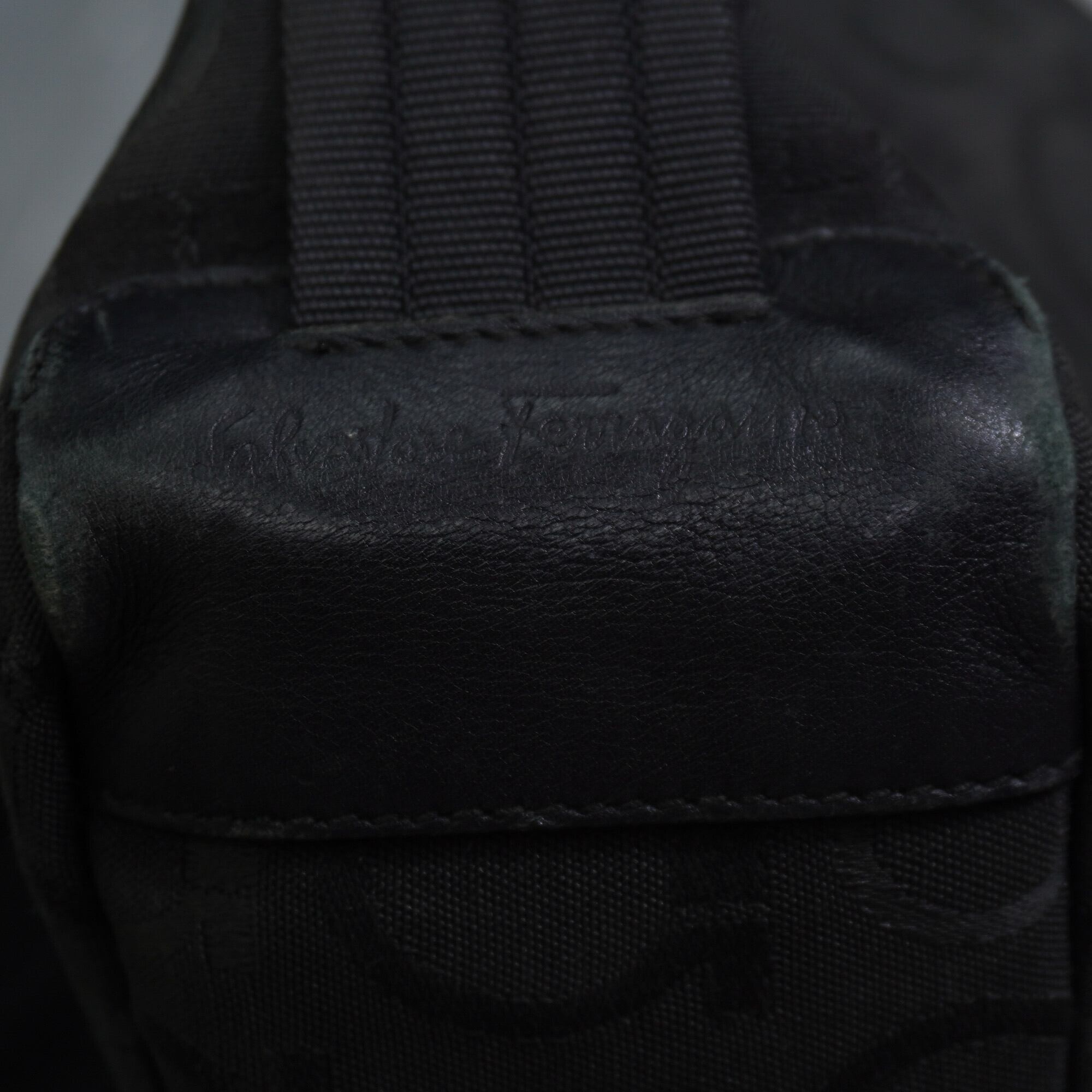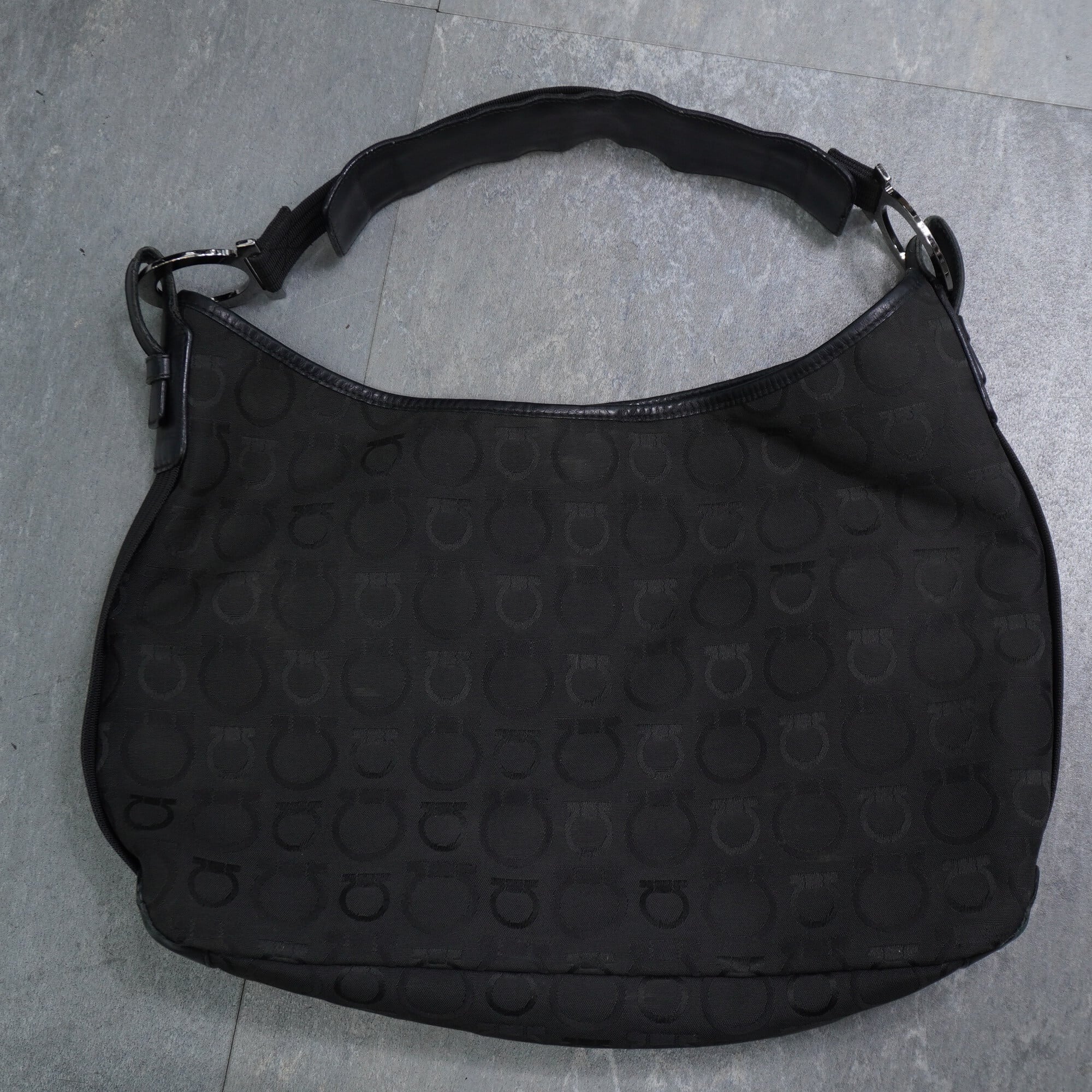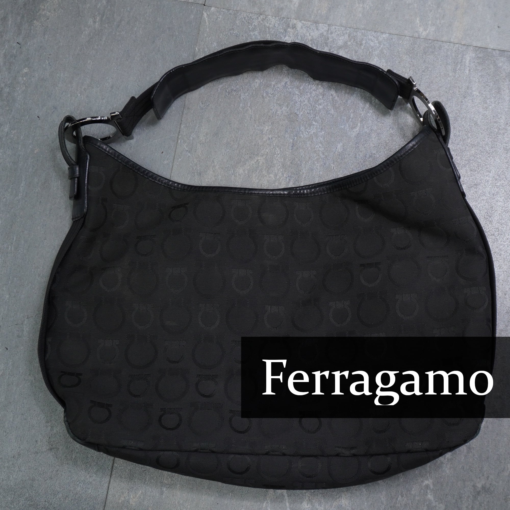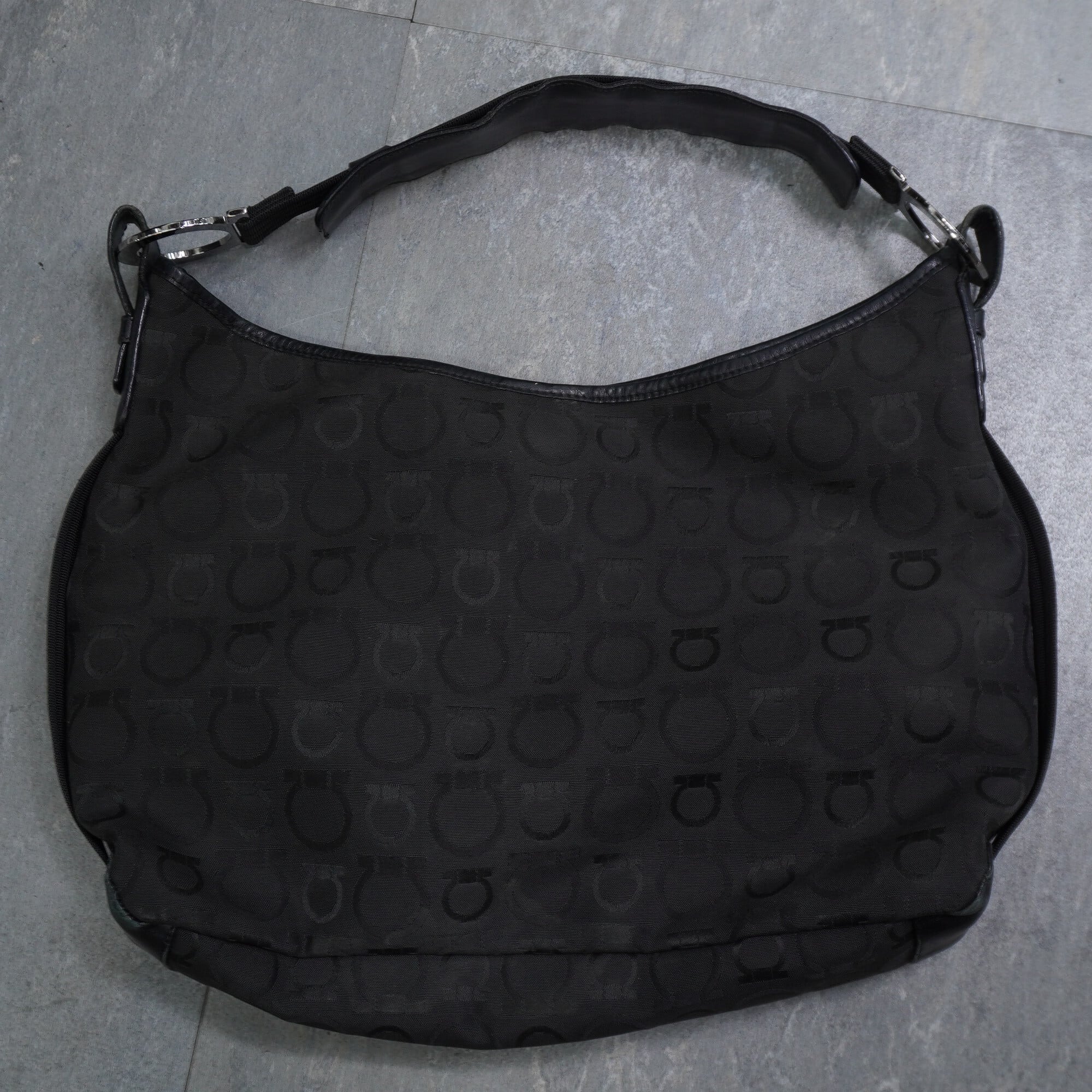 【Salvatore Ferragamo】サルバトーレフェラガモ vintage ガンチーニ総柄コットン レザー切替ワンショルダーバッグ black
