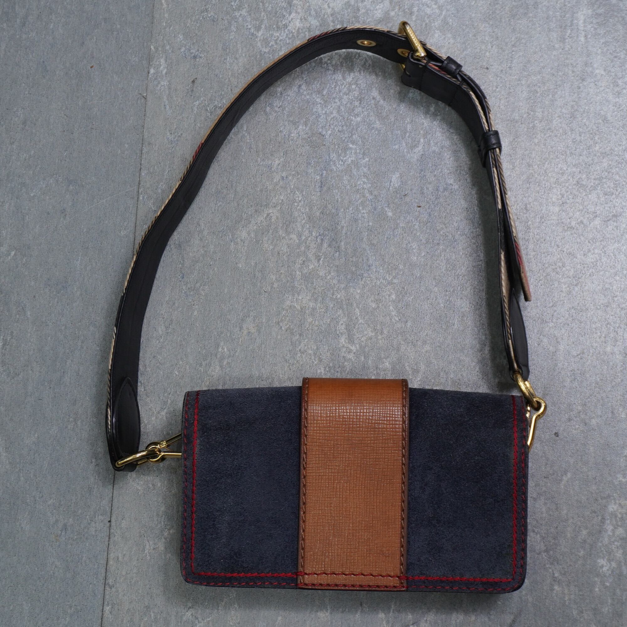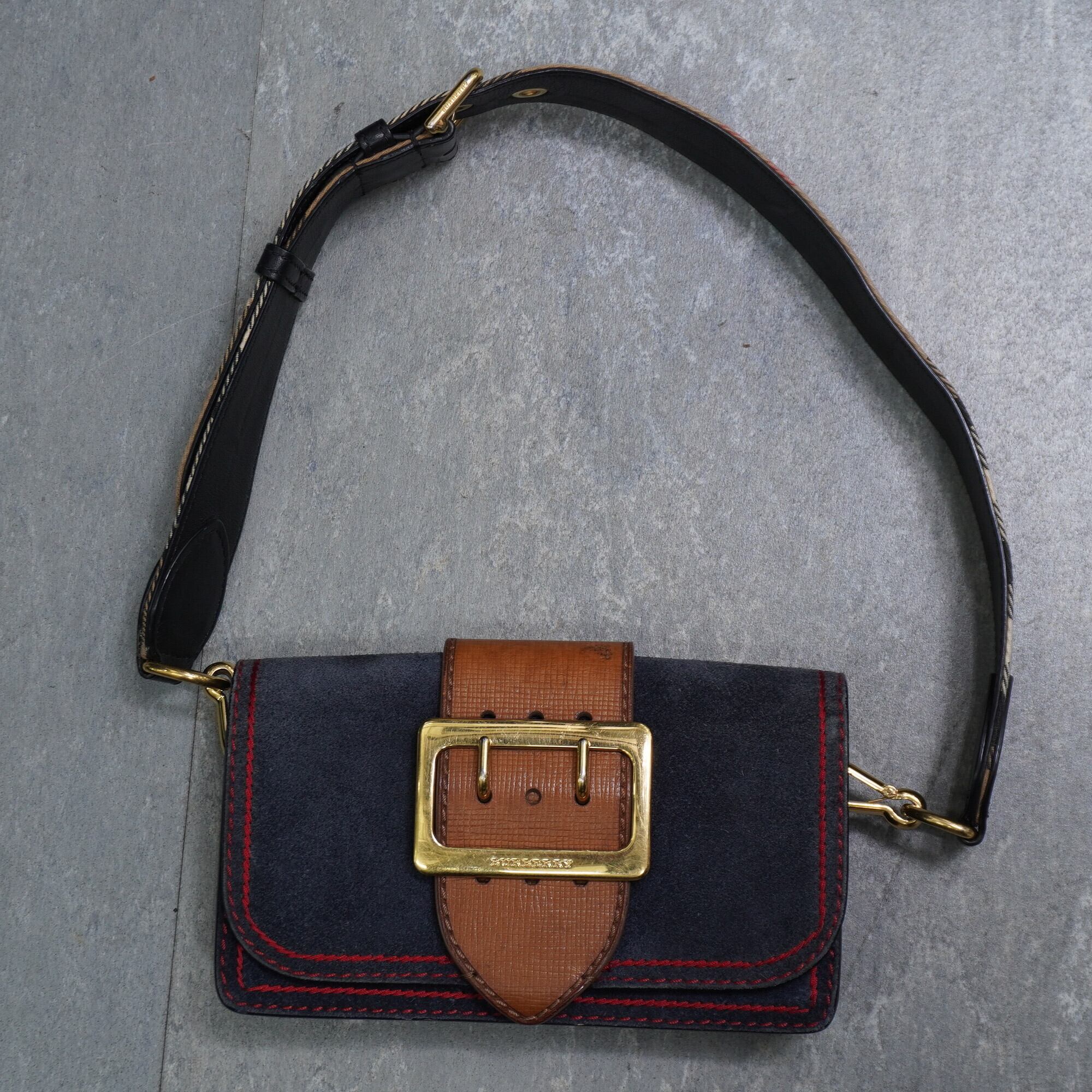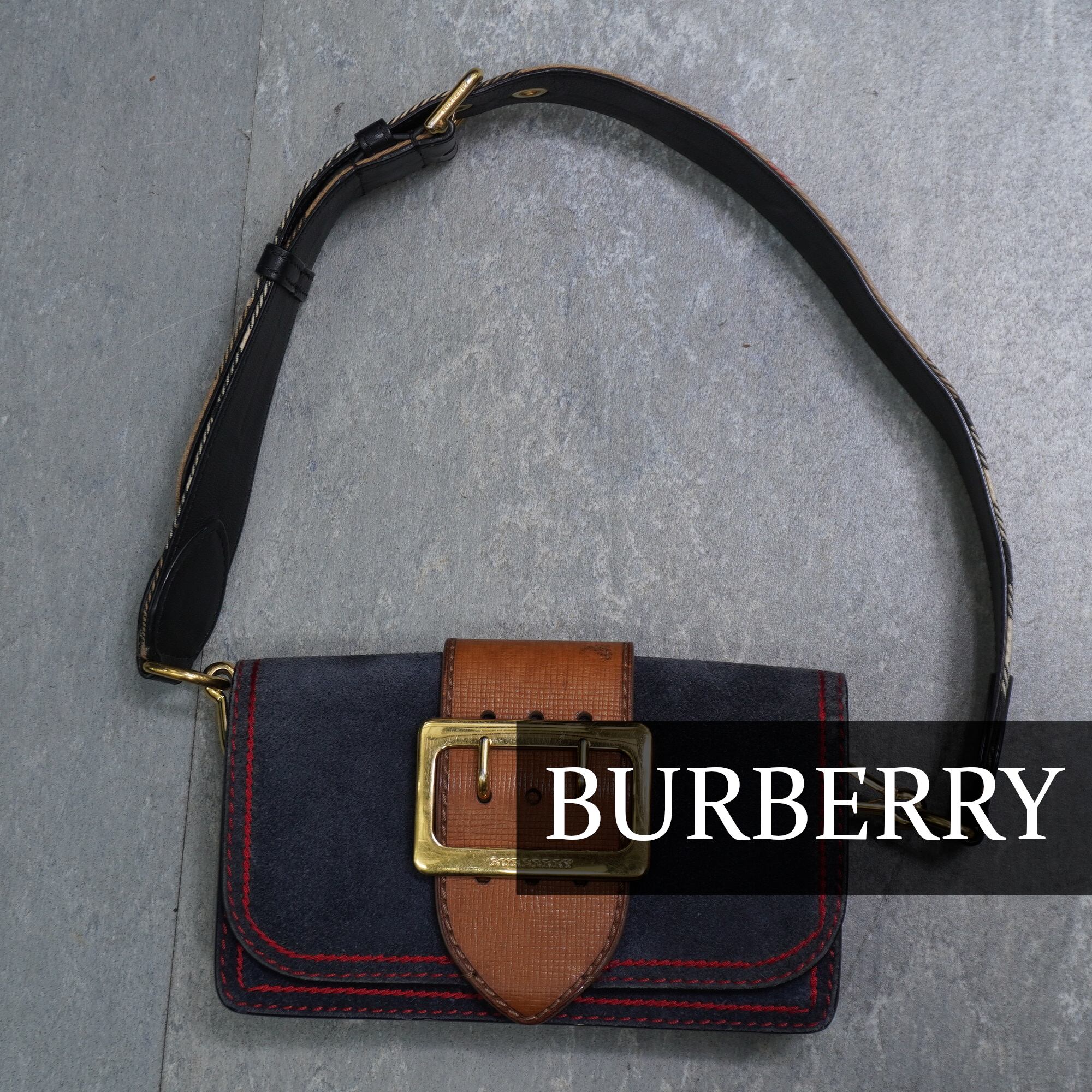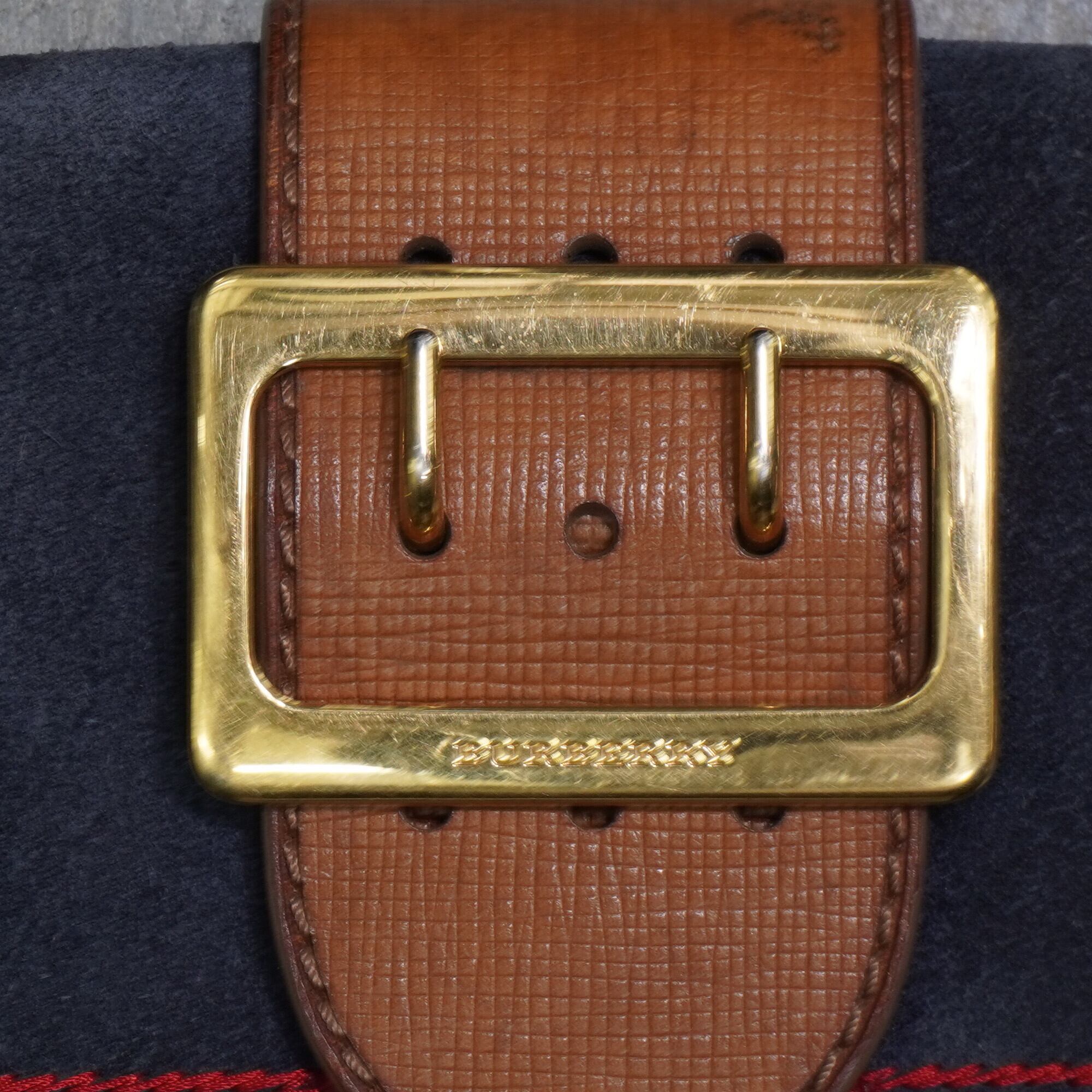 【BURBERRY】バーバリーLONDON ブルースウェード マディソンバックル クロスボディ レザーワンショルダーバッグ