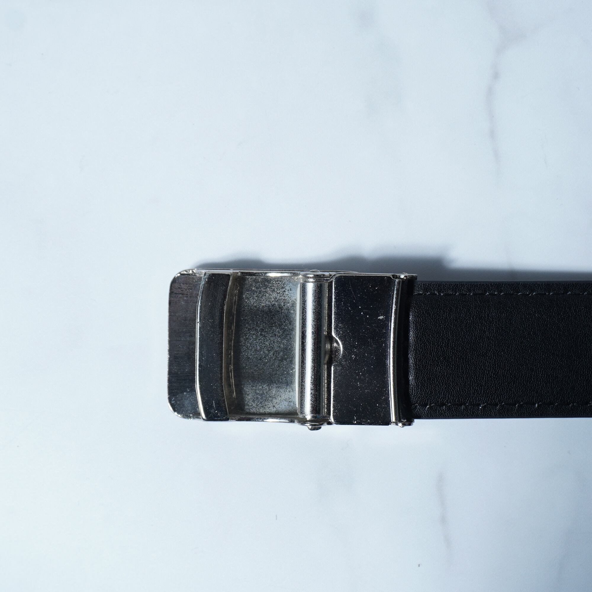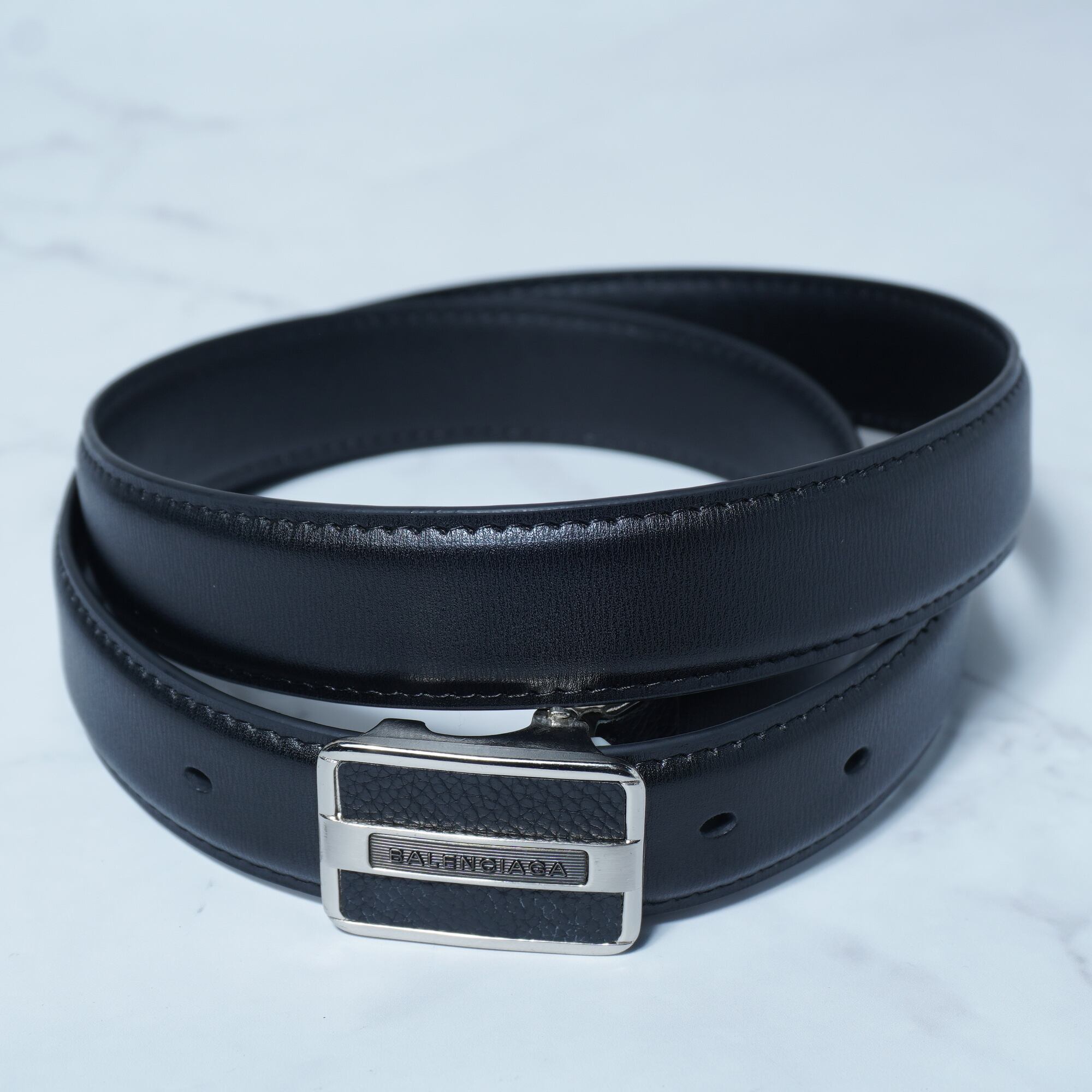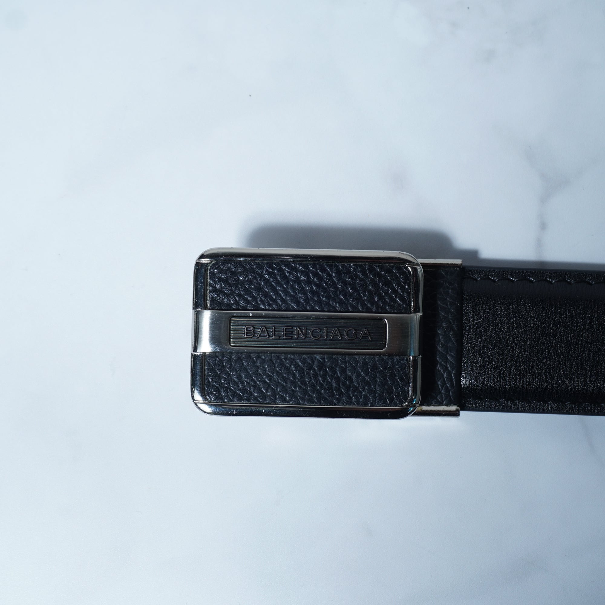 【BALENCIAGA】バレンシアガ ロゴ入 シルバーバックルレザーベルト black