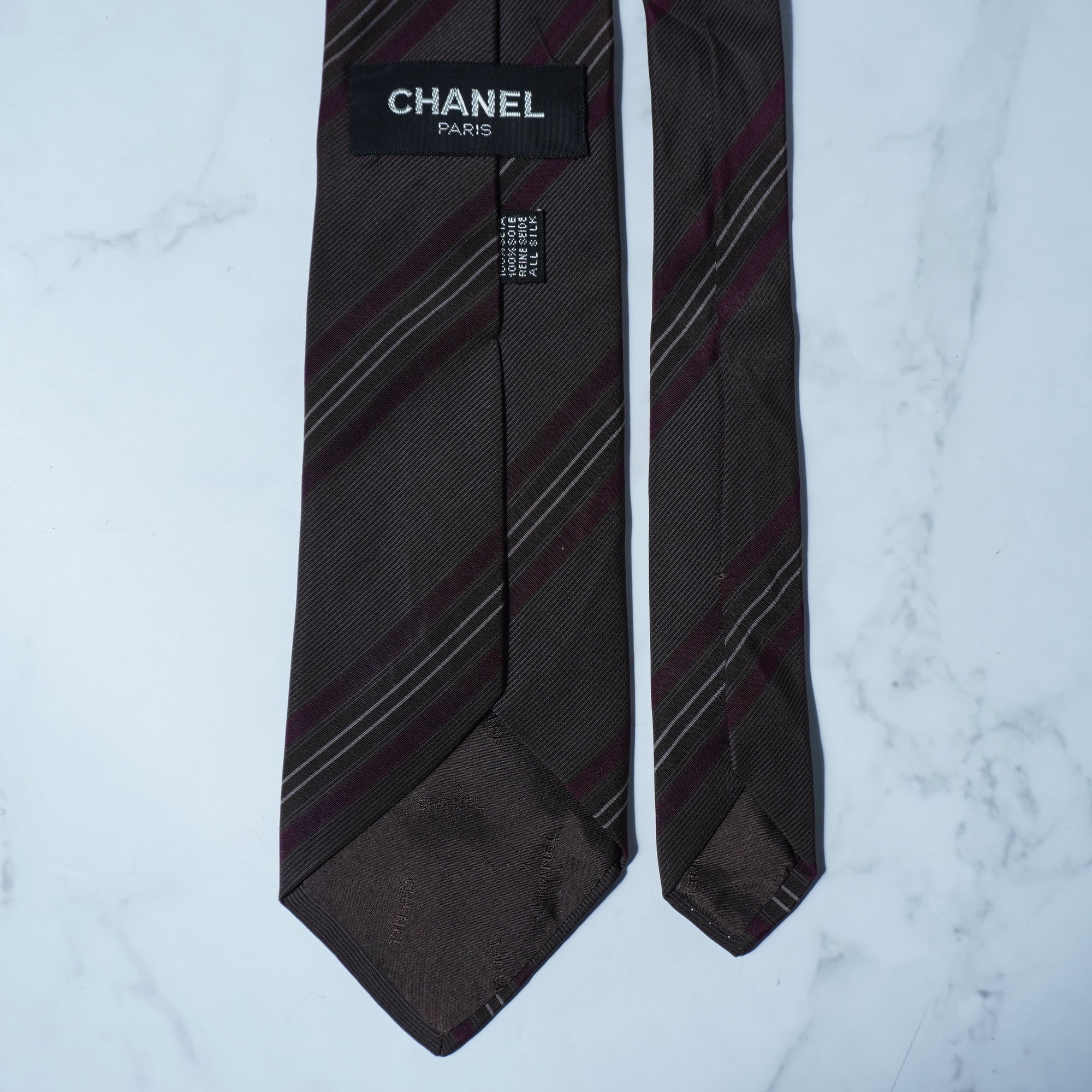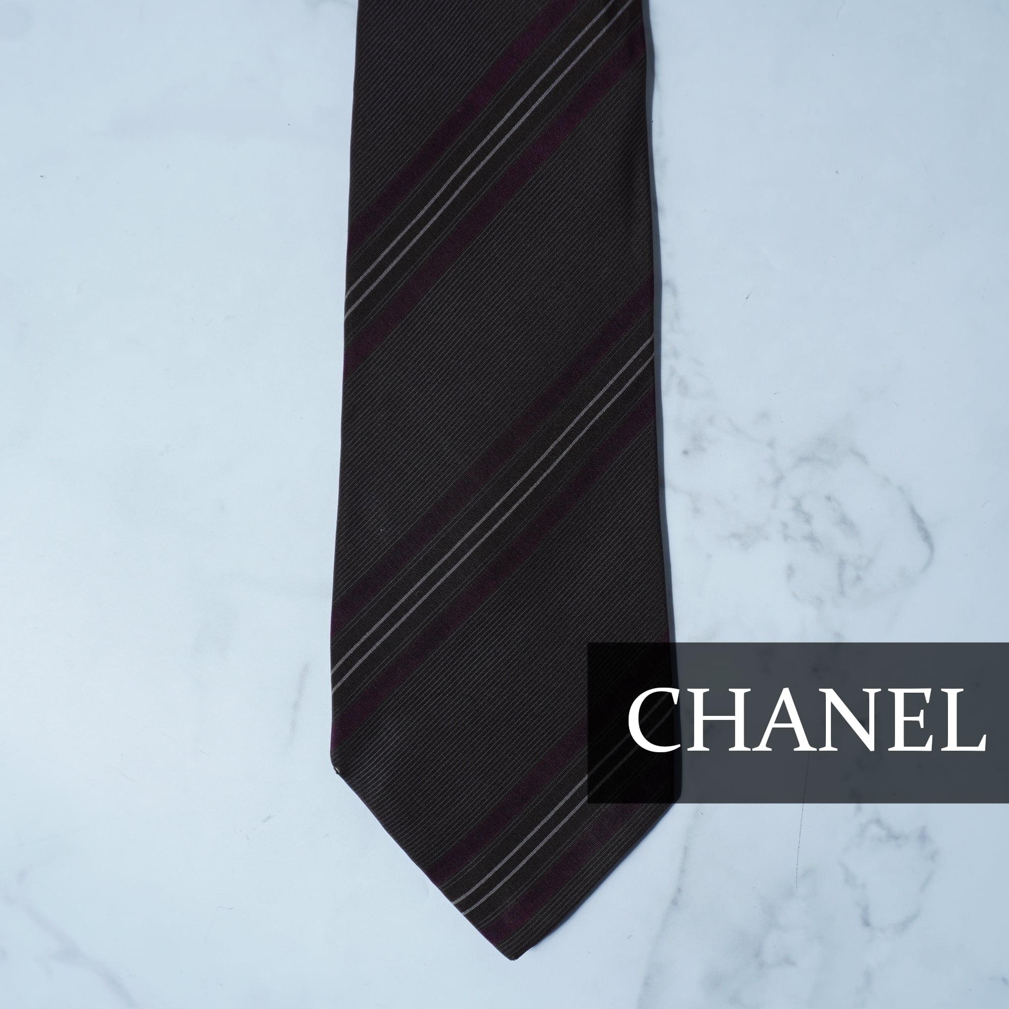 【CHANEL】シャネル SILK100%レジメンタルネクタイ brown