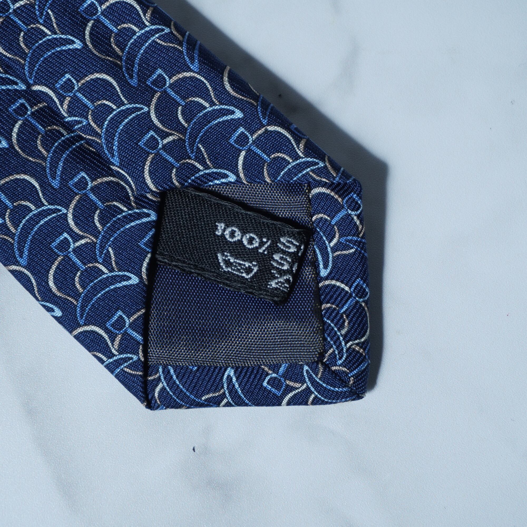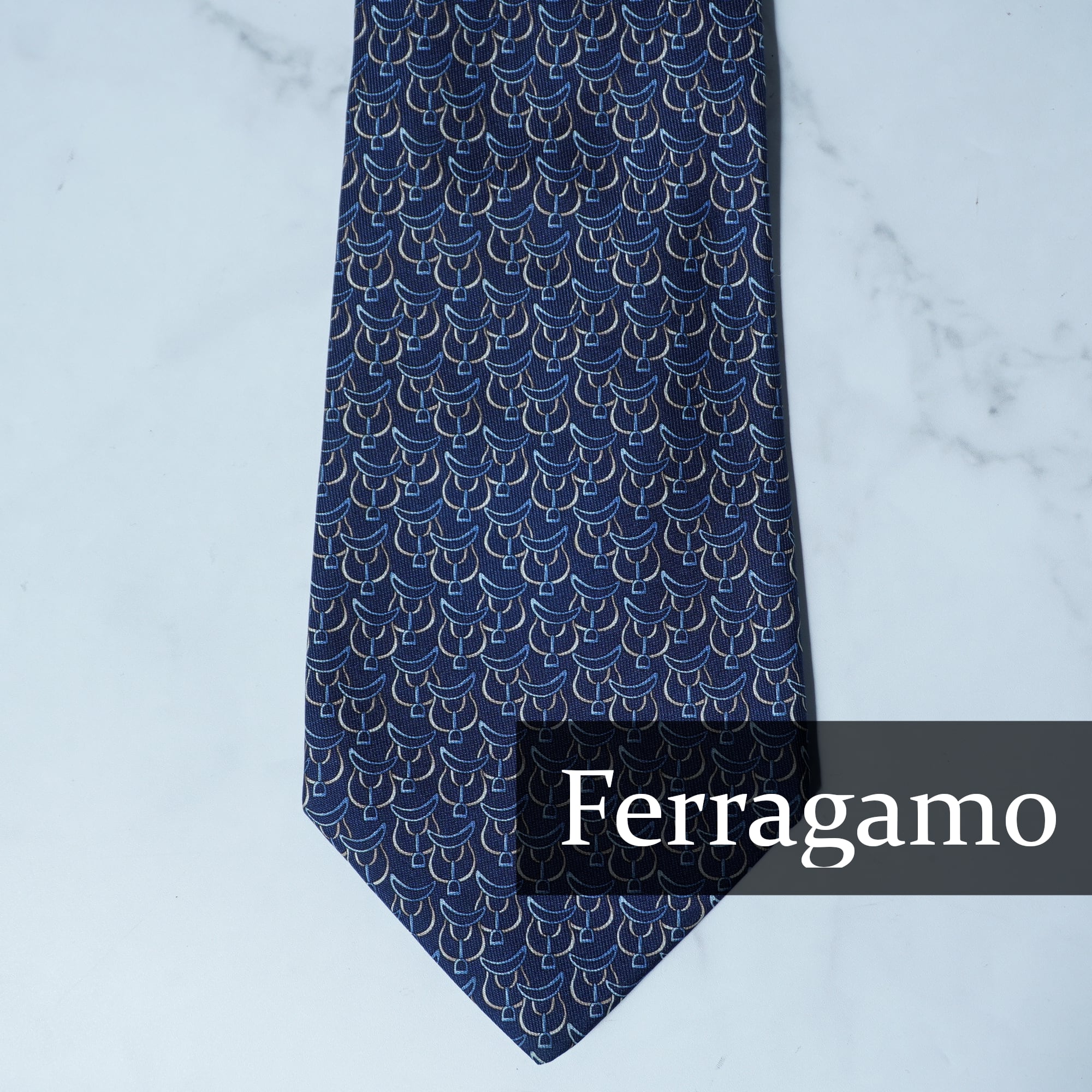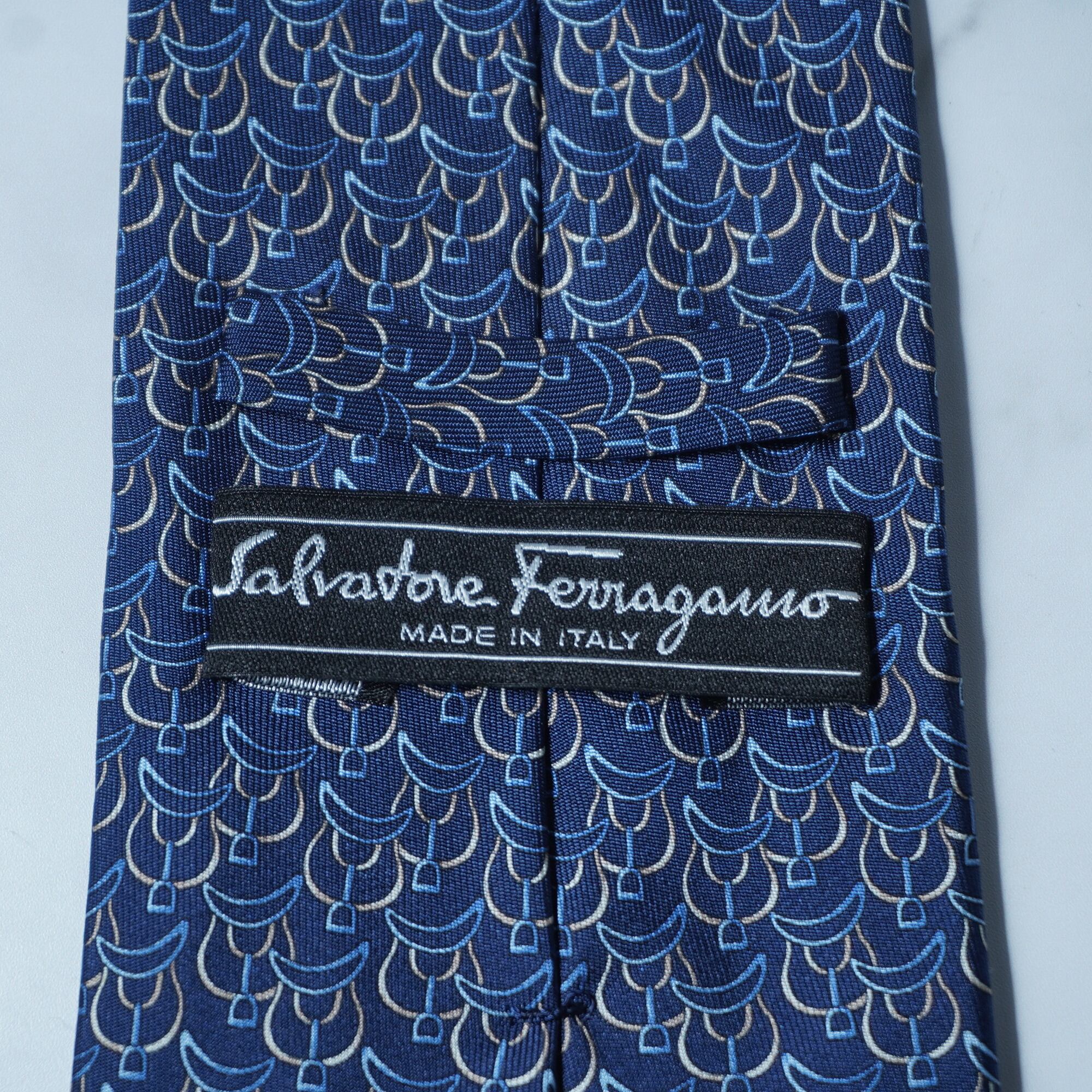 【Salvatore Ferragamo】サルヴァドールフェラガモ "ロゴ入り"SILK100%総柄ネクタイ navy