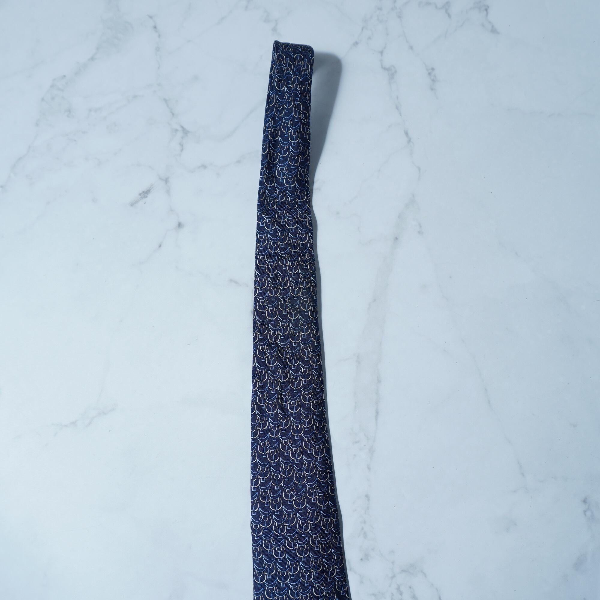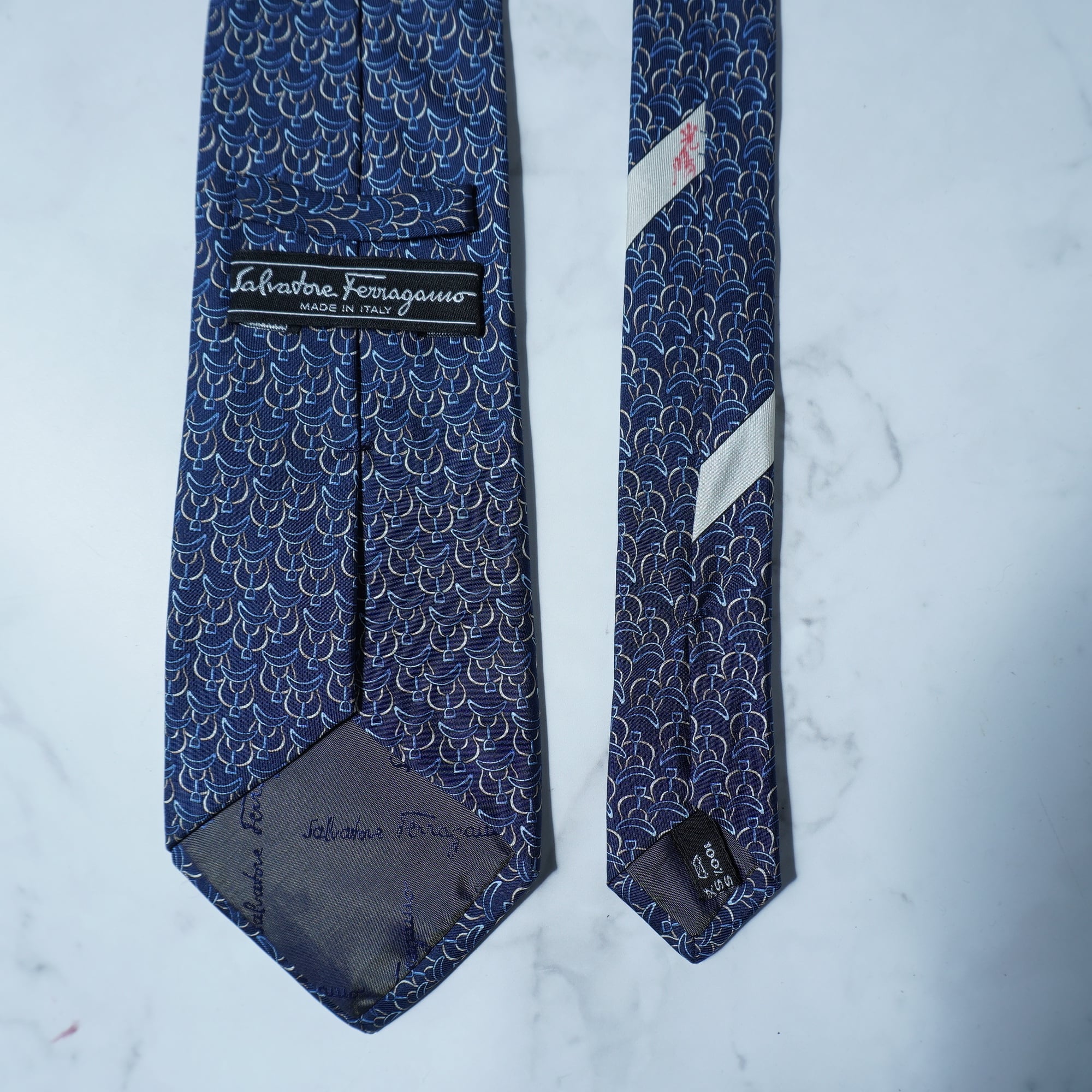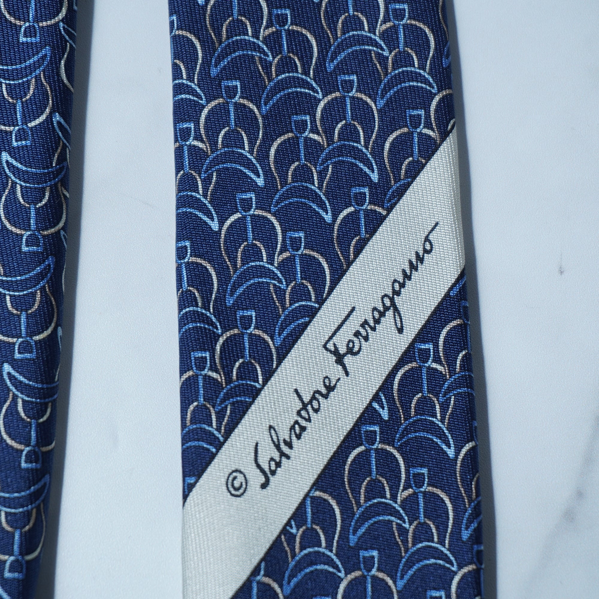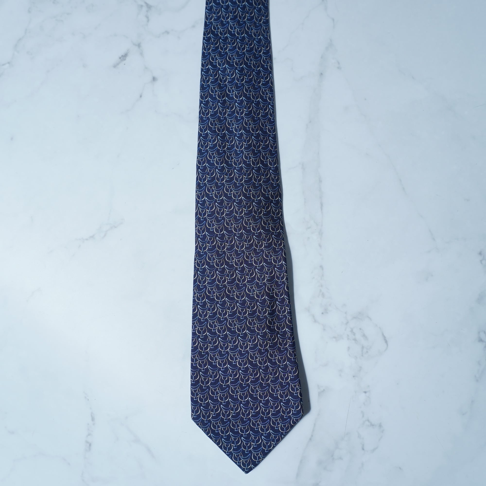 【Salvatore Ferragamo】サルヴァドールフェラガモ "ロゴ入り"SILK100%総柄ネクタイ navy