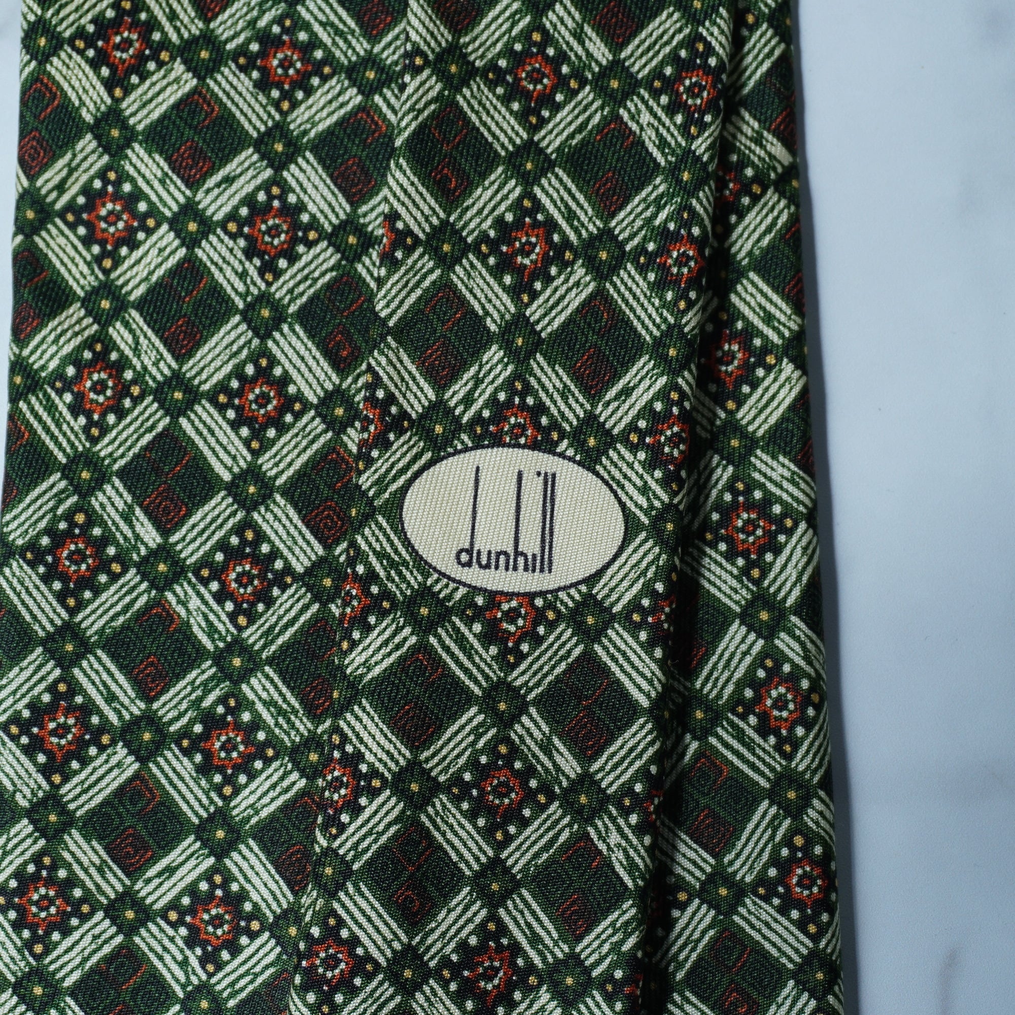 【dunhill】ダンヒル SILK100%総柄 ネクタイ green&orange