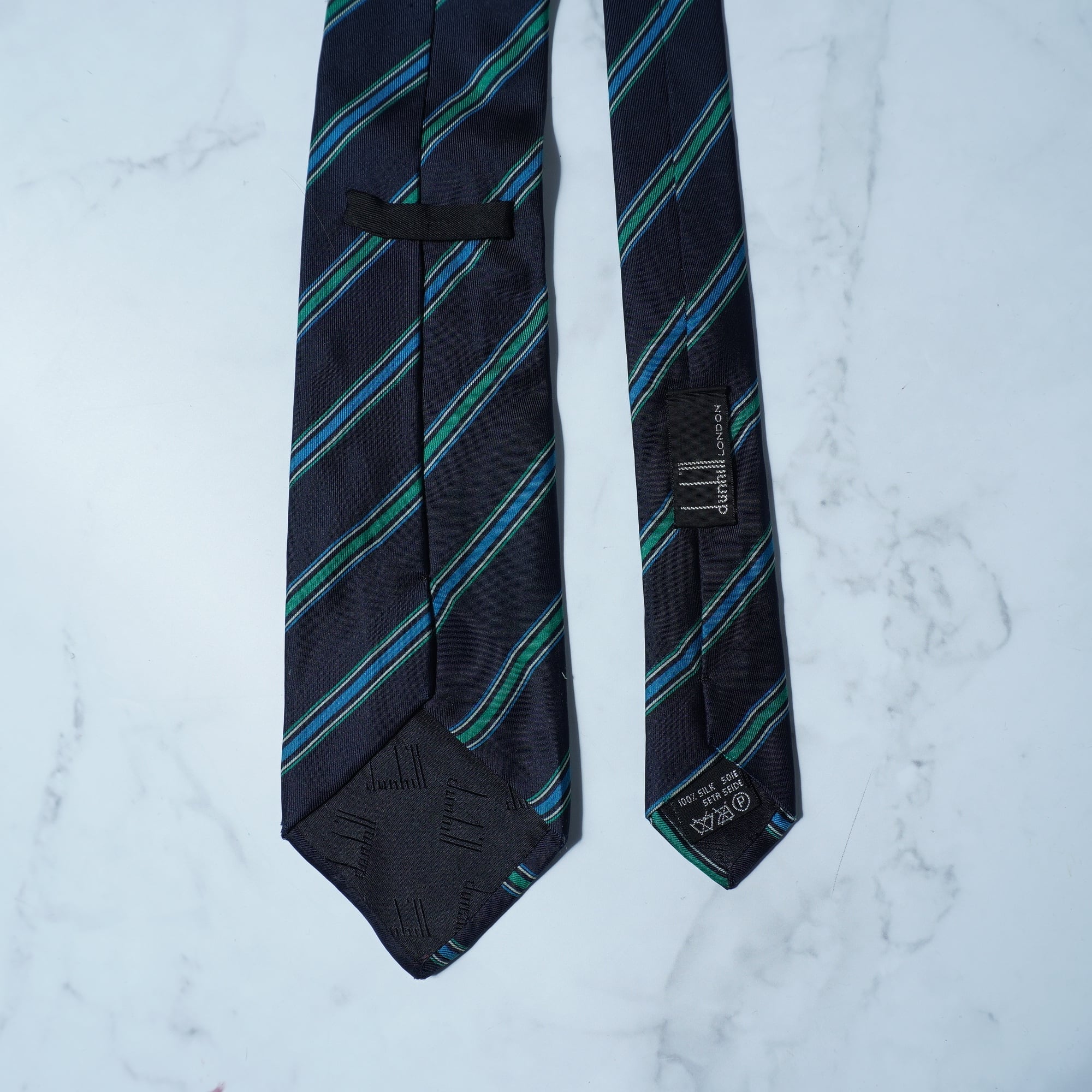 【dunhill】ダンヒル SILK100%レジメンタルネクタイ navy&green&blue