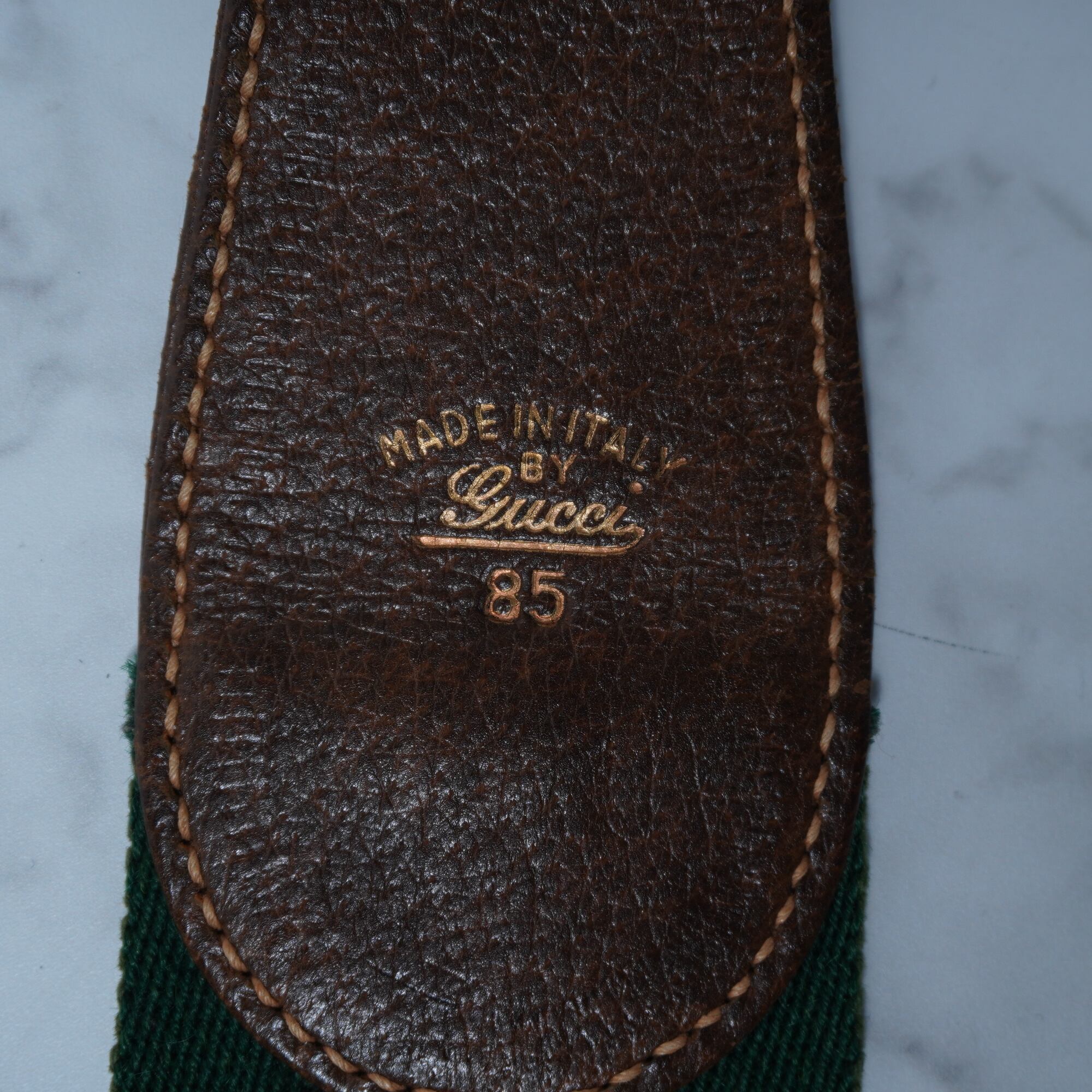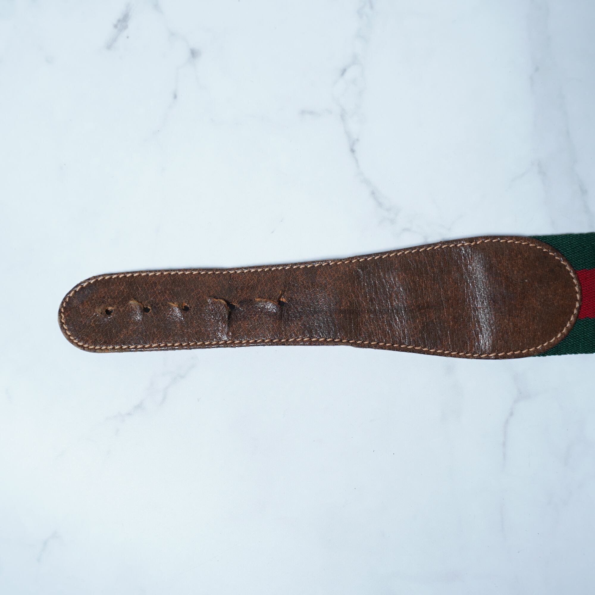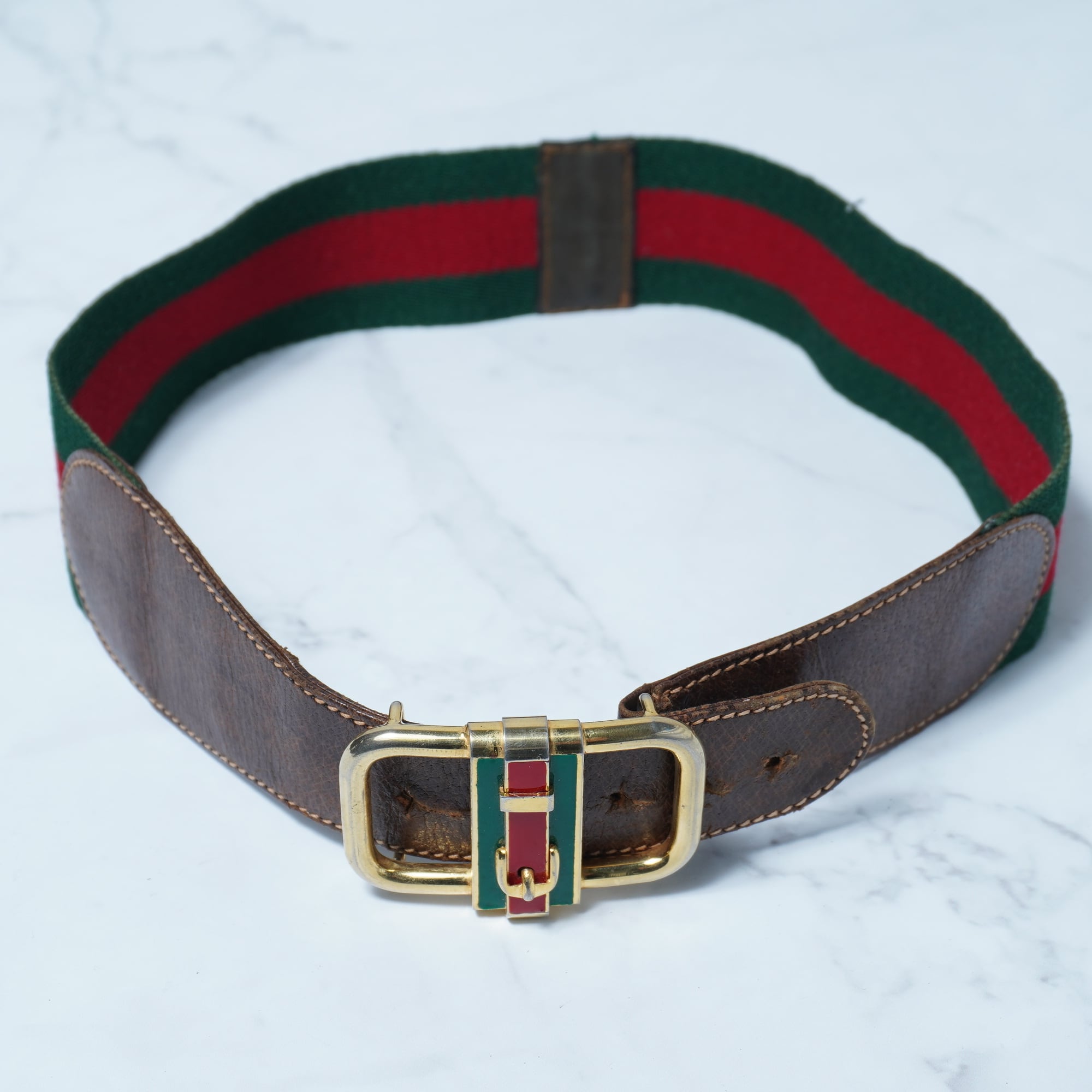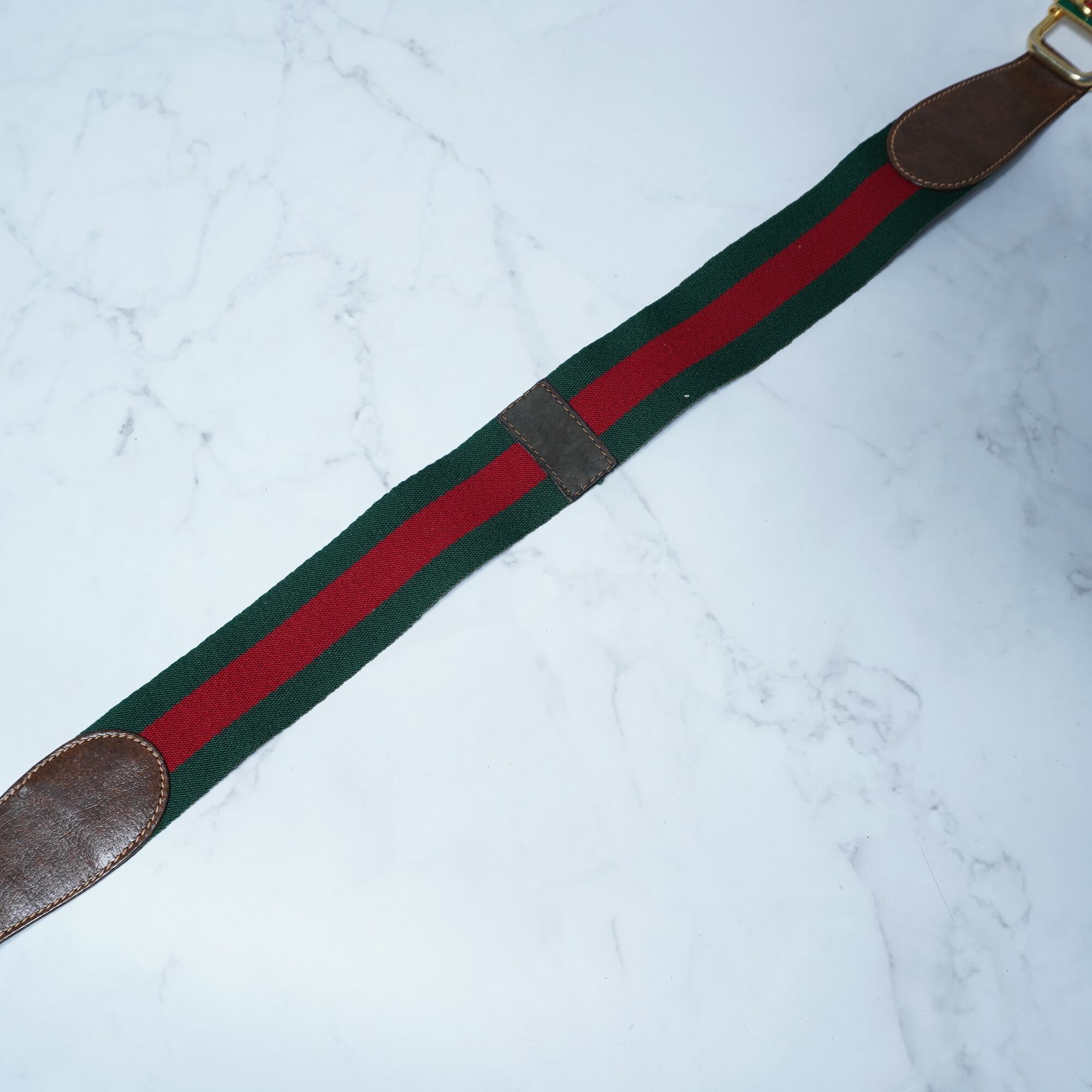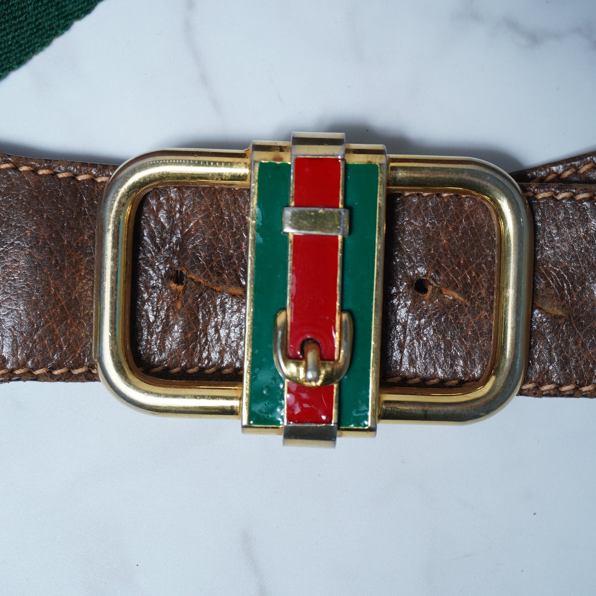 【GUCCI】グッチ シェリーライン・ゴールドバックルレザーベルト brown&green&red