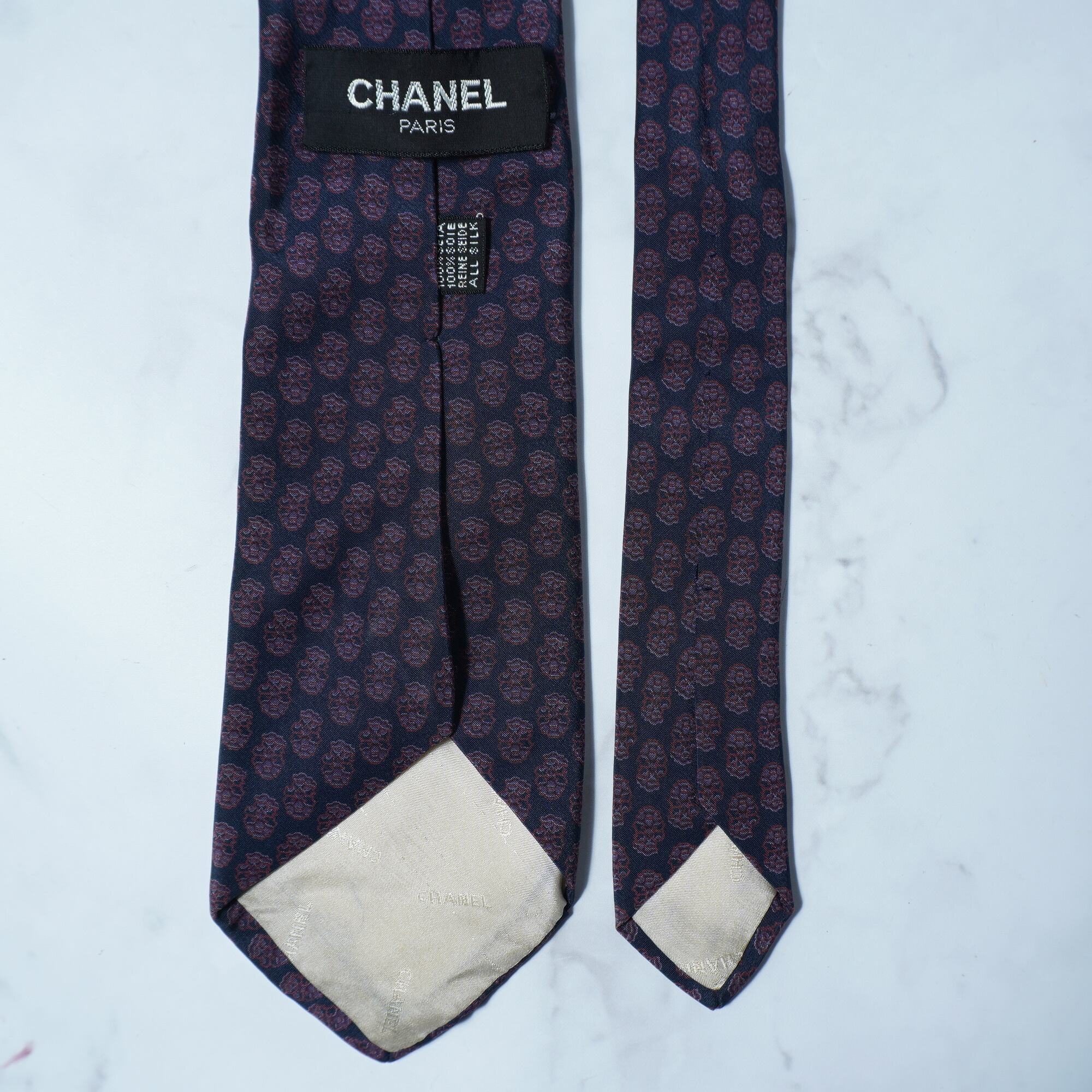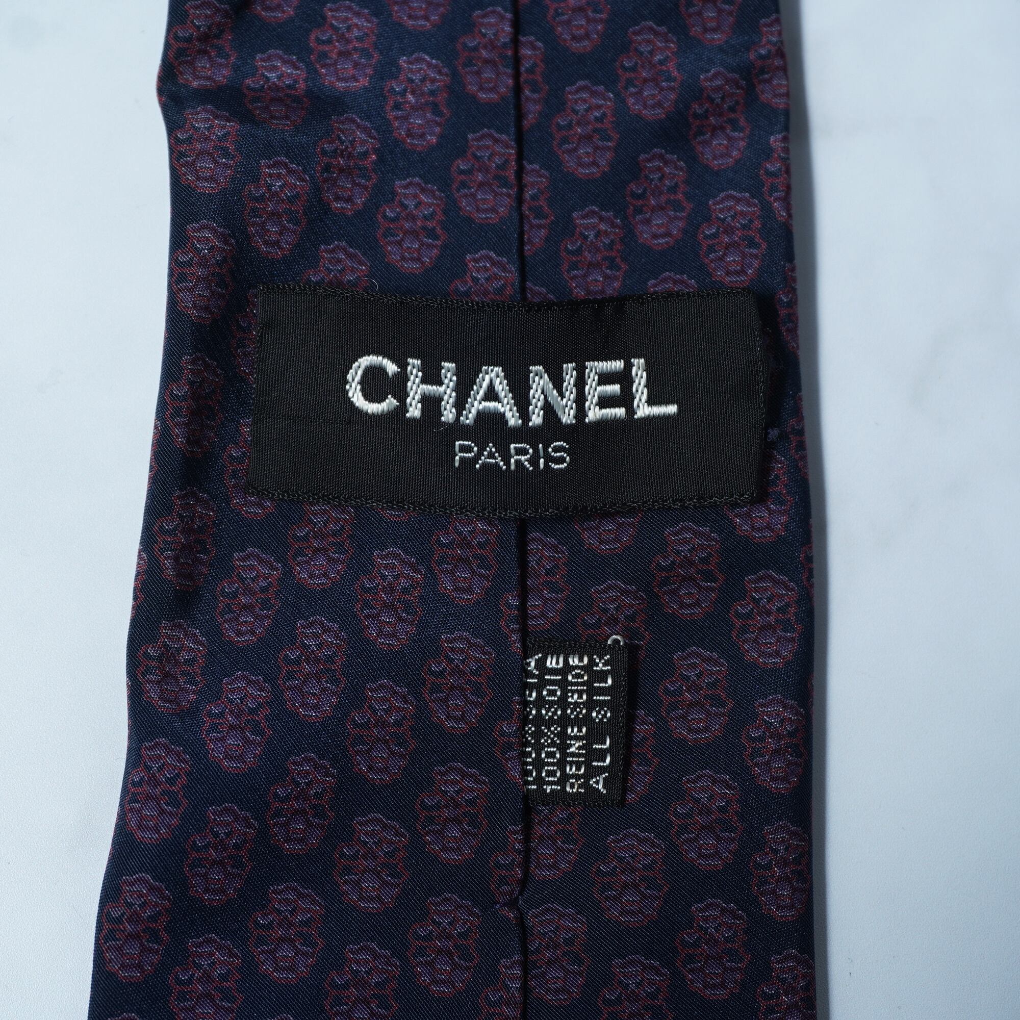 【CHANEL】シャネル SILK100%総柄ネクタイ black&red