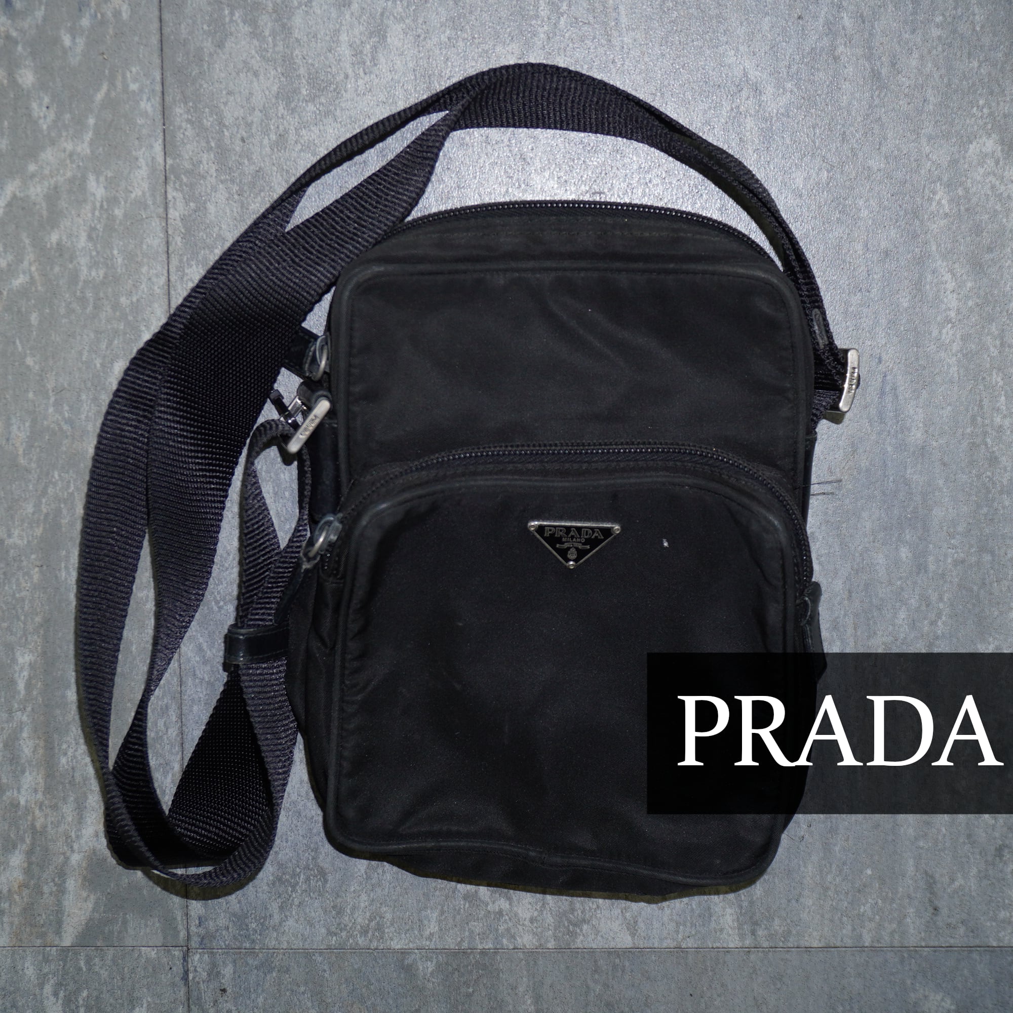 【PRADA】プラダ vintage 三角プレートショルダーバッグ black