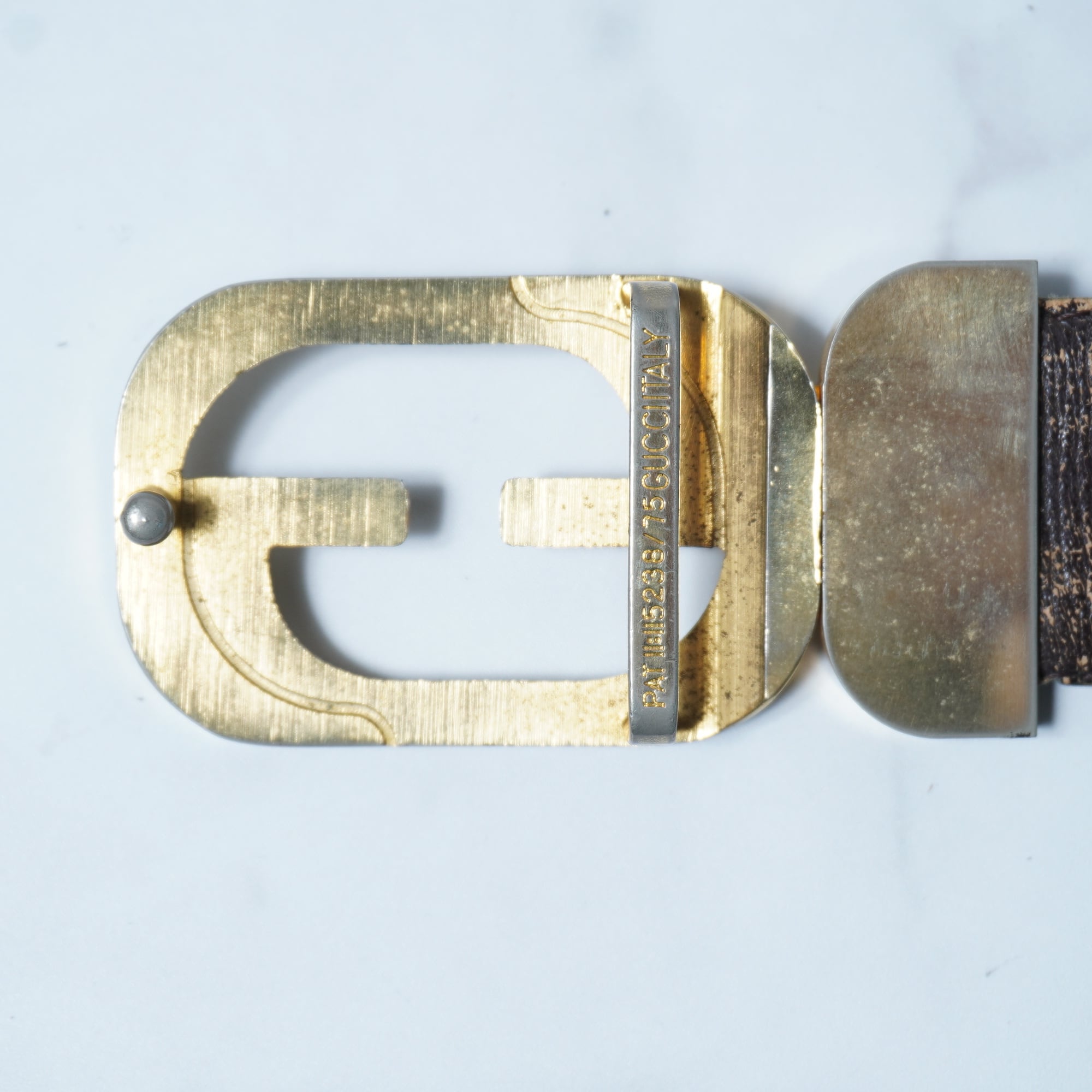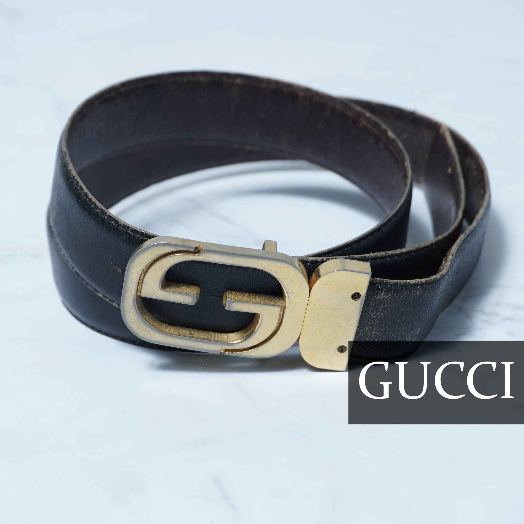 【GUCCI】インターロッキンG ゴールドバックルレザーベルトblack