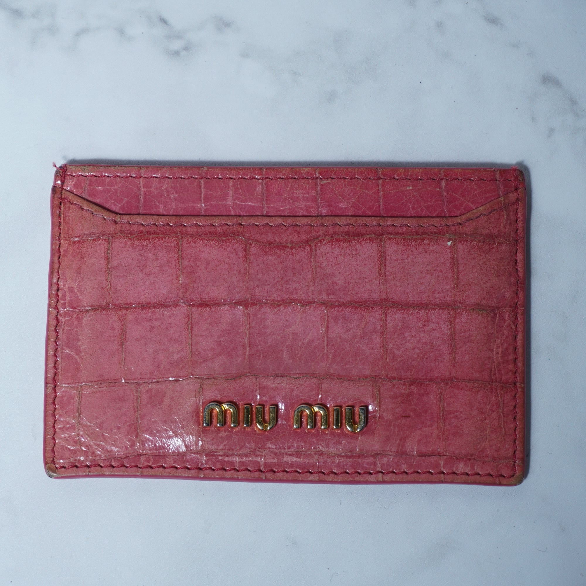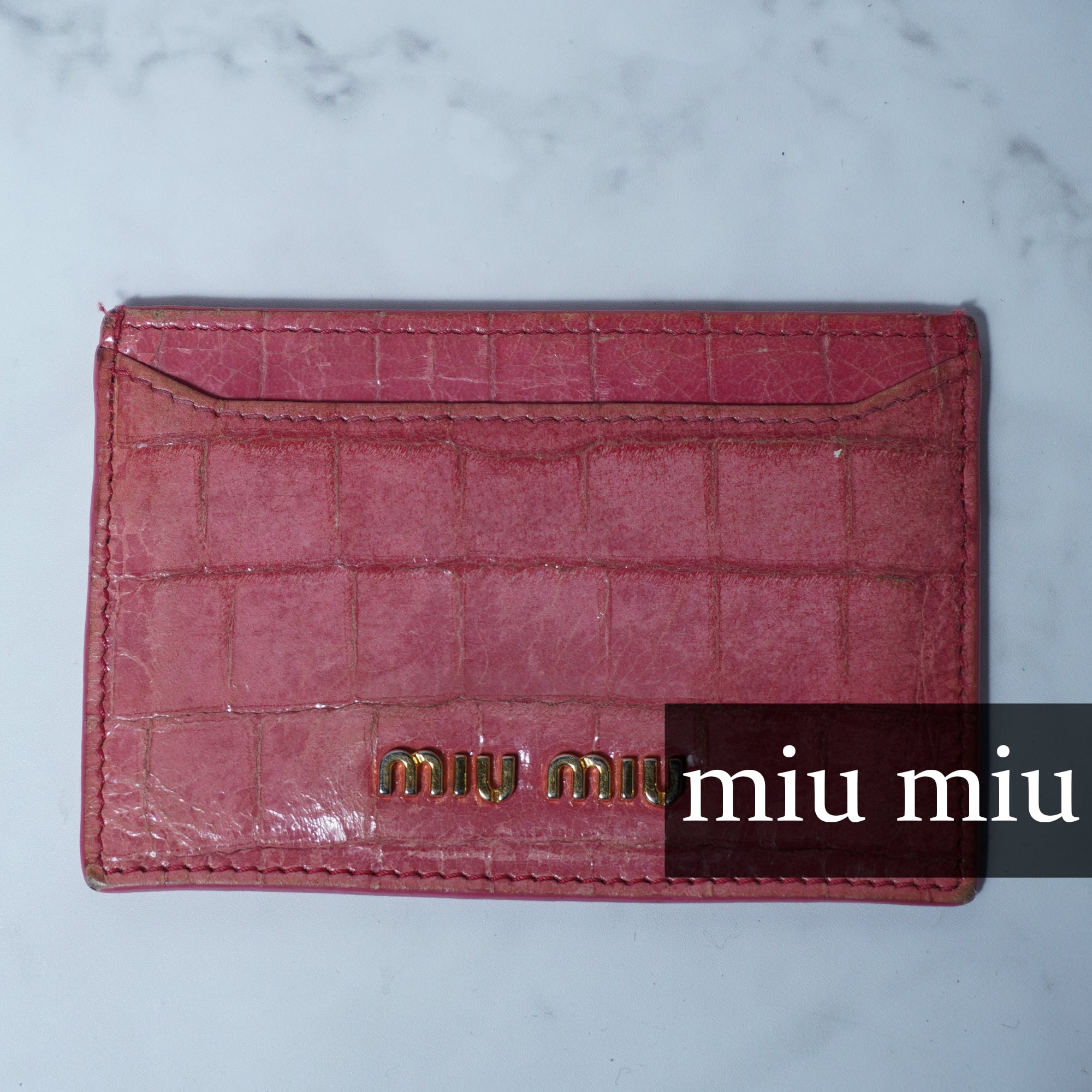 【miumiu】ミュウミュウ ロゴ入 クロコ調レザーパスケース pink