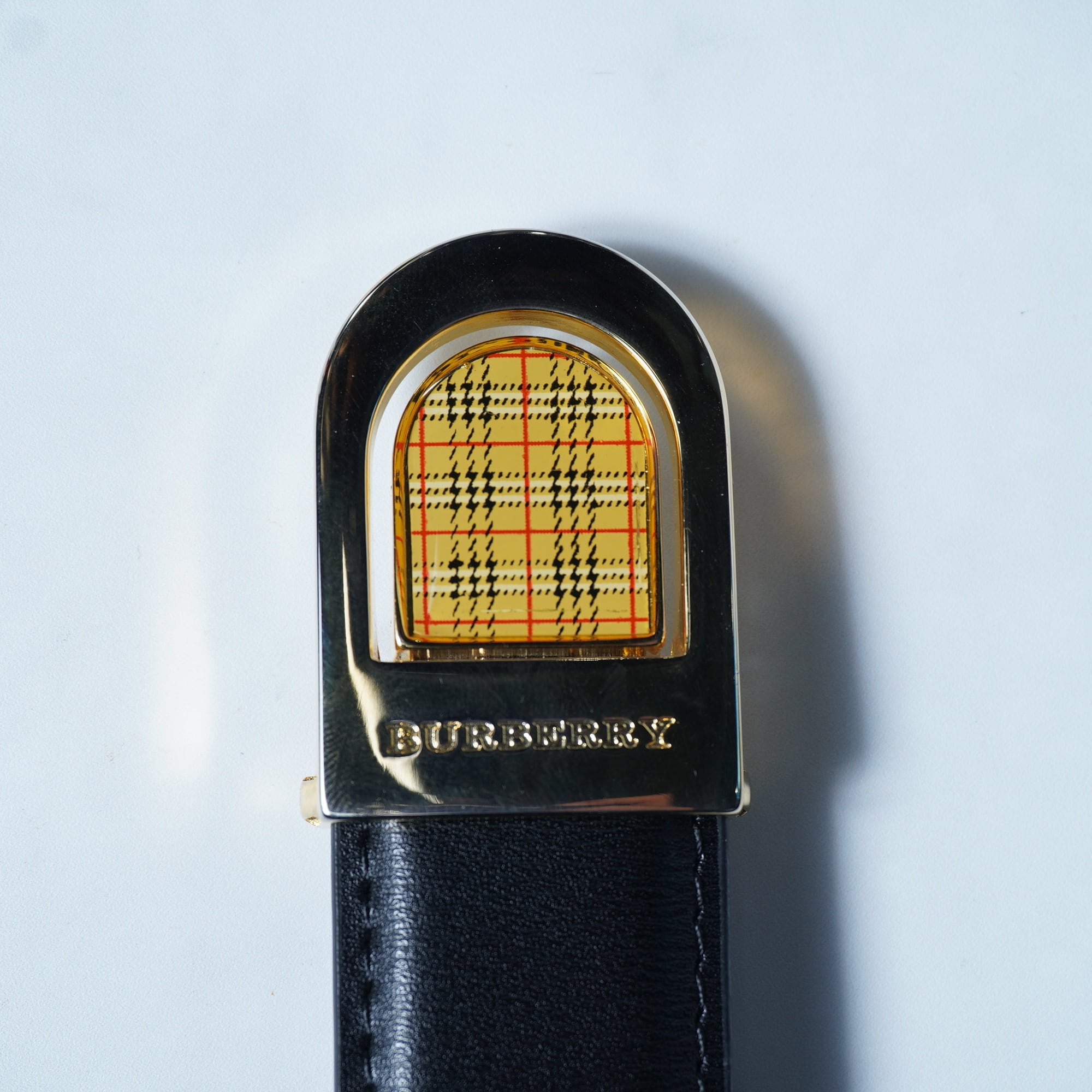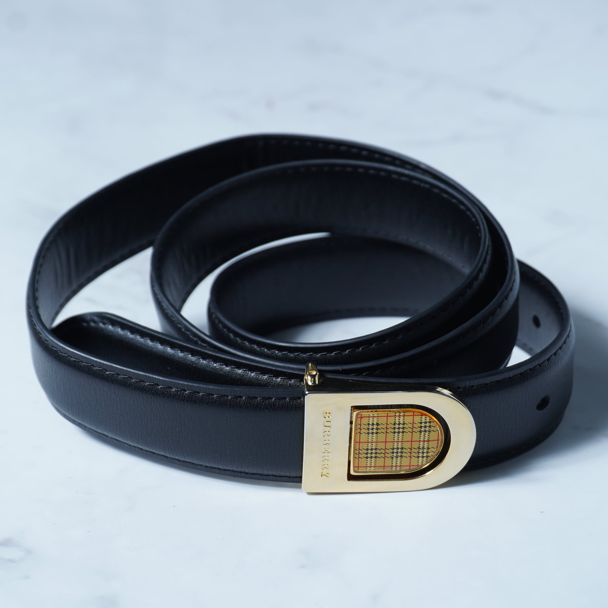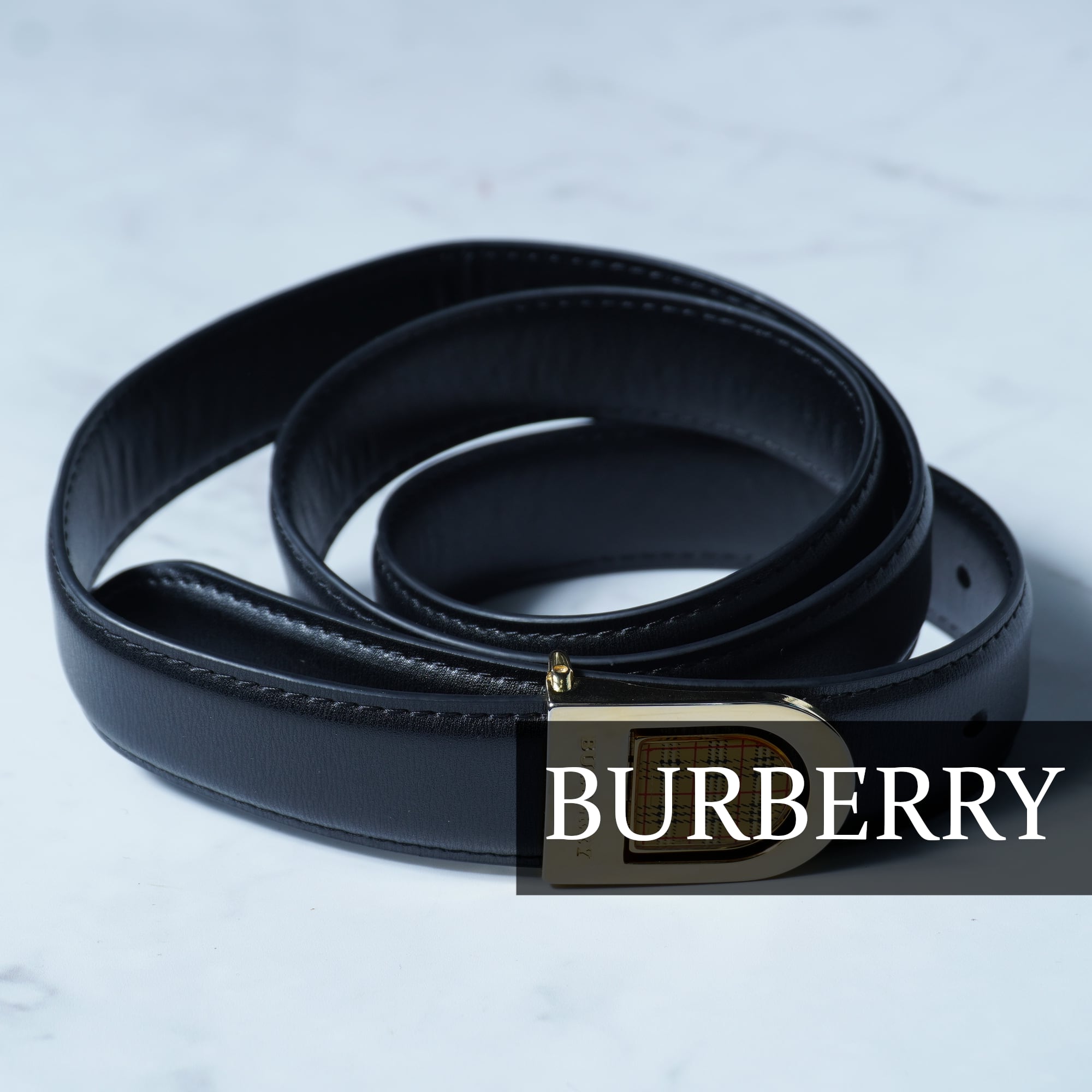 【BURBERRY】バーバリー ロゴ入 ノバチェックゴールドバックルレザーベルト black
