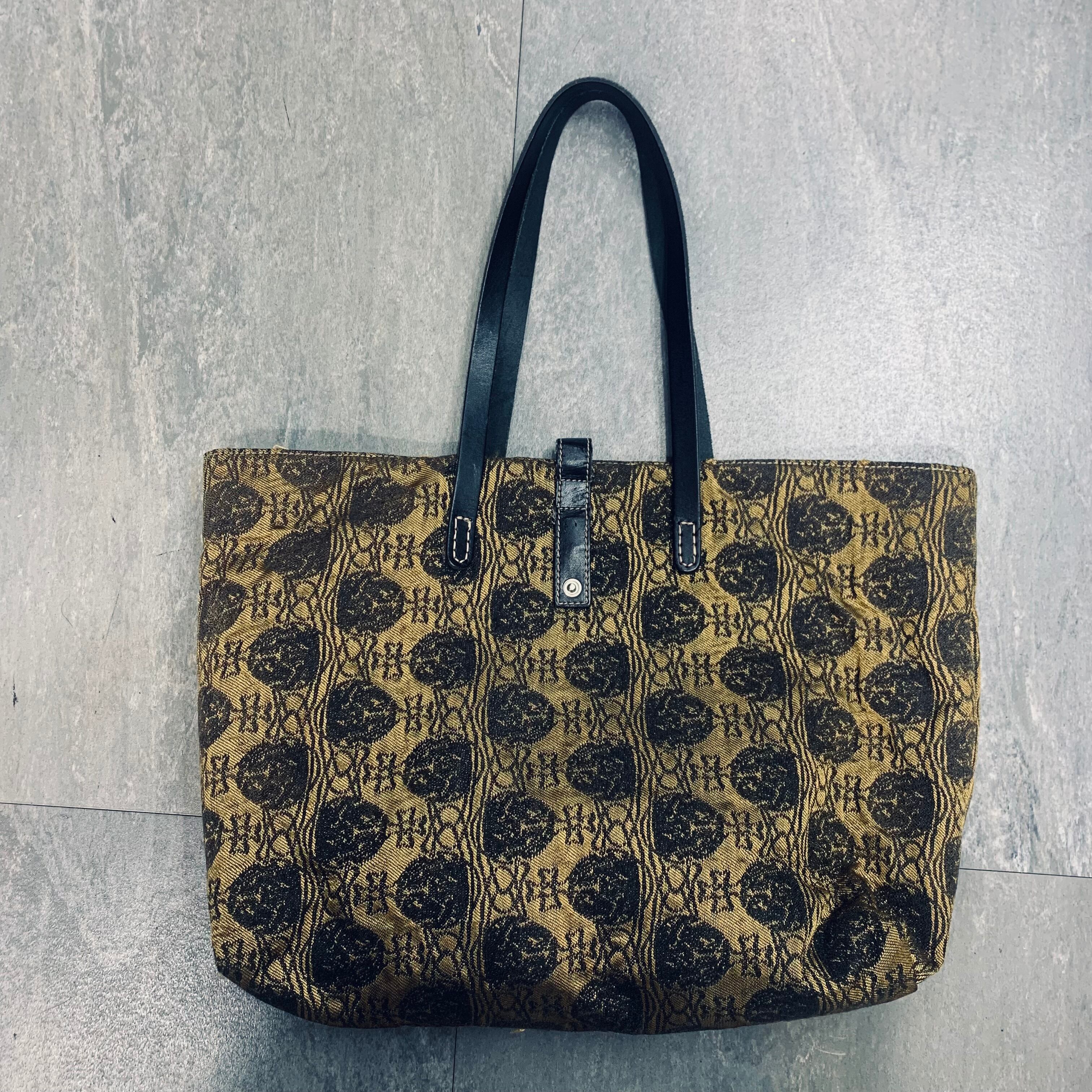 【Vivienne Westwood】ヴィヴィアンウエストウッド オーブ総柄ジャガード レザーハンドルトートバッグ gold