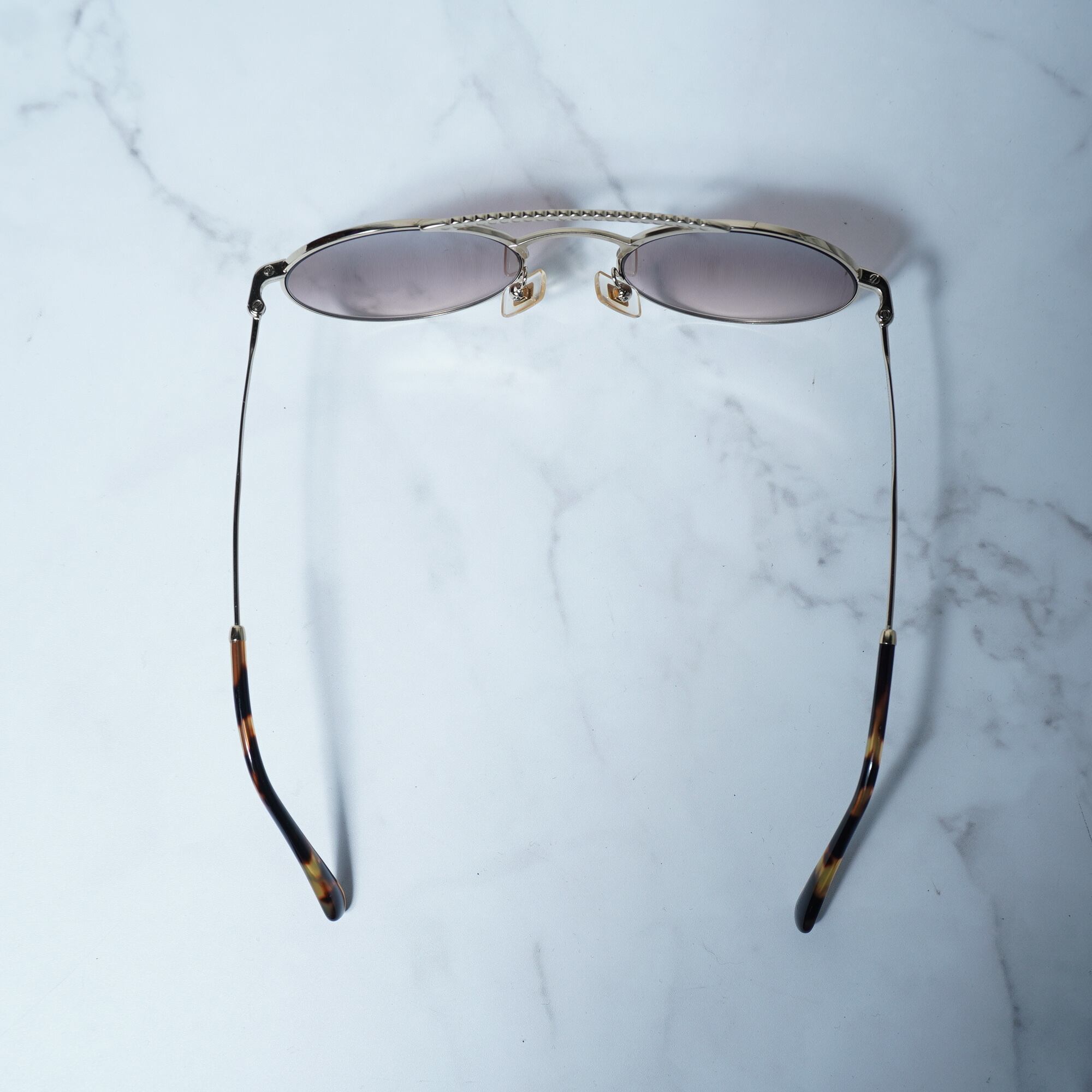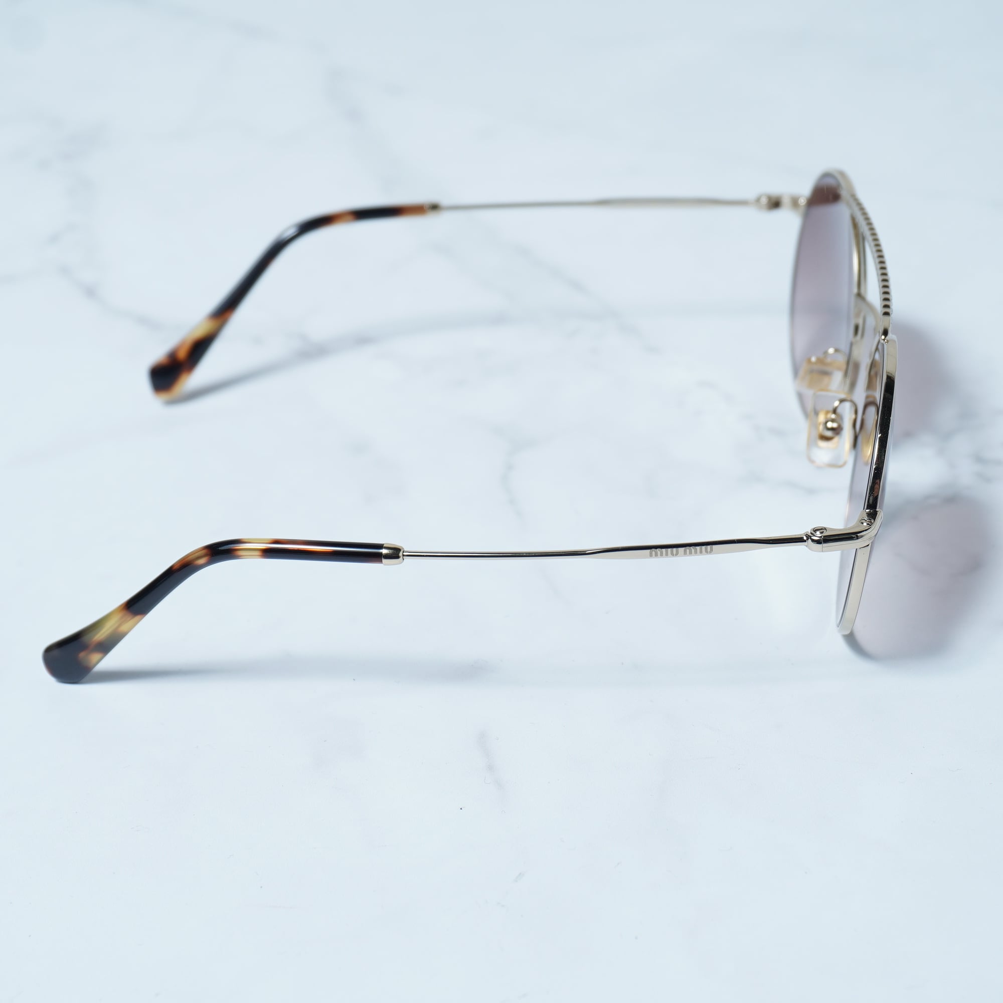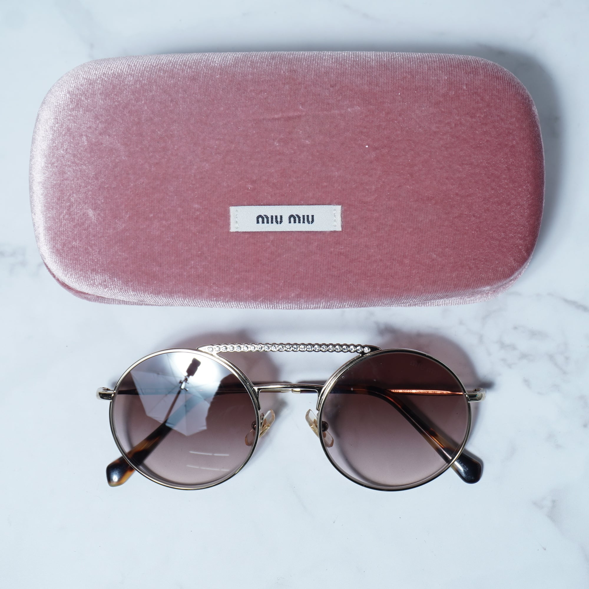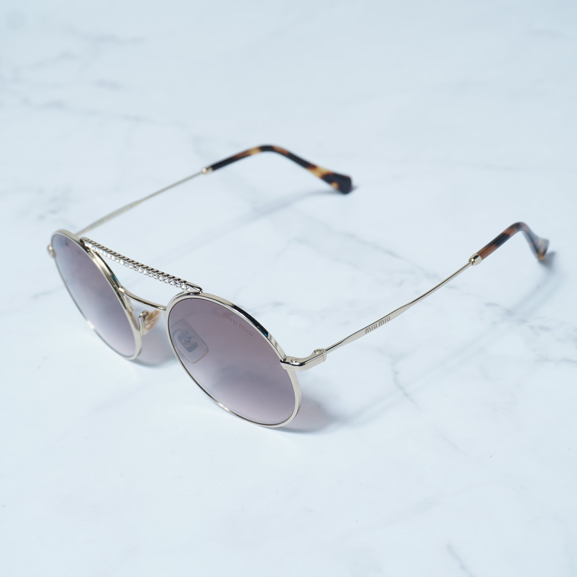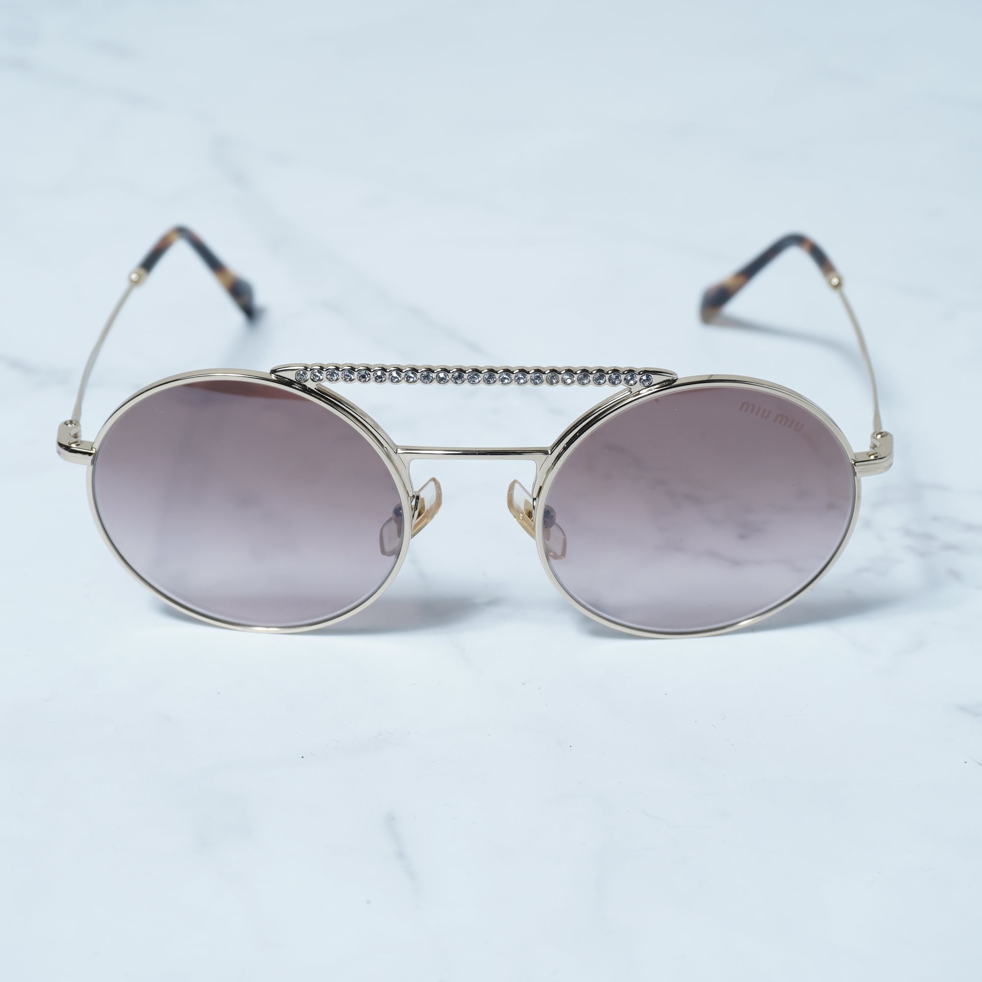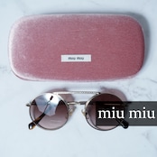 【miumiu】ミュウミュウ ラインストーン 装飾ラウンドフレームサングラス gold&brown