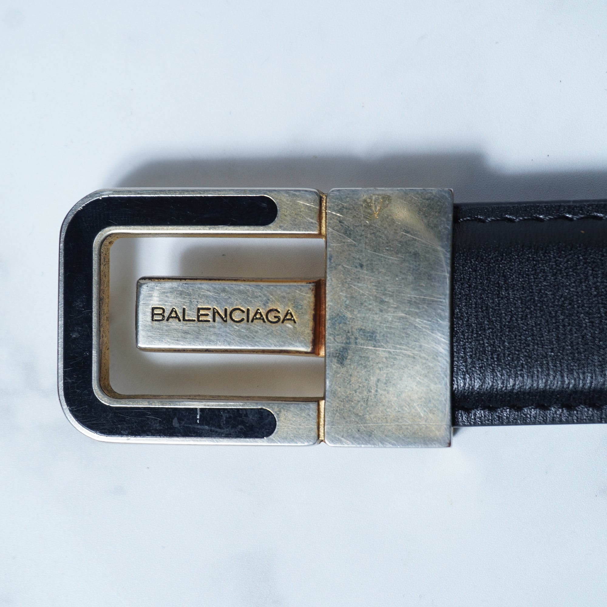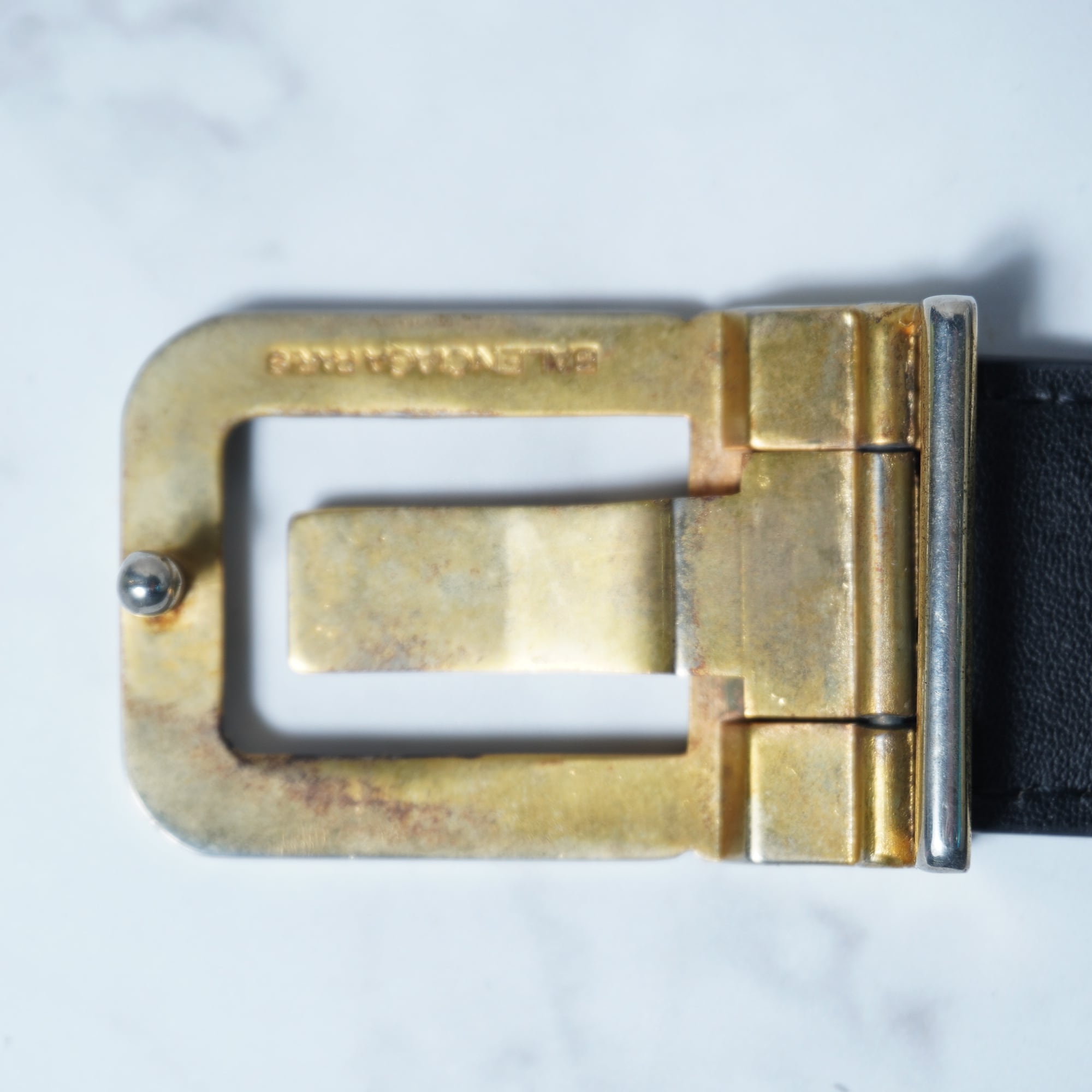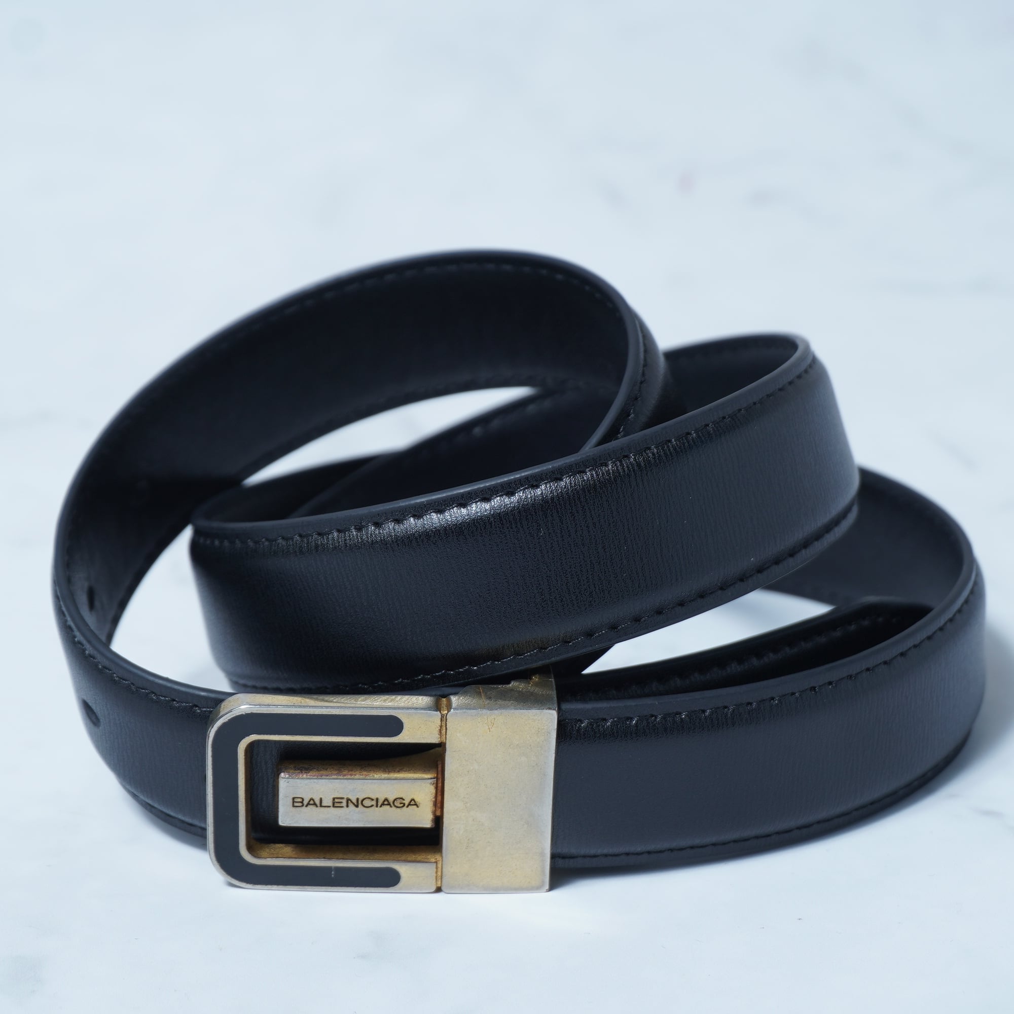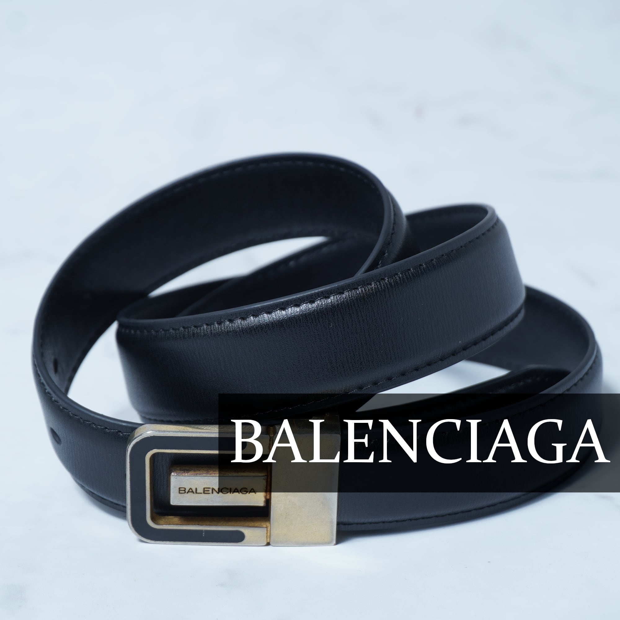 【BALENCIAGA】バレンシアガ ”ロゴ入”ゴールドバックルレザーベルト black