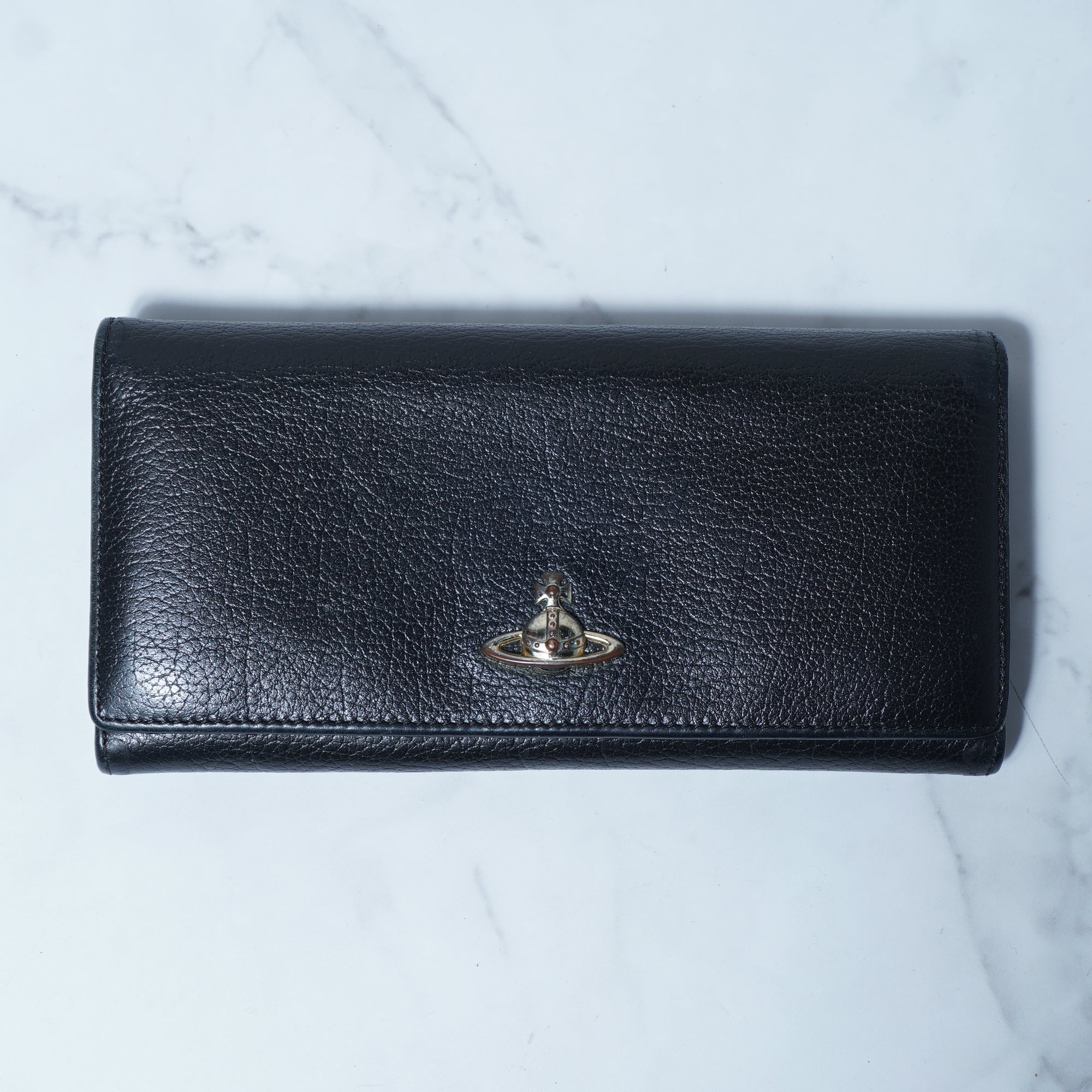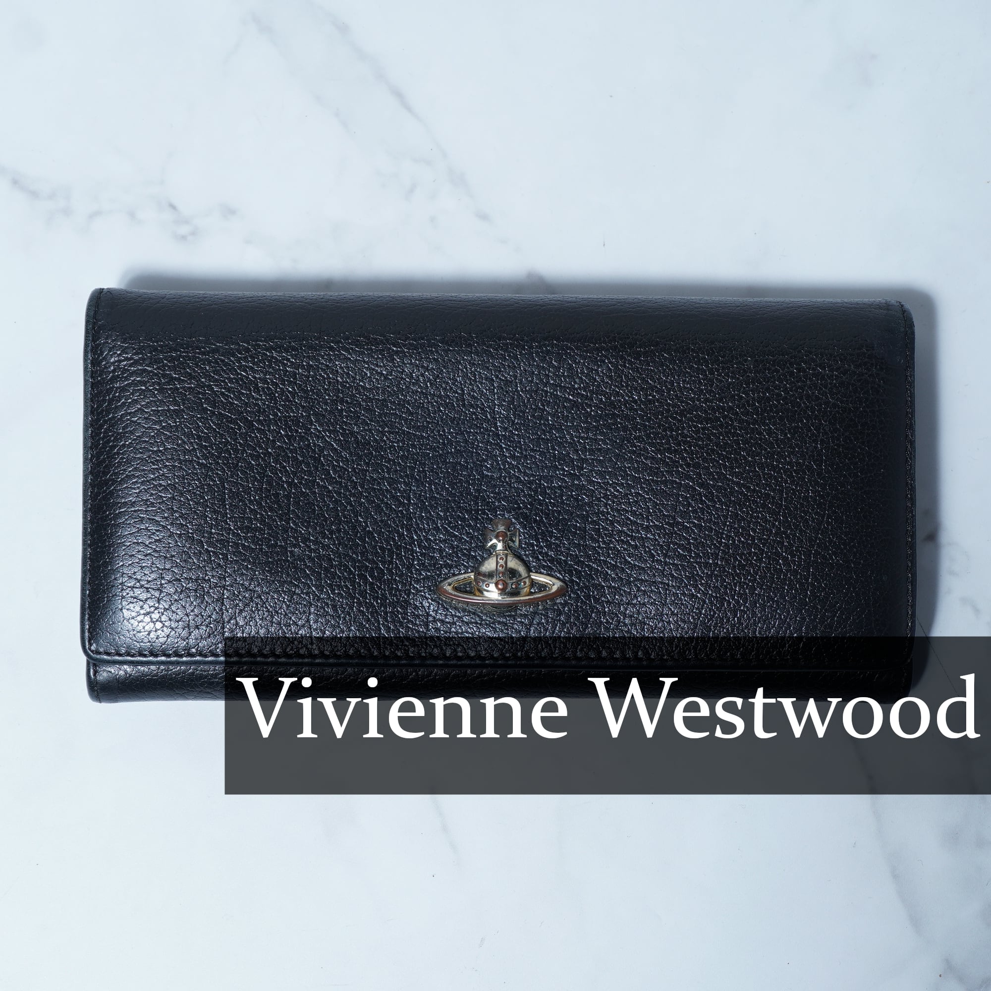 【Vivienne Westwood】ヴィヴィアンウエストウッド オーブロゴ リアルレザーロングウォレット black