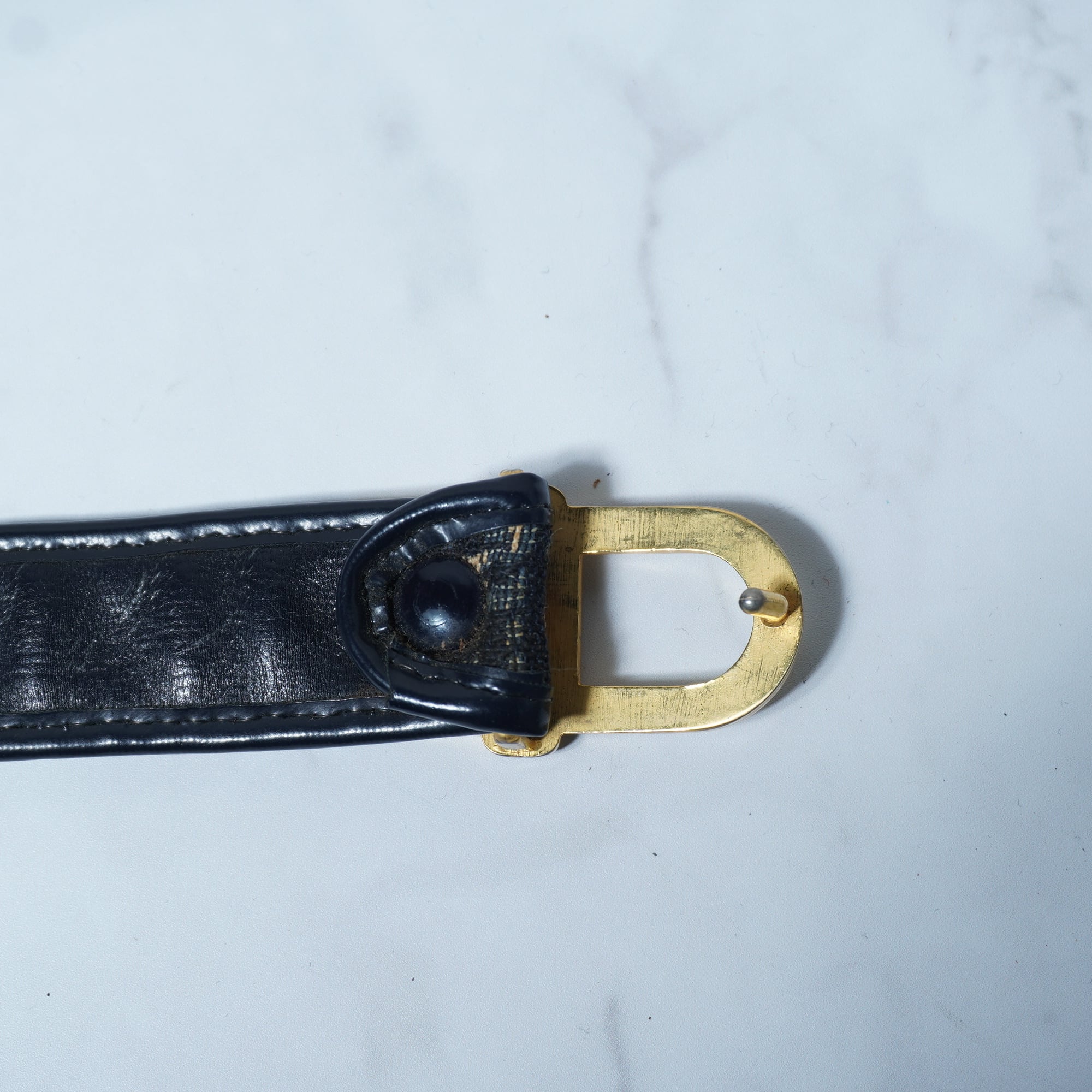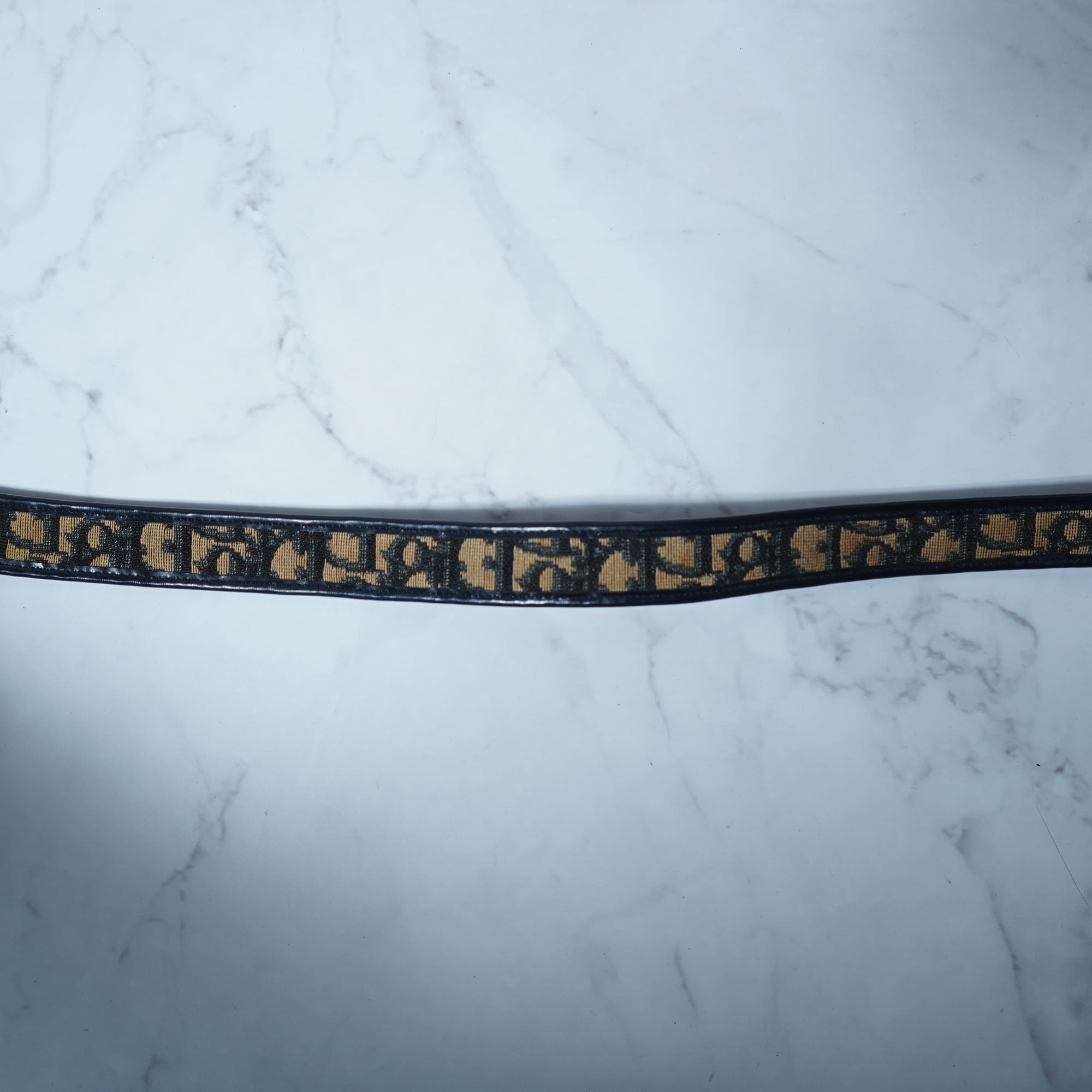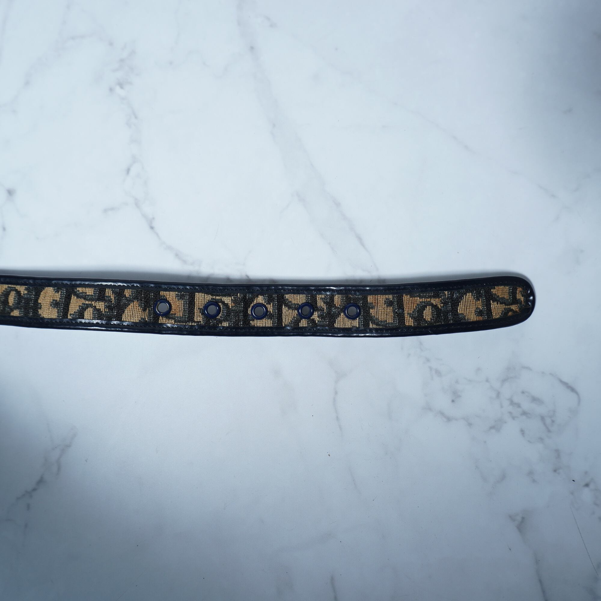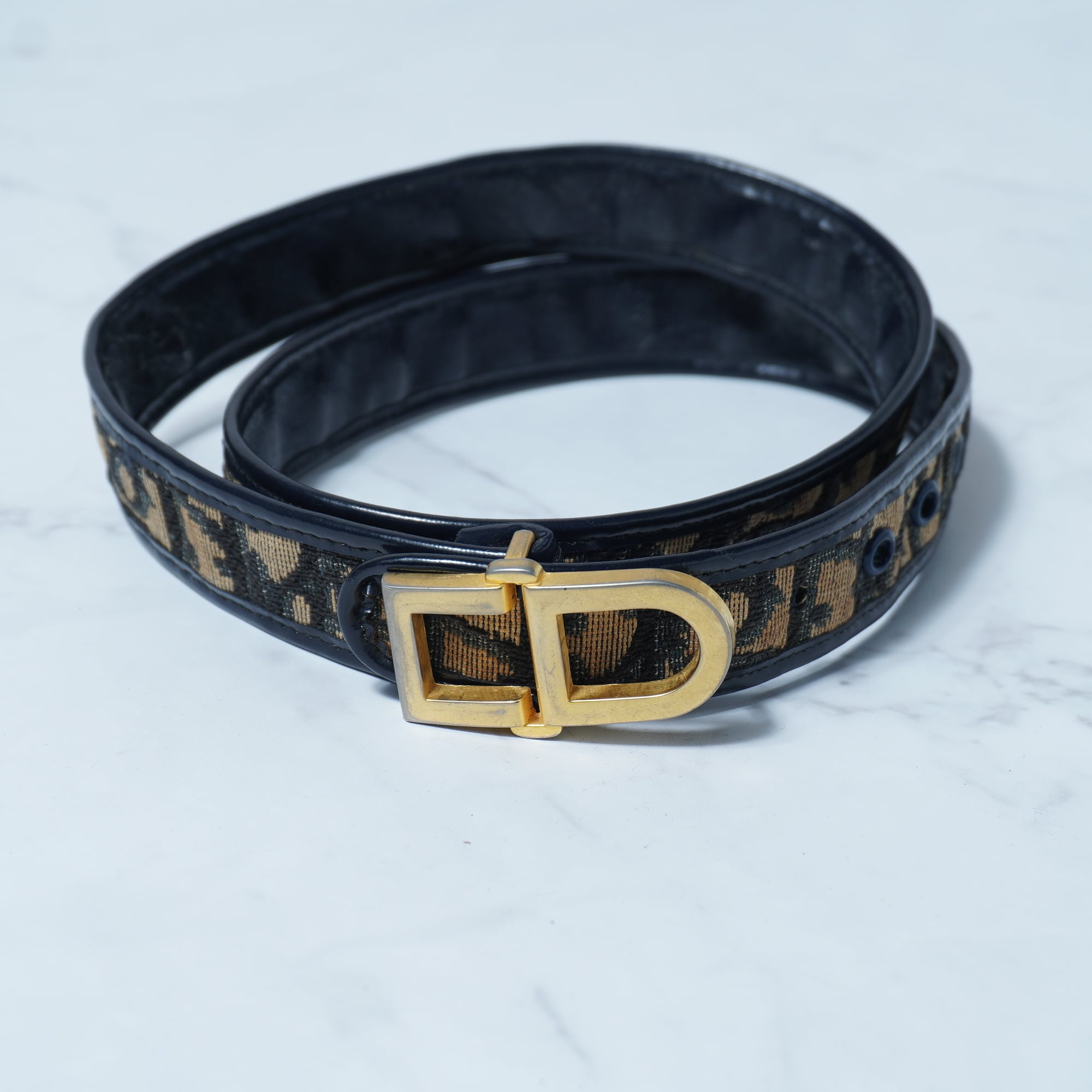 【Christian Dior】クリスチャンディオール CDロゴゴールドバックルトロッター総柄ベルト beige&navy