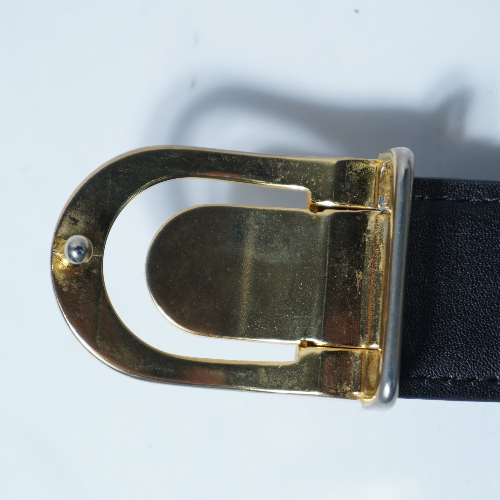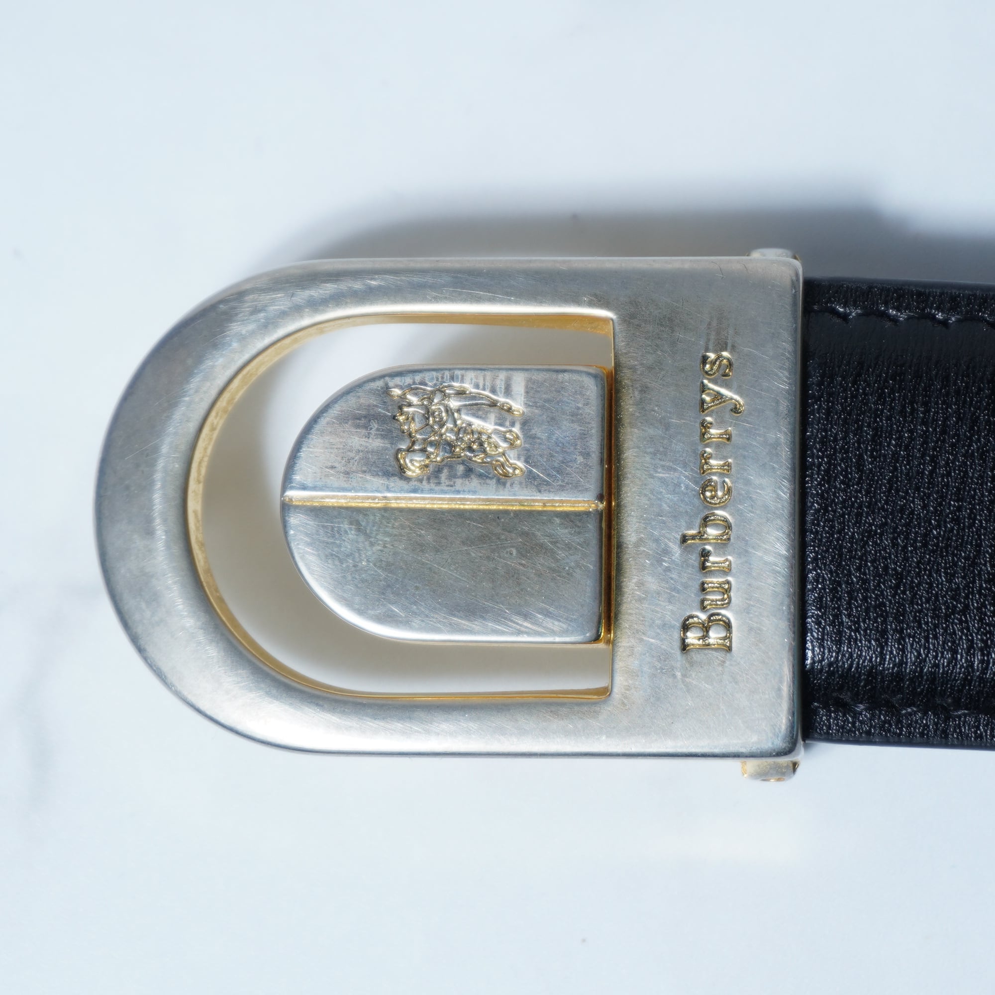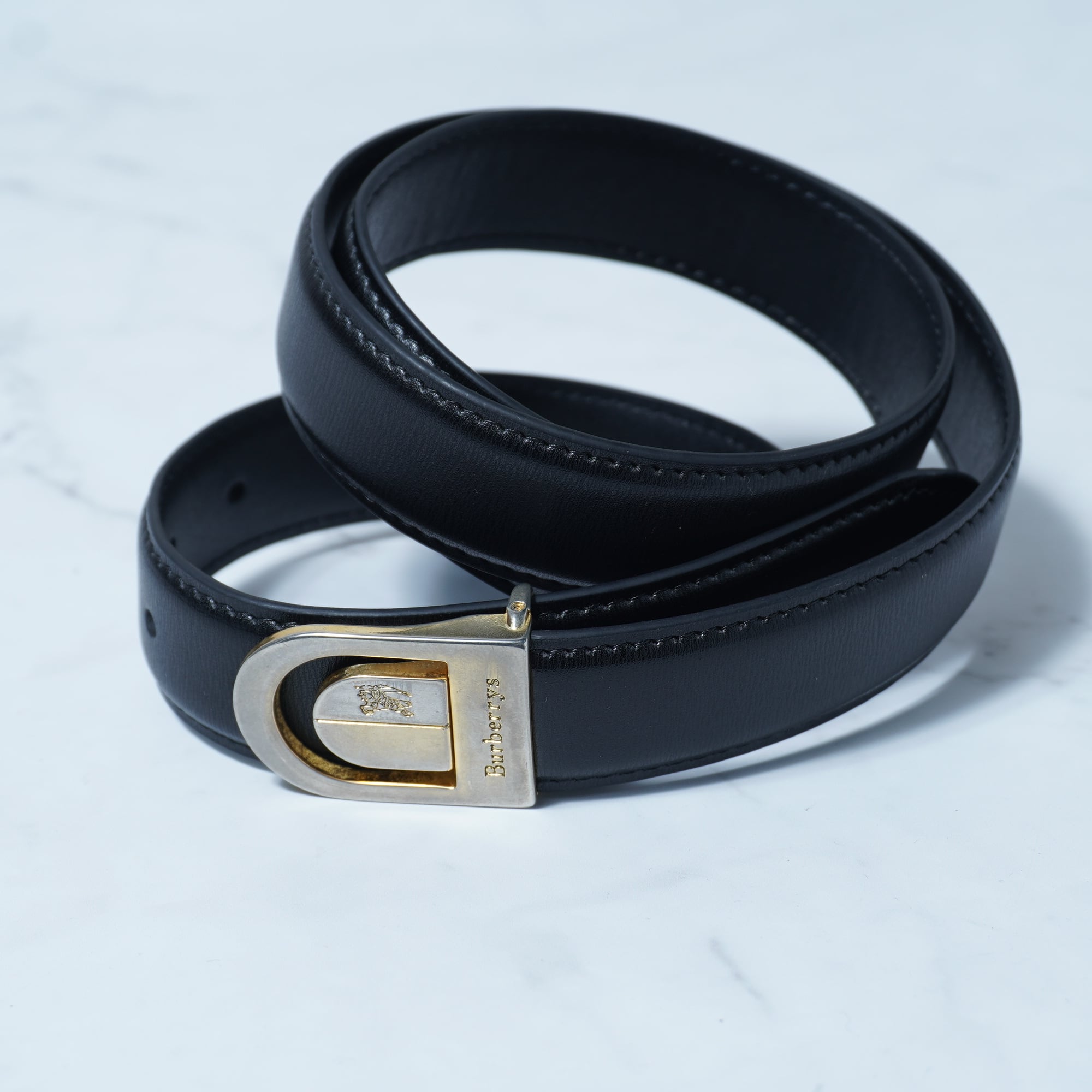【BURBERRY】バーバリー ホースロゴ ゴールドバックルレザーベルト black