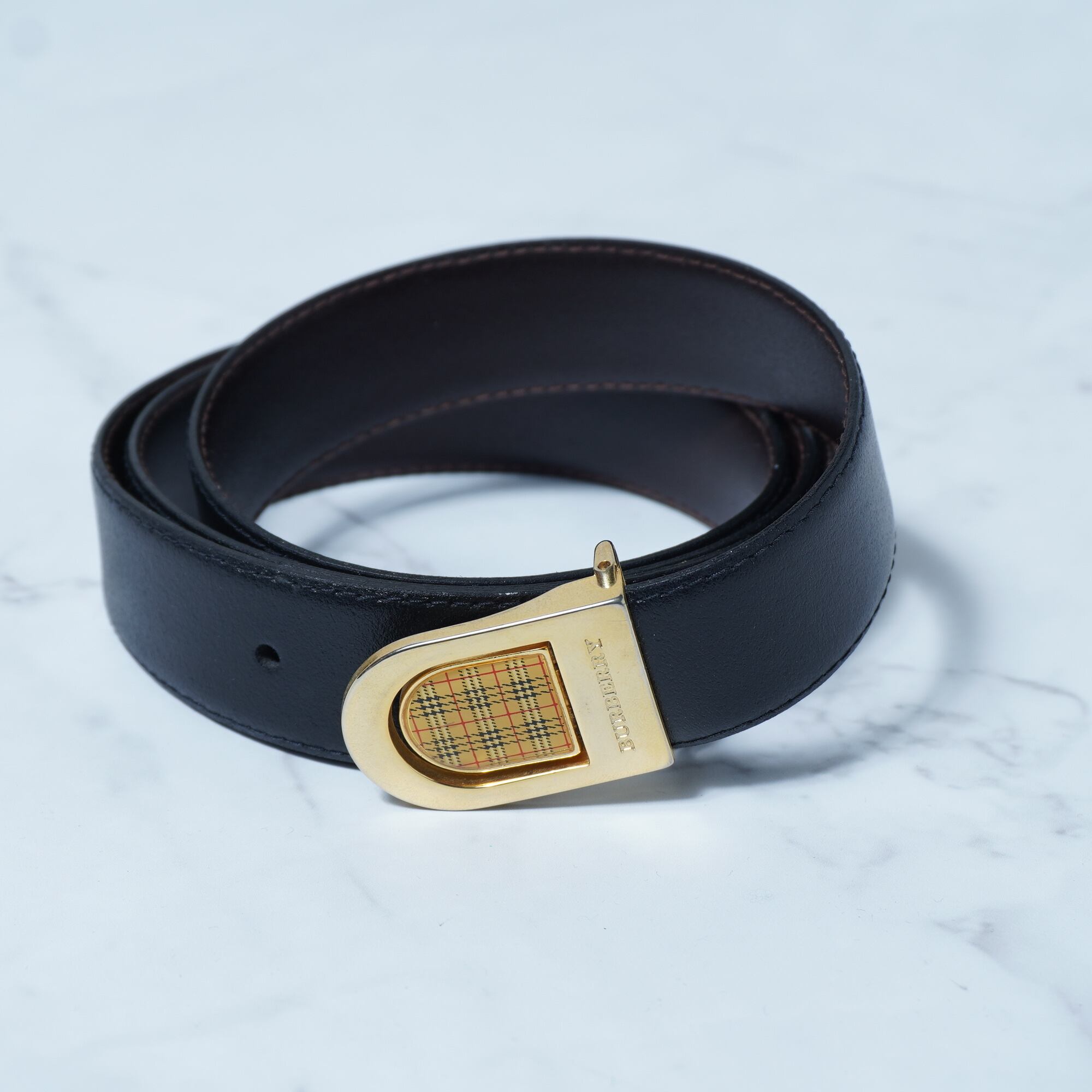 【BURBERRY】バーバリー ノヴァチェック・ロゴ入りゴールドバックルレザーベルト black
