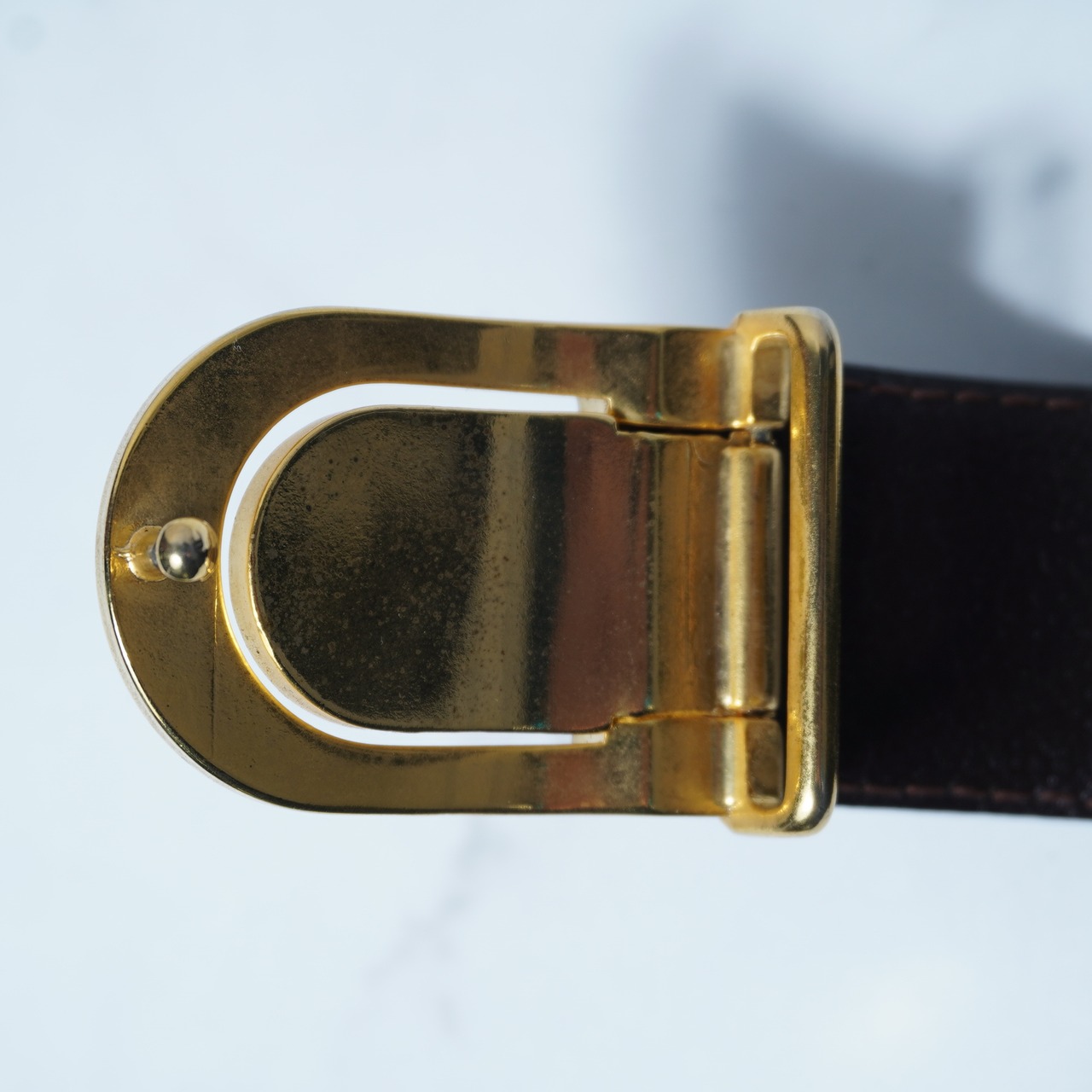 ・シックなブラックカラーにゴールドバックルがアクセントとして映えるレザーベルト