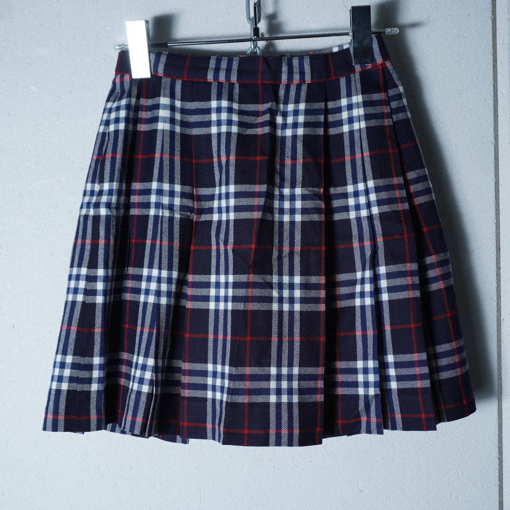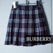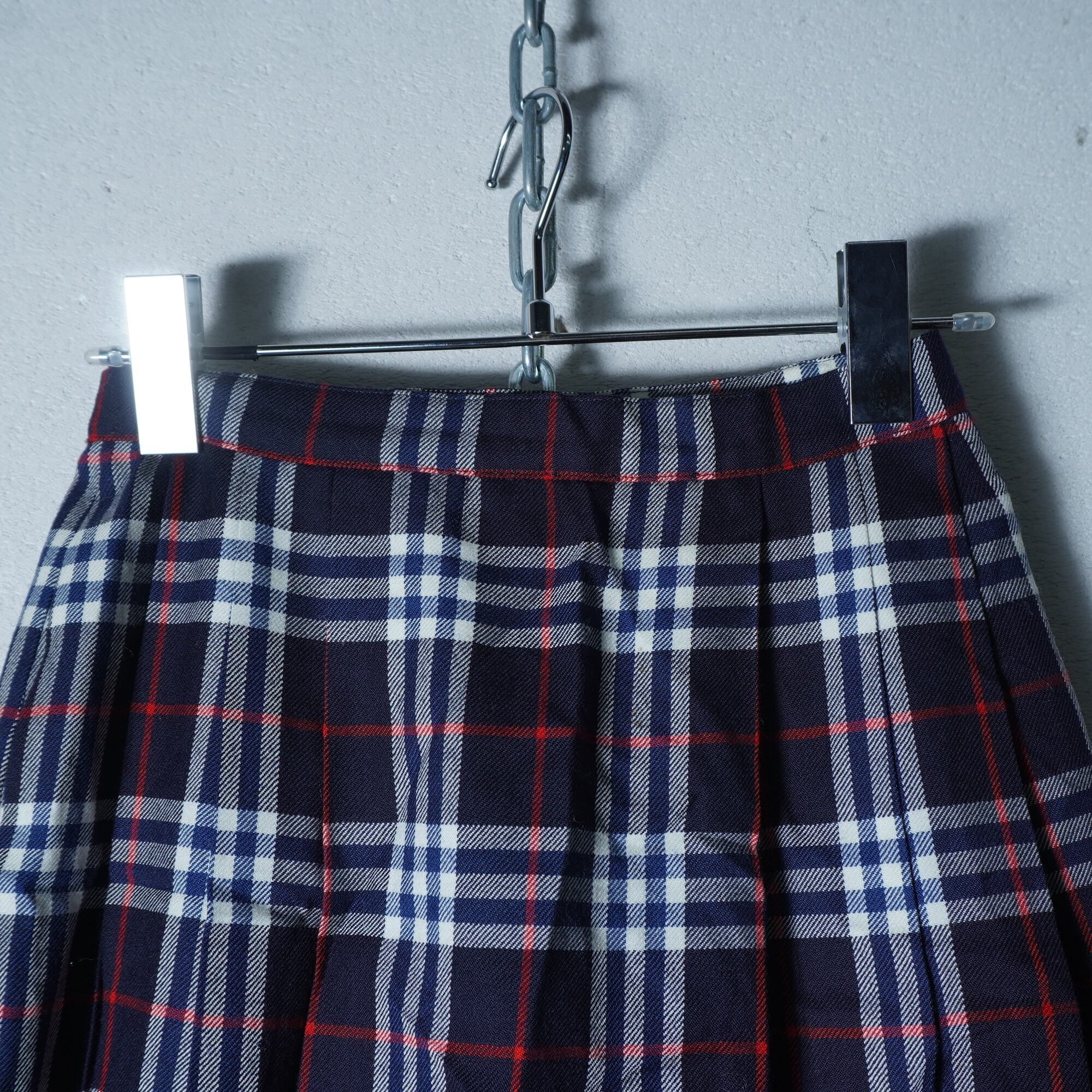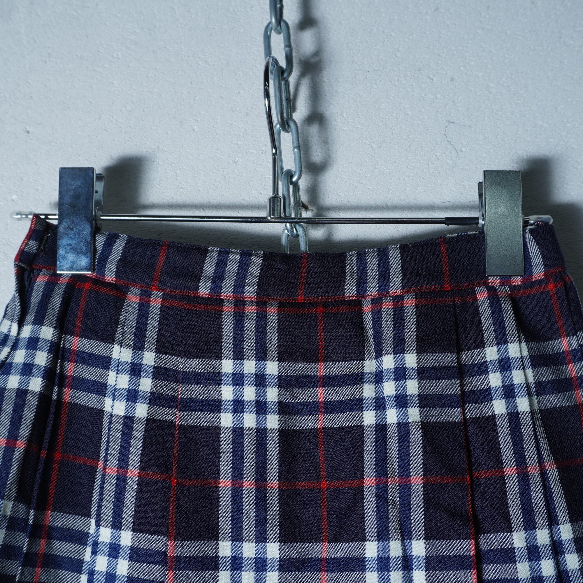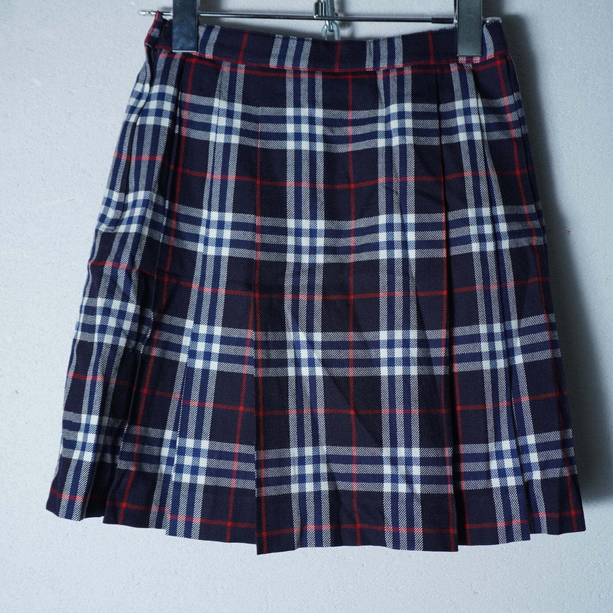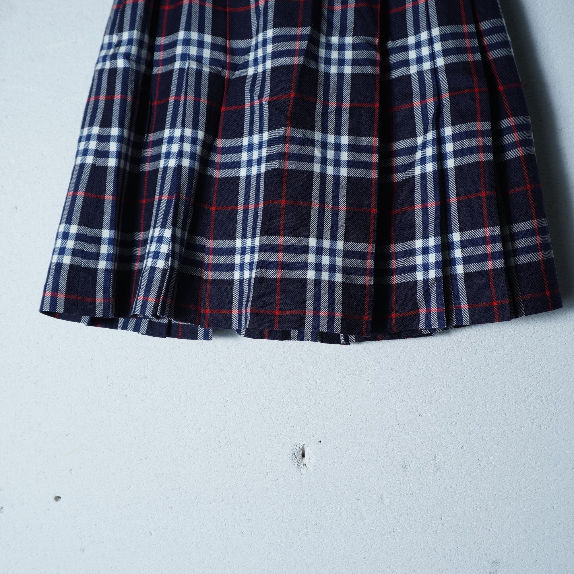 【BURBERRY】バーバリー WOOL100% チェックプリーツスカート navy