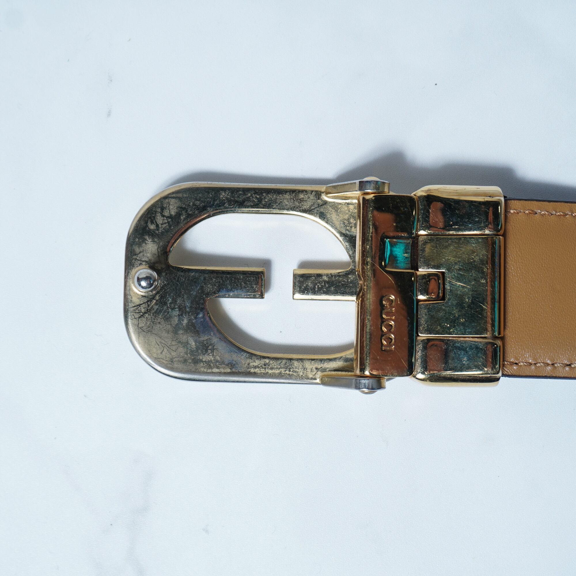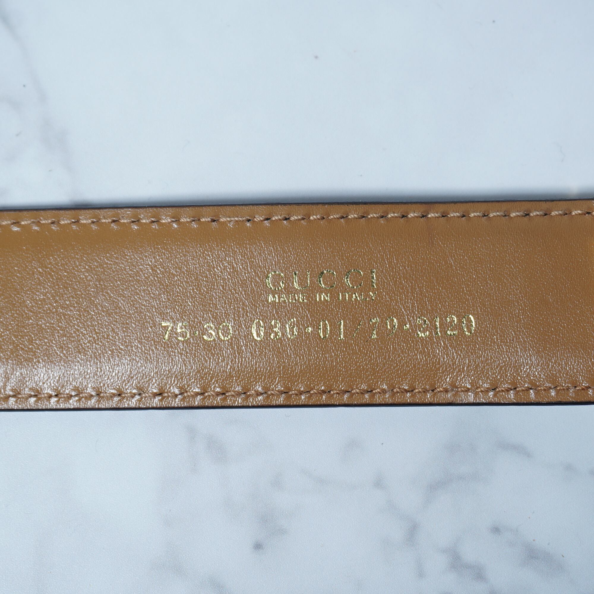 ・洗練された印象を与えるGUCCIのインターロッキンGロゴバックルレザーベルト