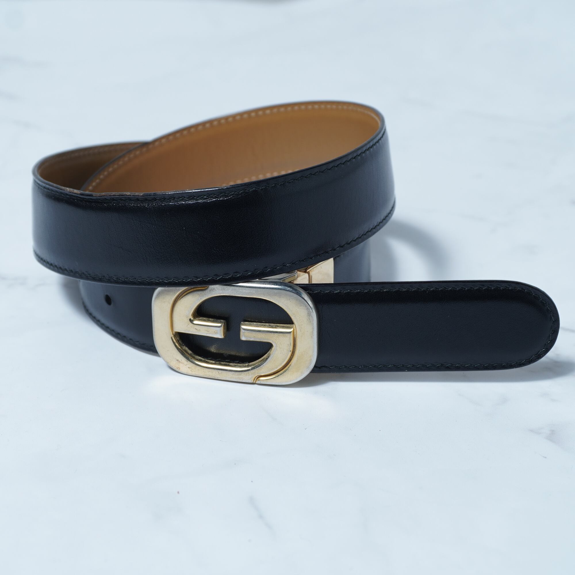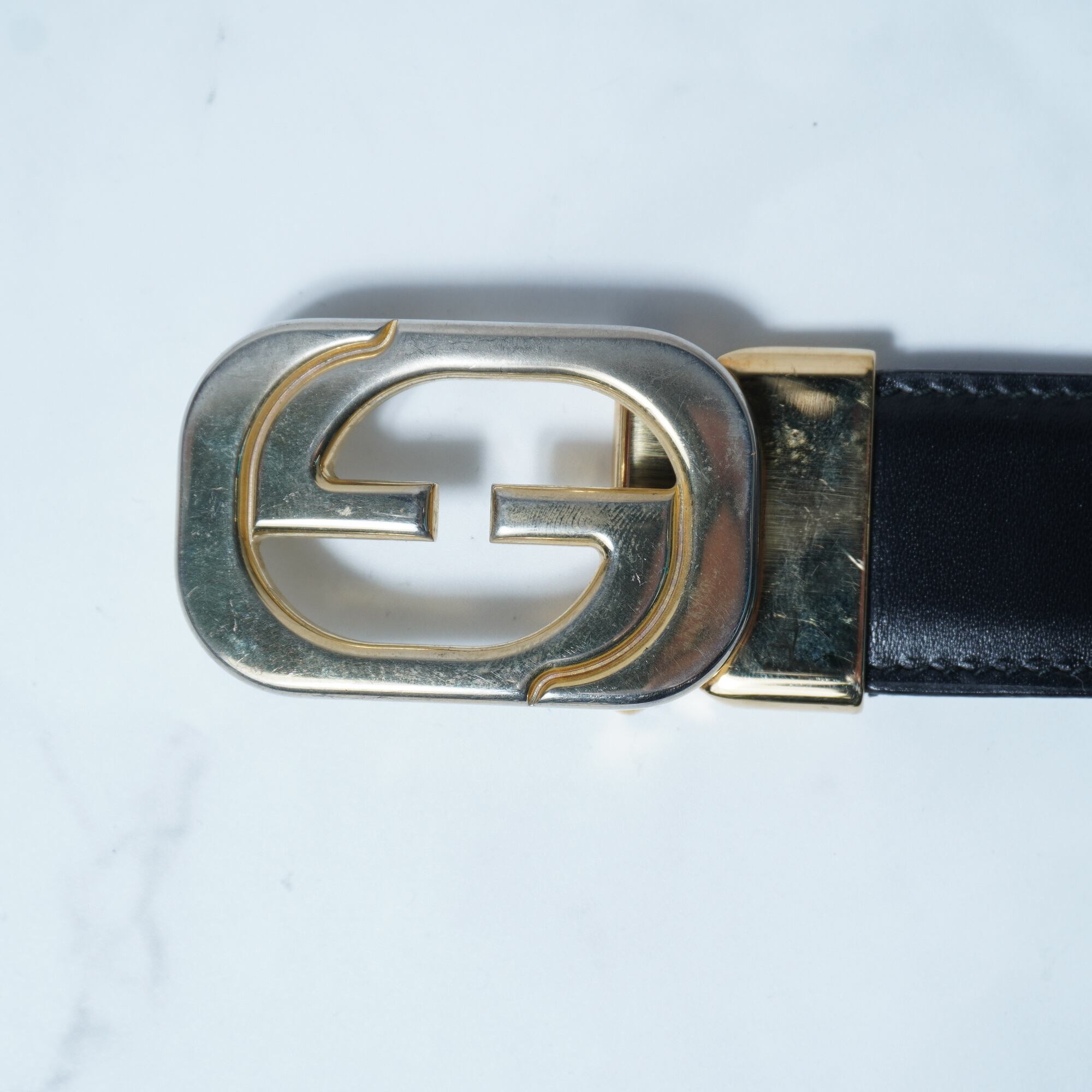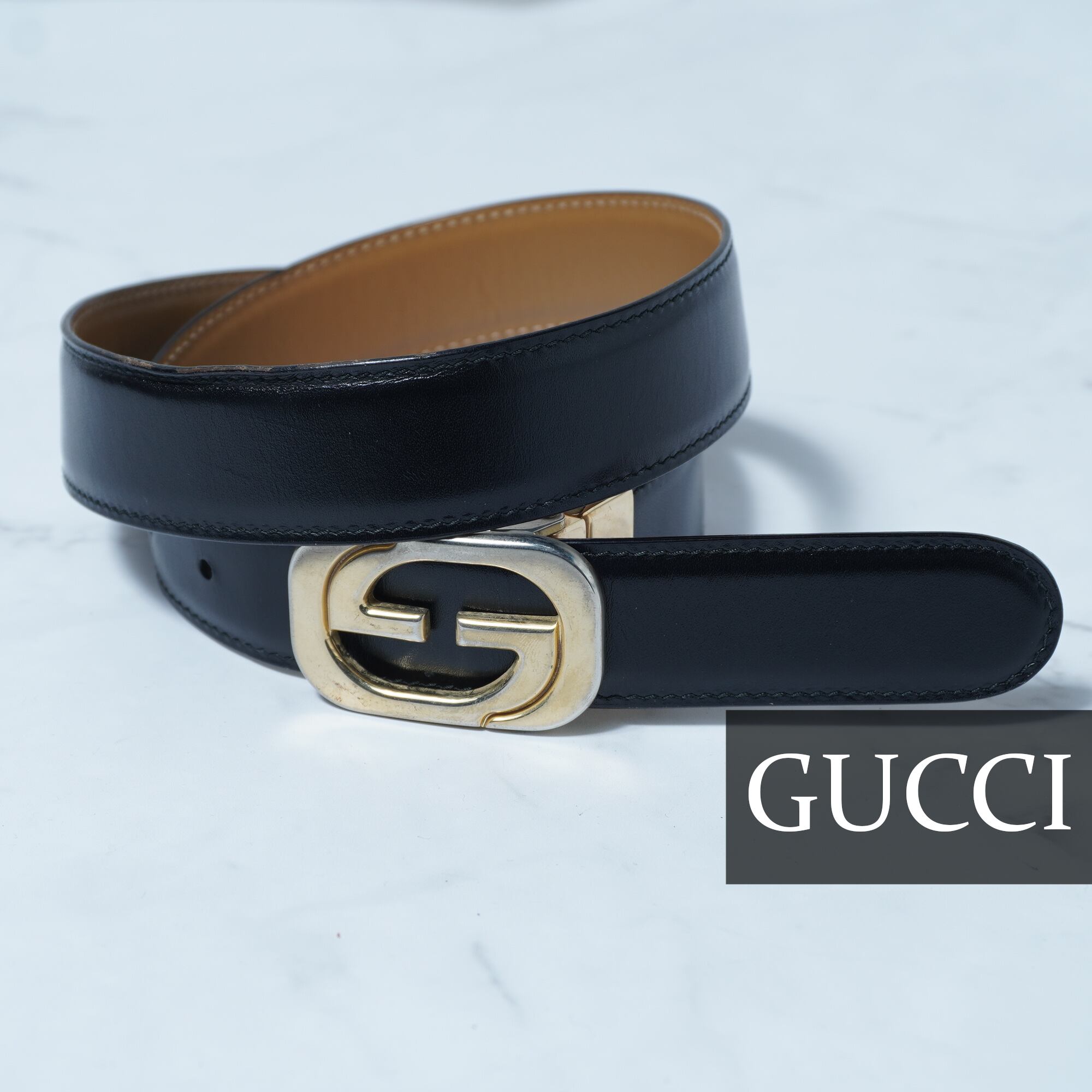 【GUCCI】グッチ インターロッキンGロゴゴールドバックルレザーベルト black