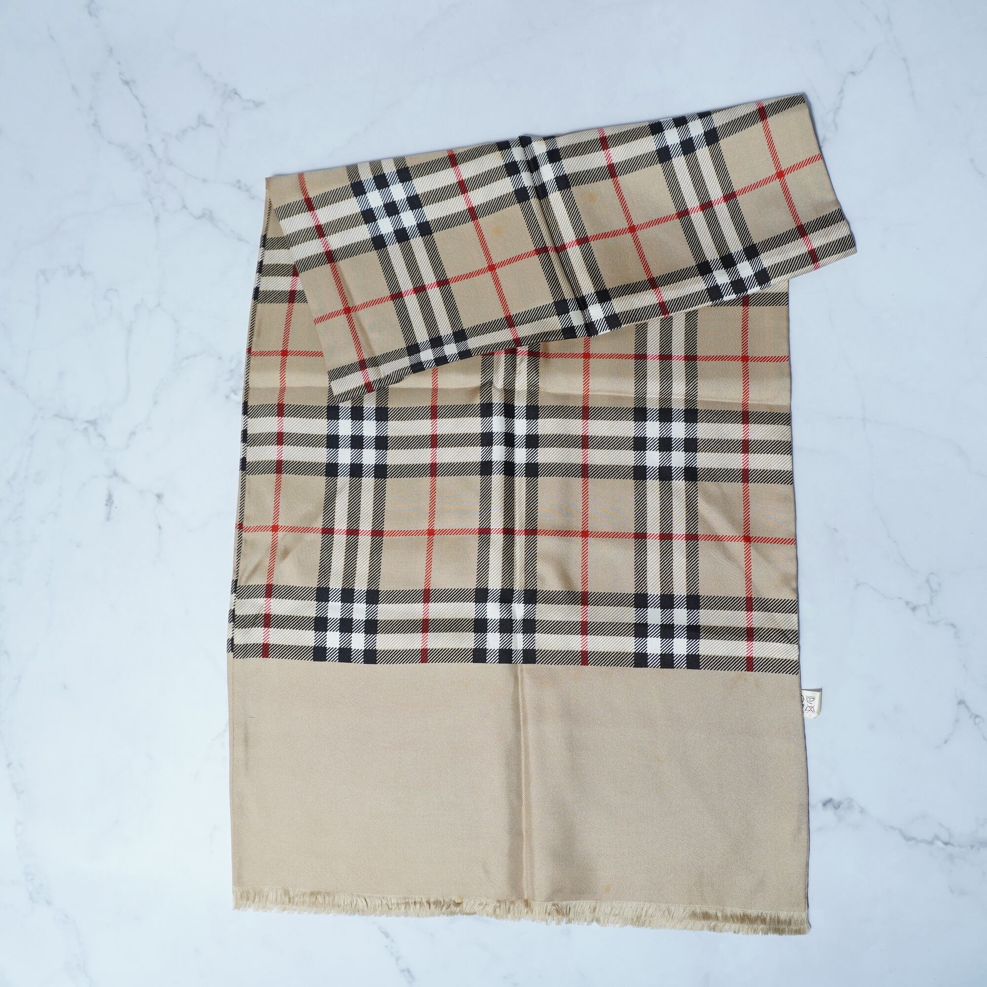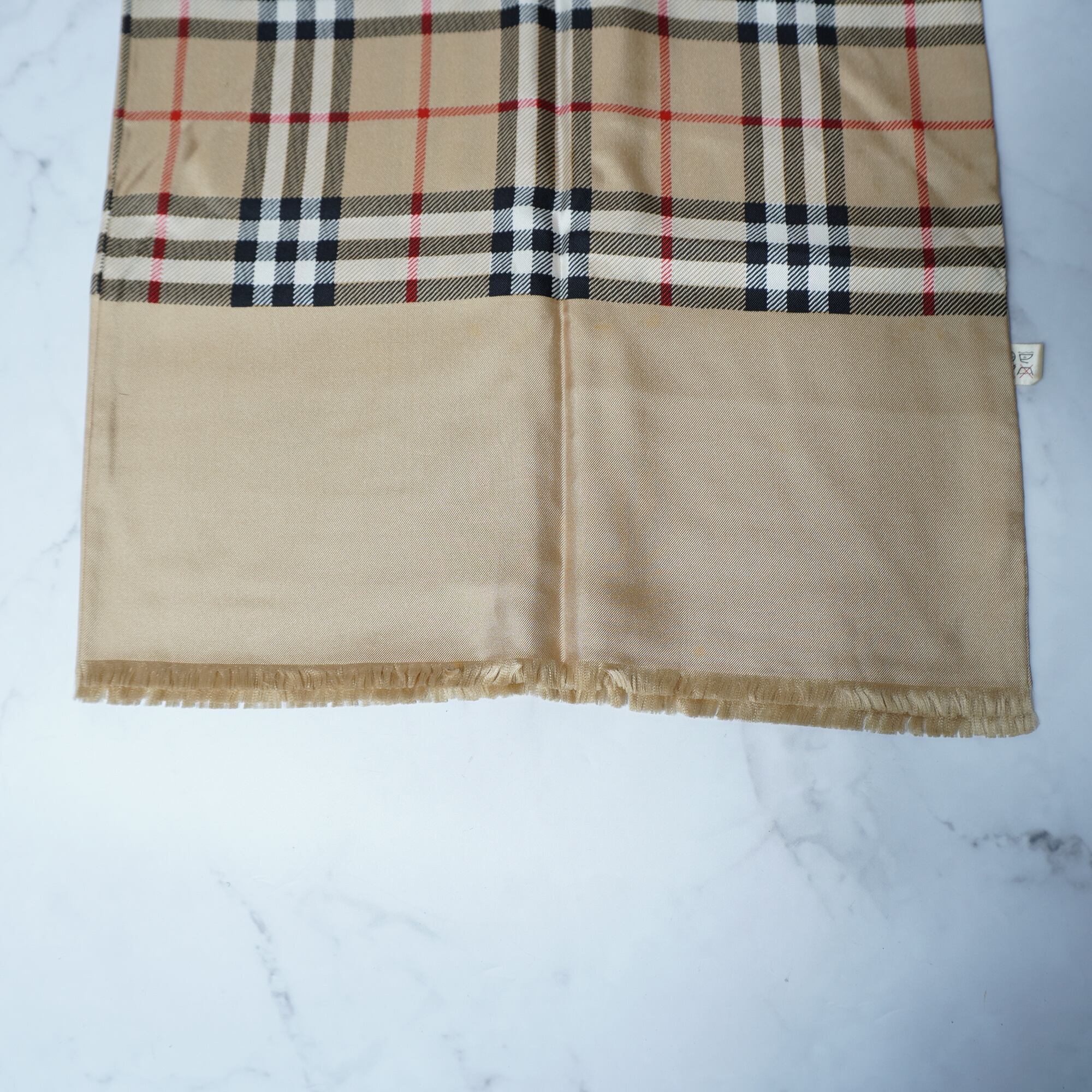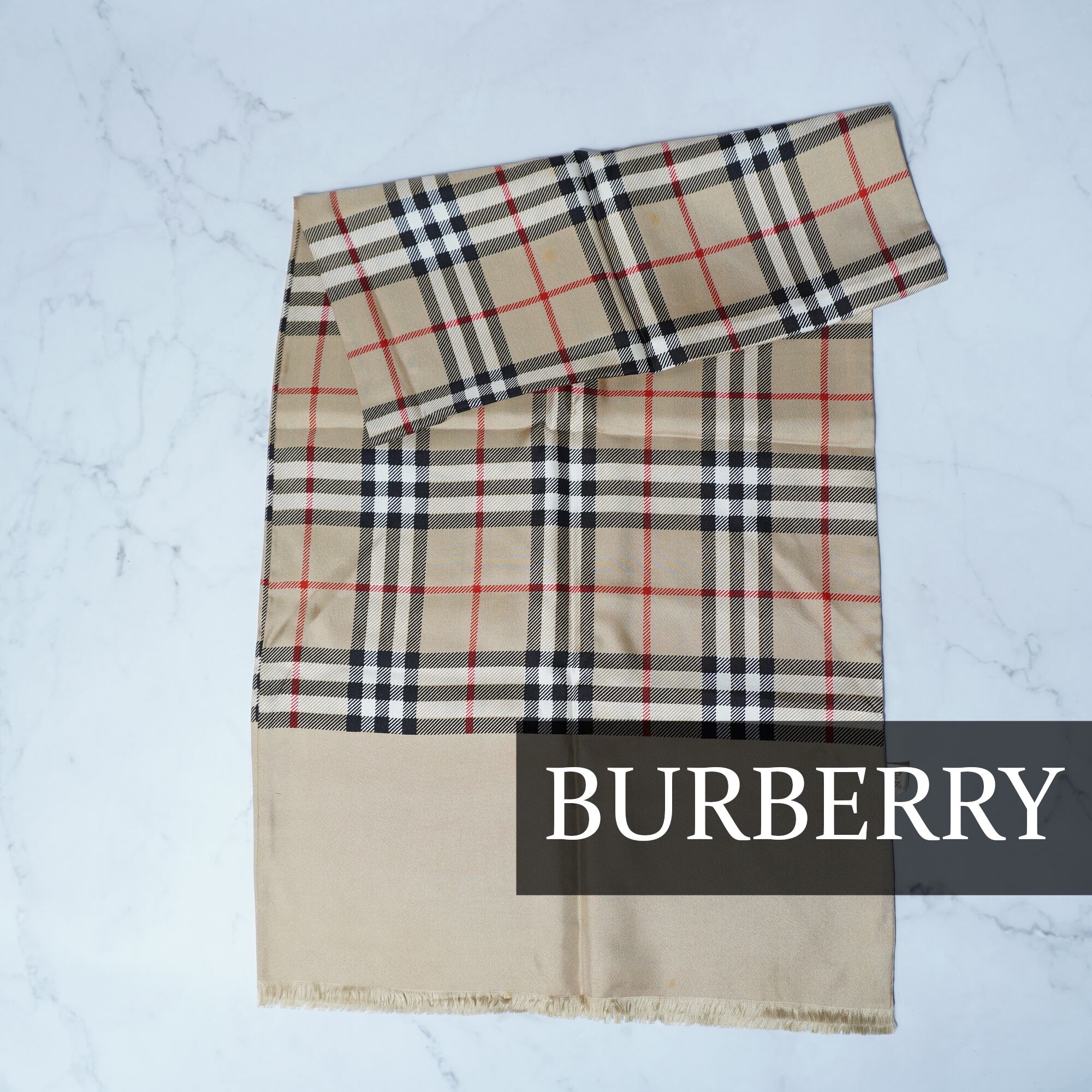 【BURBERRY】バーバリー ホースロゴシルク100%ノバチェックスカーフ beige