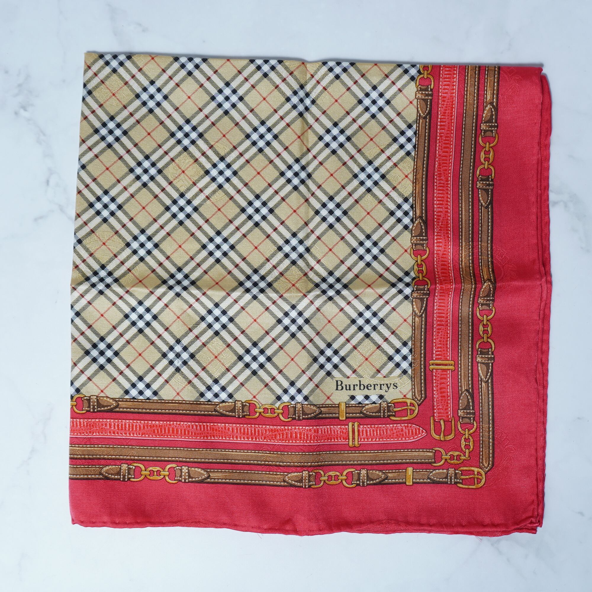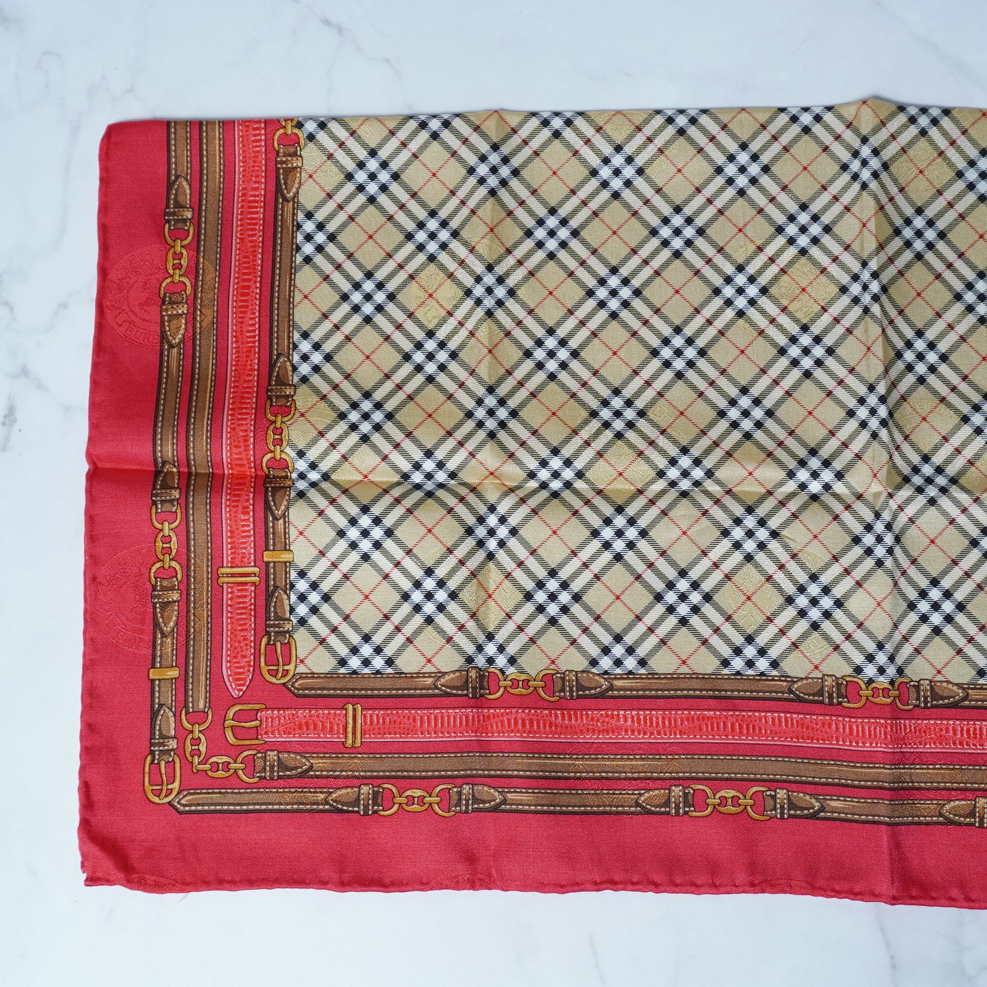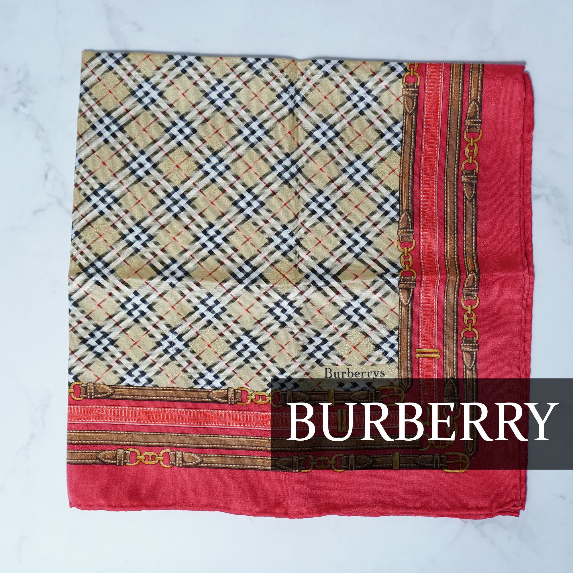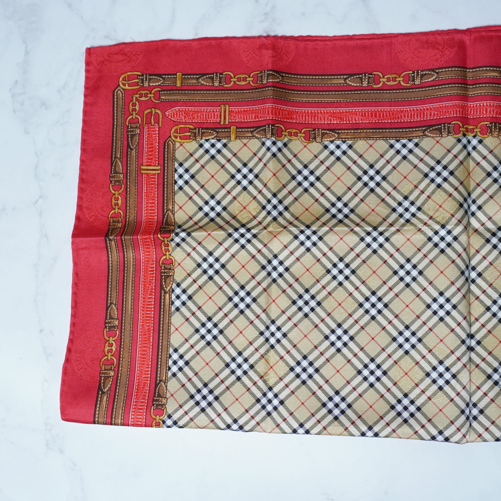 【BURBERRY】バーバリー シャドーホースロゴ ノバチェックスカーフ beige&red