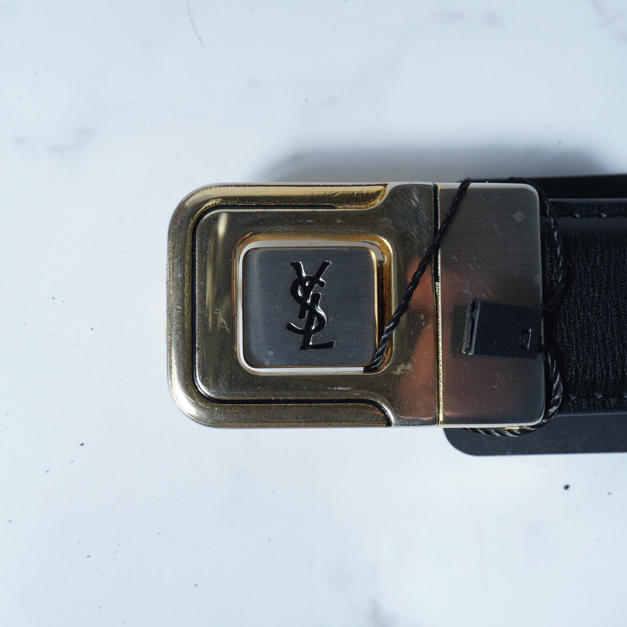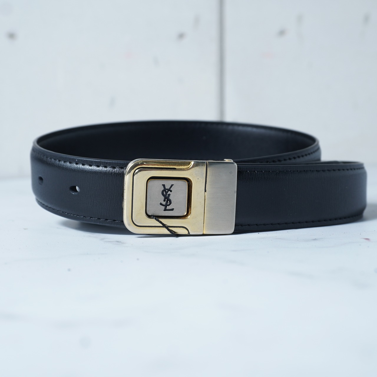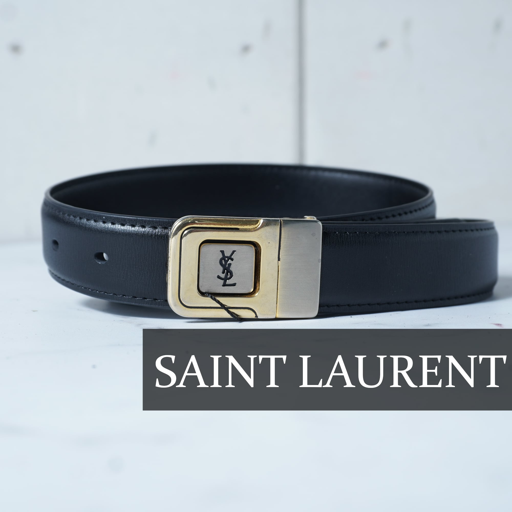 ・YSLロゴのゴールドバックルが存在感を引き立てる