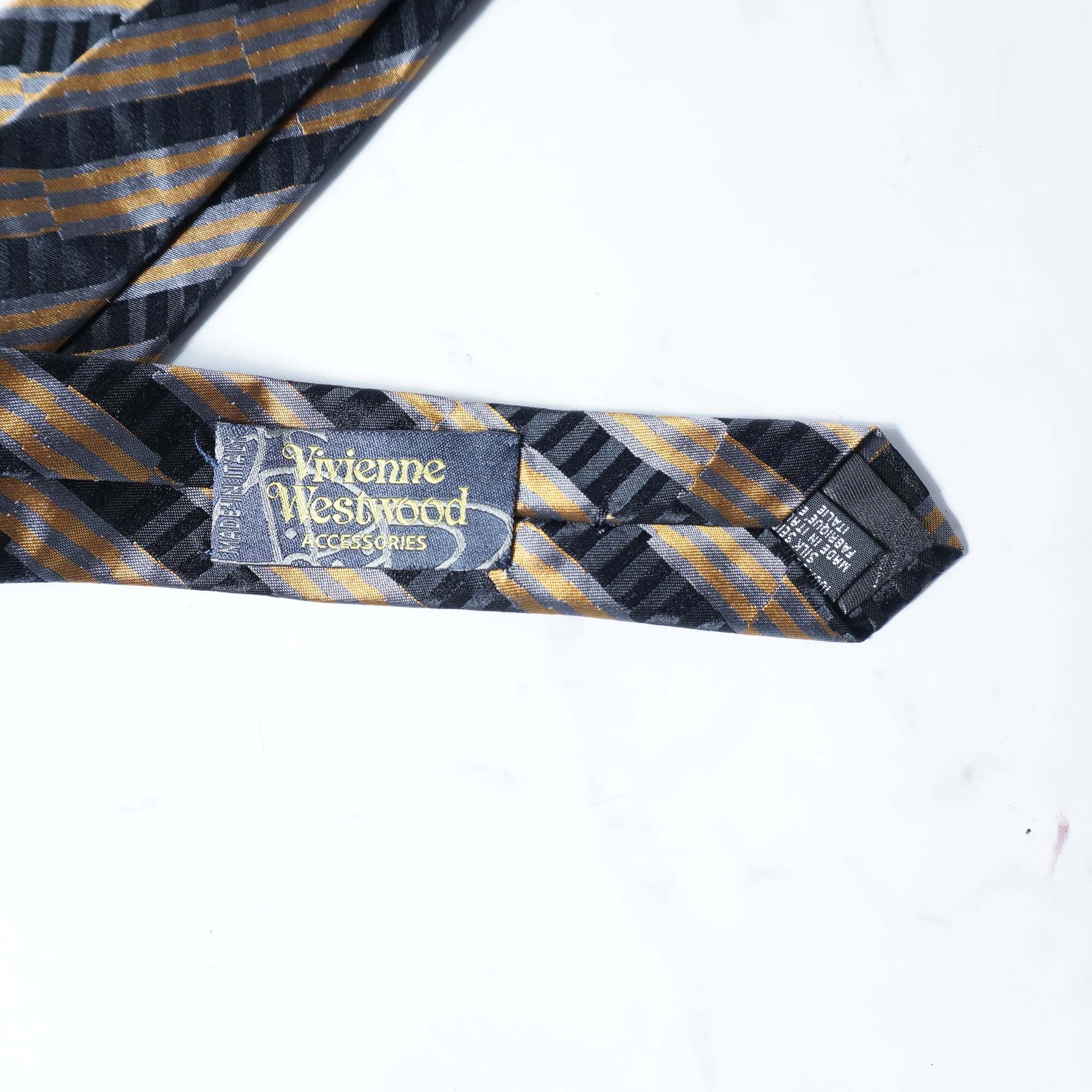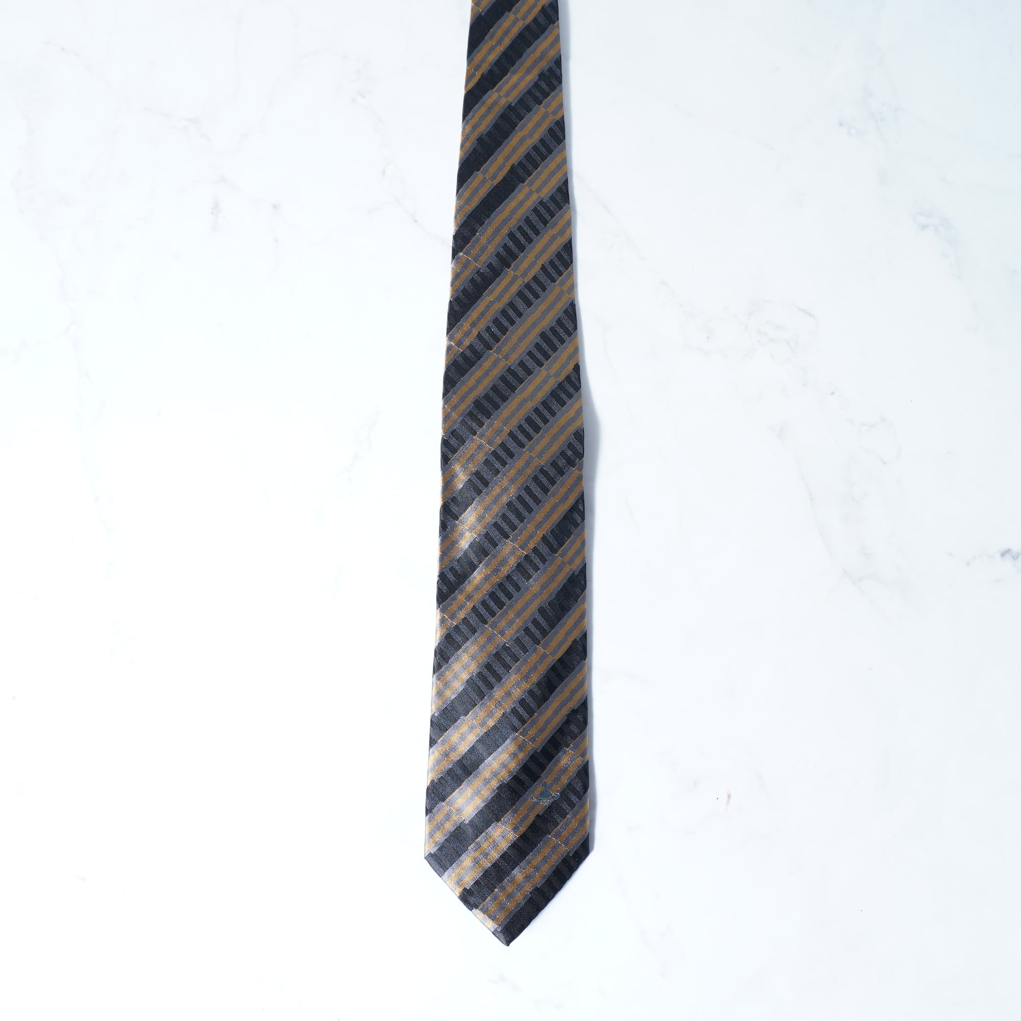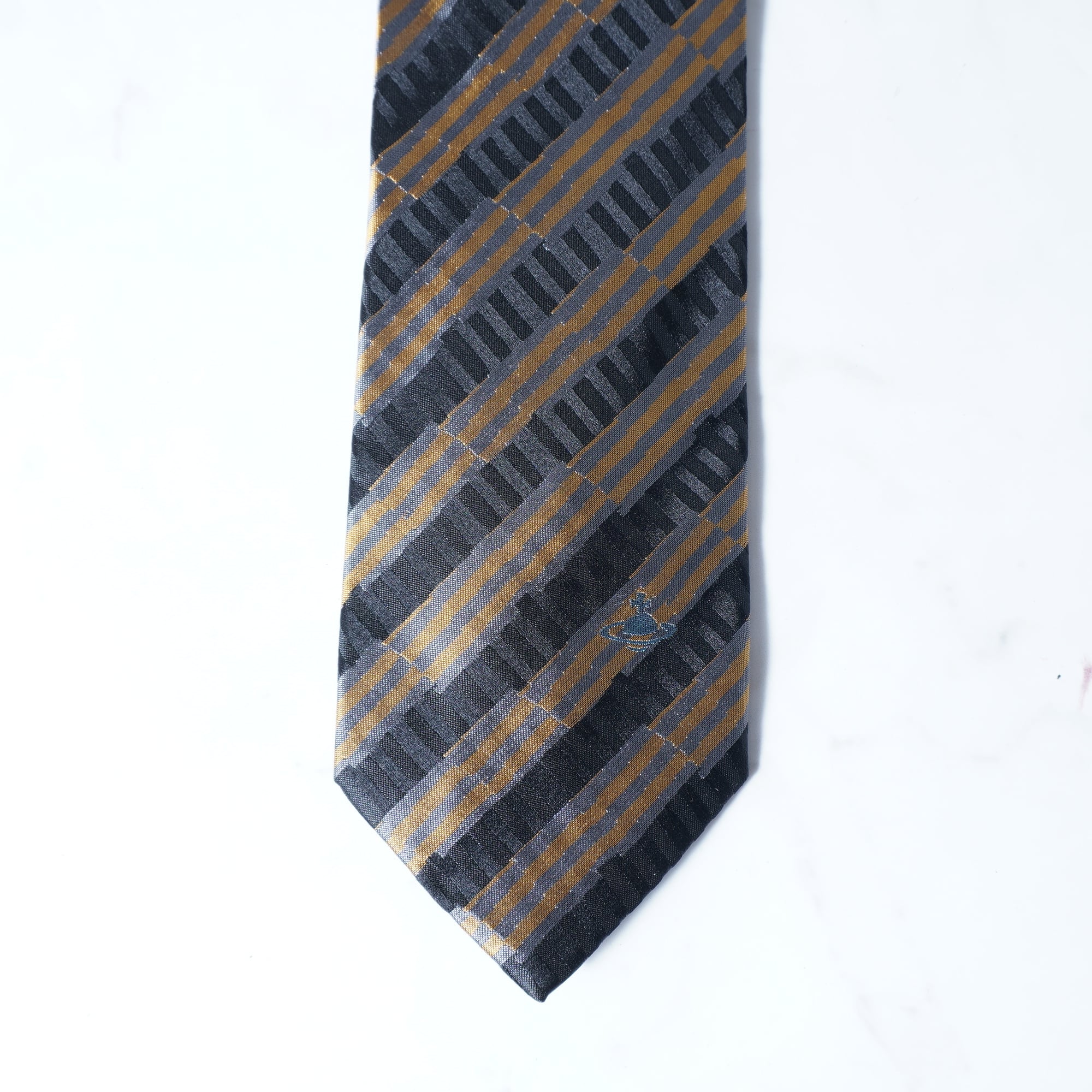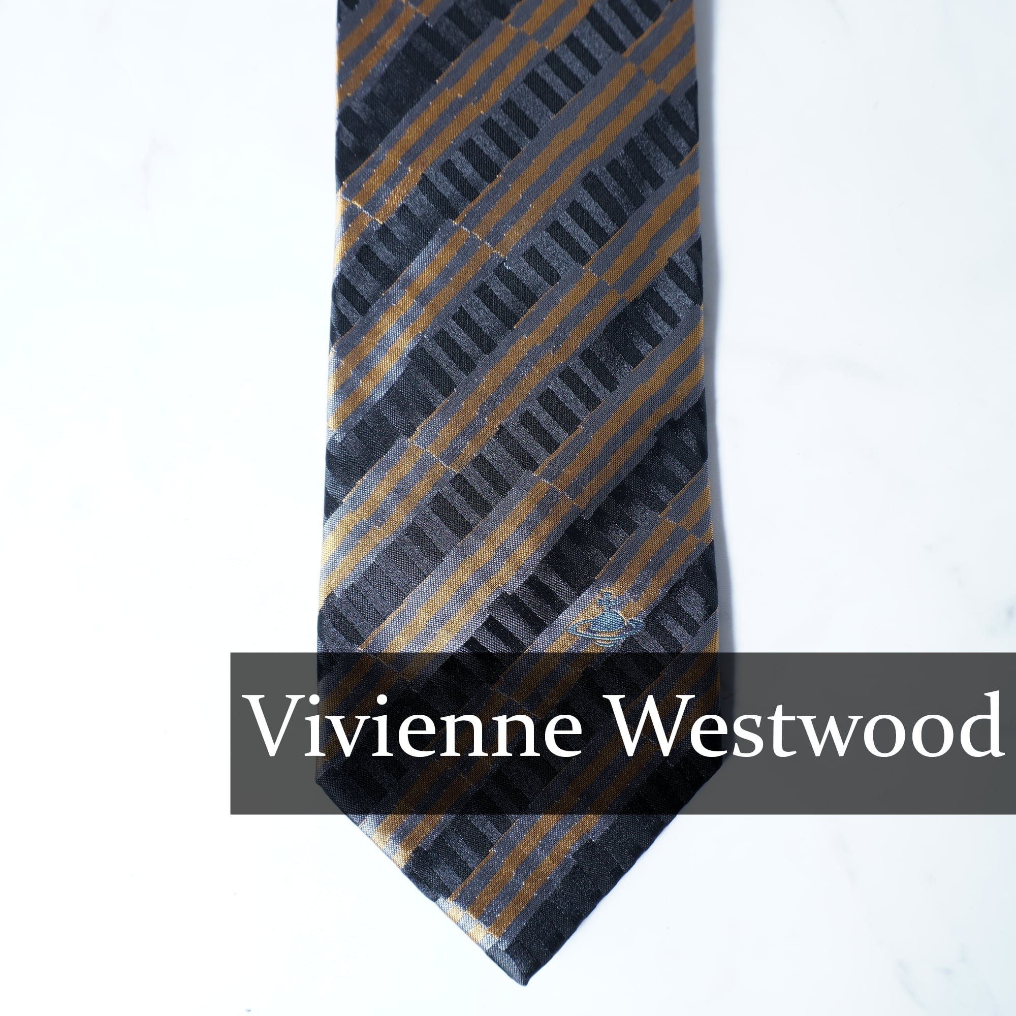 【Vivienne Westwood】ヴィヴィアンウエストウッド "オーブロゴ"SILK100%レジメンタルネクタイ navy&gold