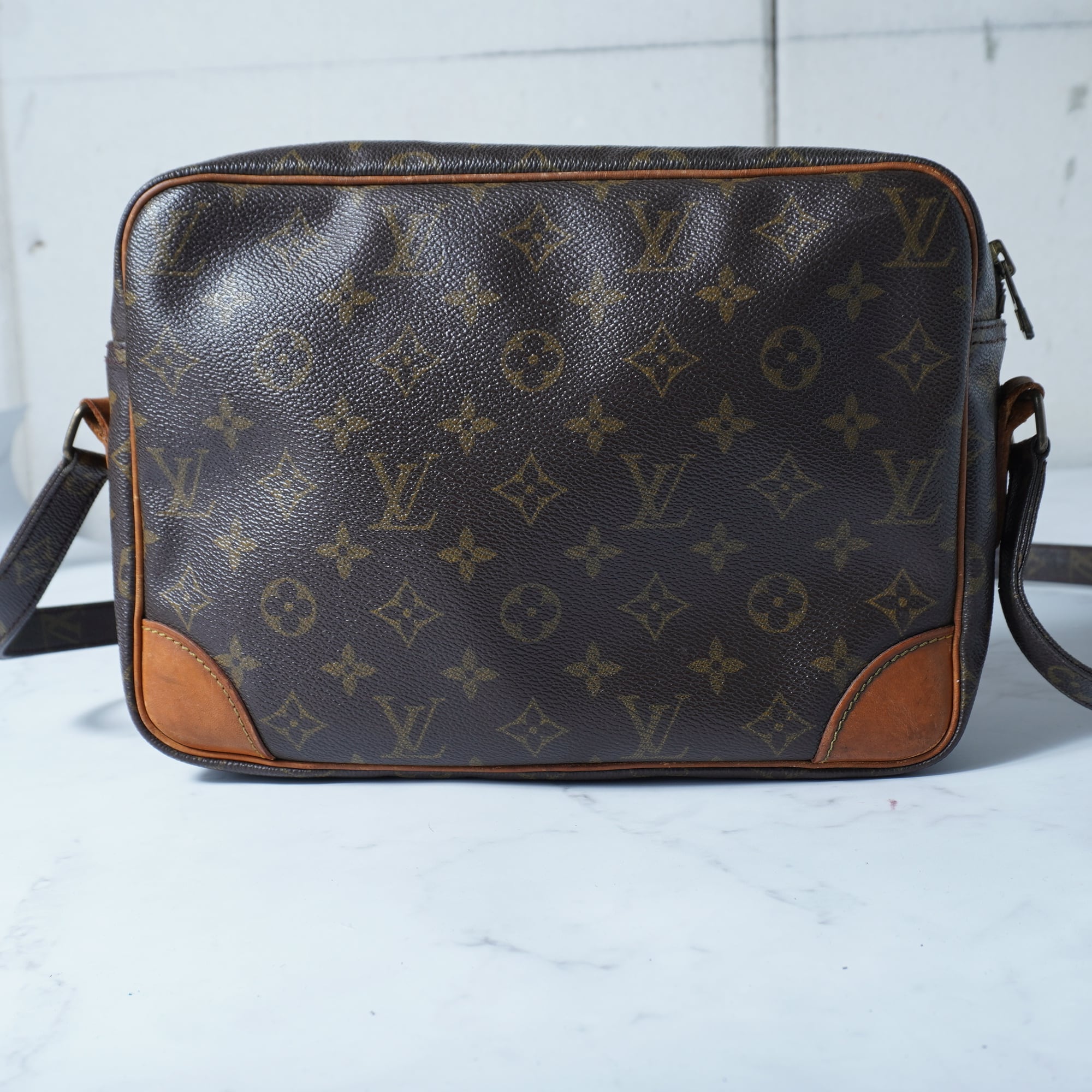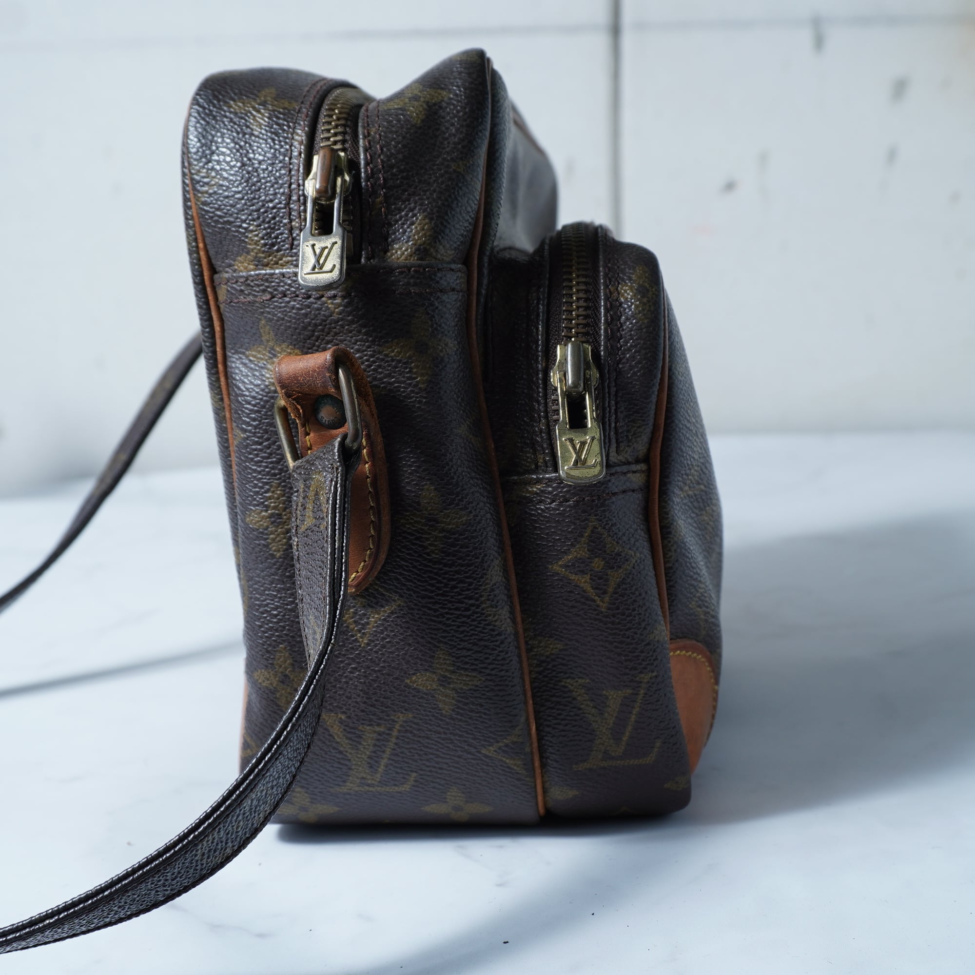 【LOUIS VUITTON】ルイヴィトン モノグラム2ポケット レザーショルダーバッグ brown