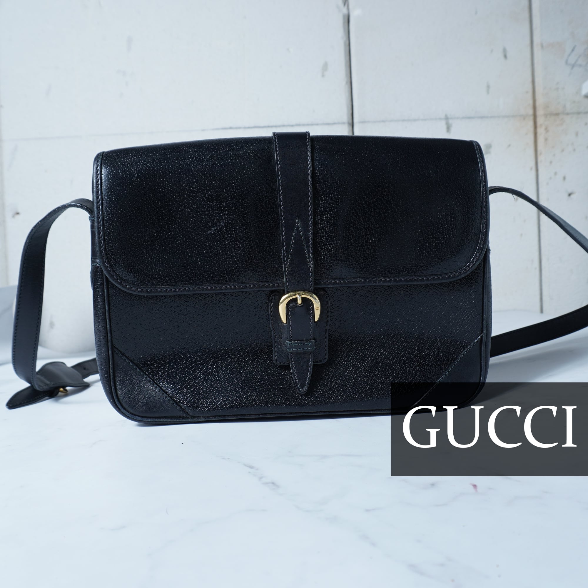 【GUCCI】グッチ オールレザーショルダーバッグ black