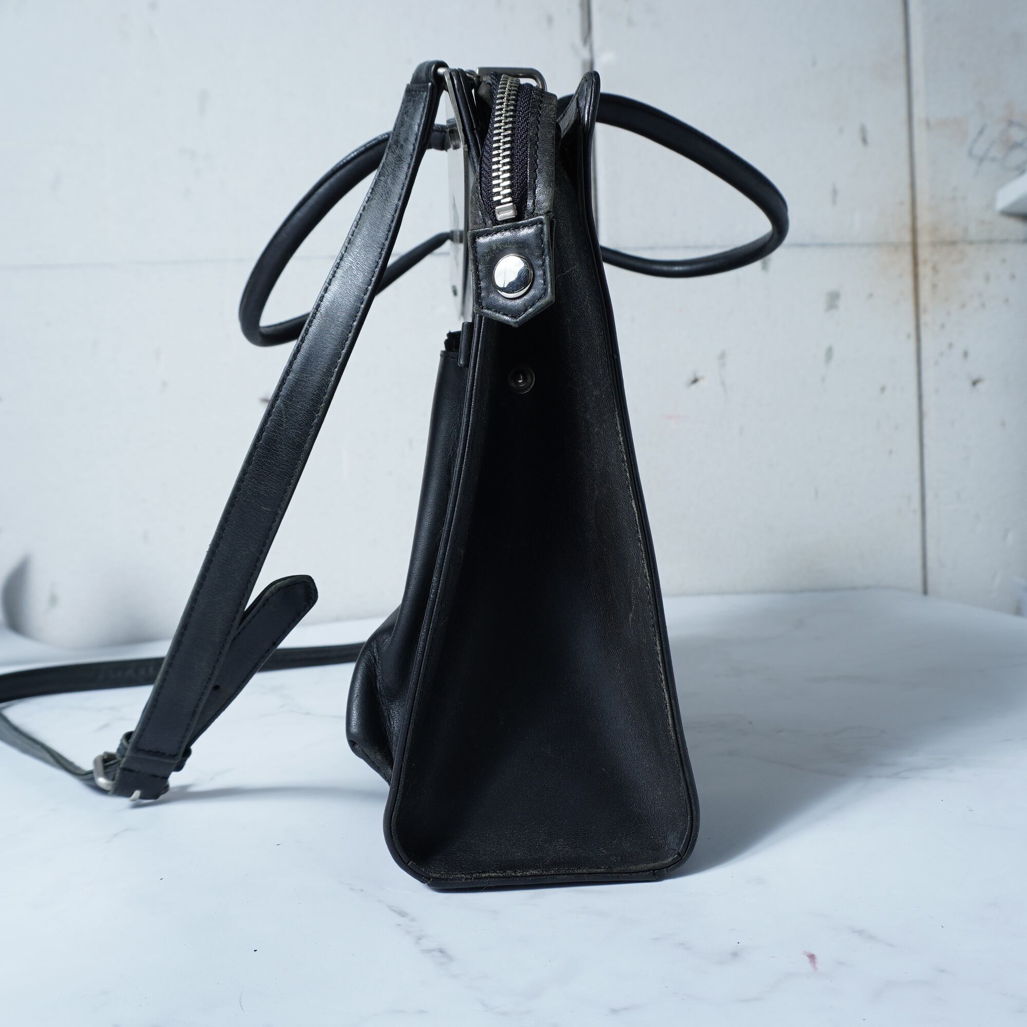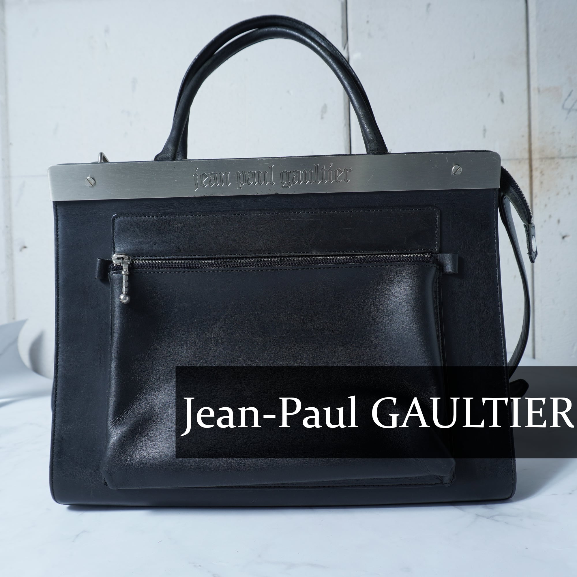 【Jean Paul GAULTIER】ジャンポールゴルチエ "ARCHIVE" メタルプレートロゴ2way レザーショルダーバッグ black