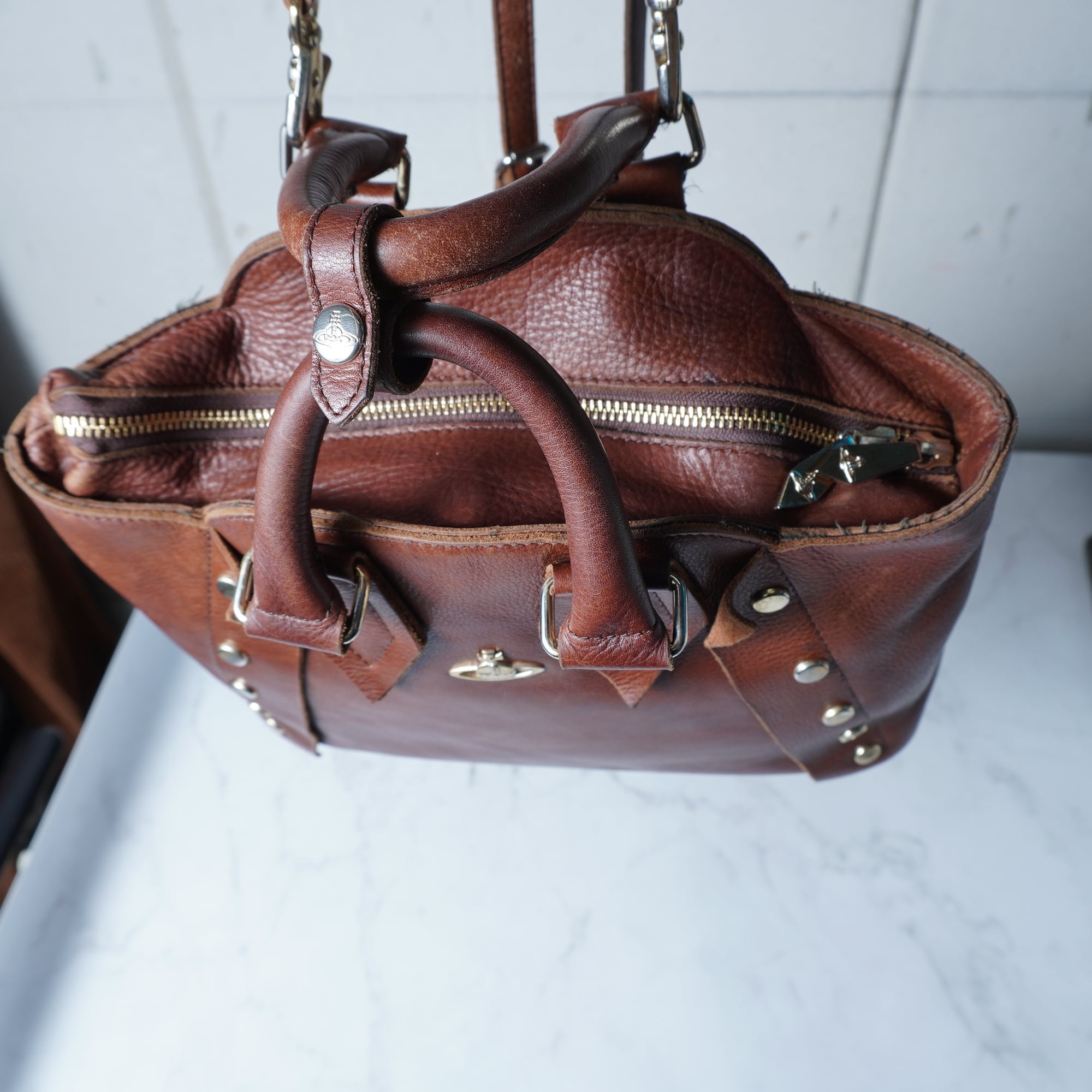 【Vivienne Westwood】ヴィヴィアンウエストウッド オーブロゴヌーロックリアルレザー3WAYバックパック brown