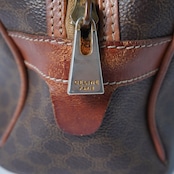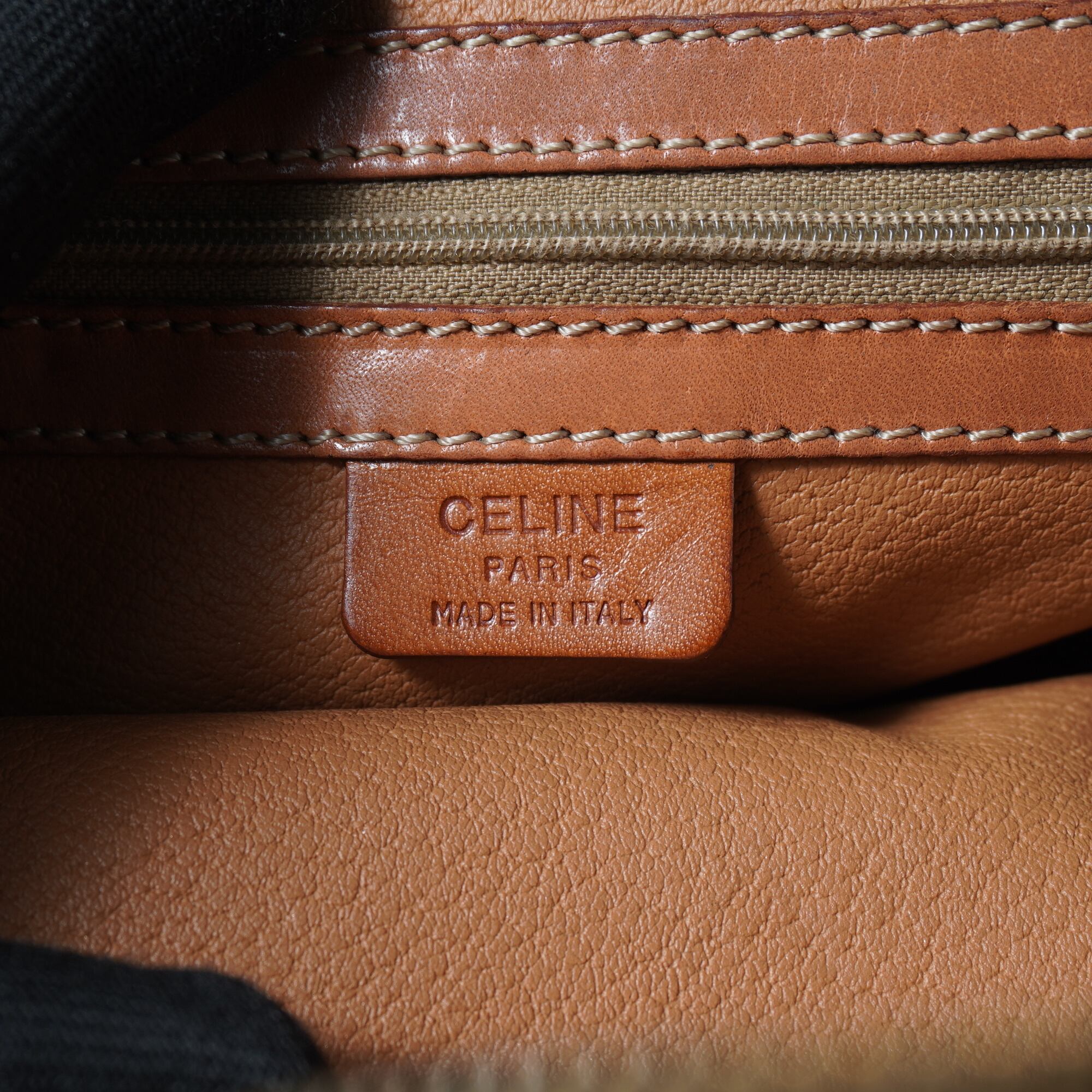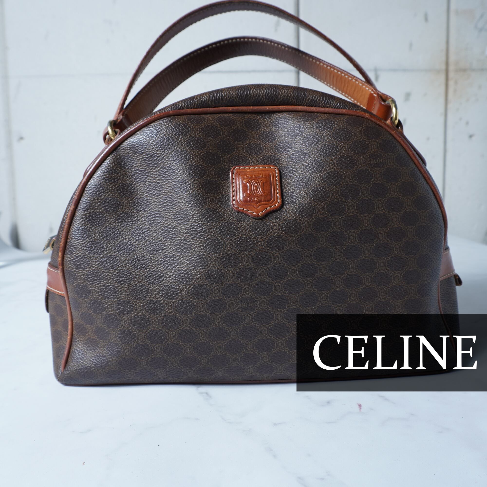 【CELINE】セリーヌ トリオンフロゴ マカダム柄ハーフムーンレザーハンドバッグ brown