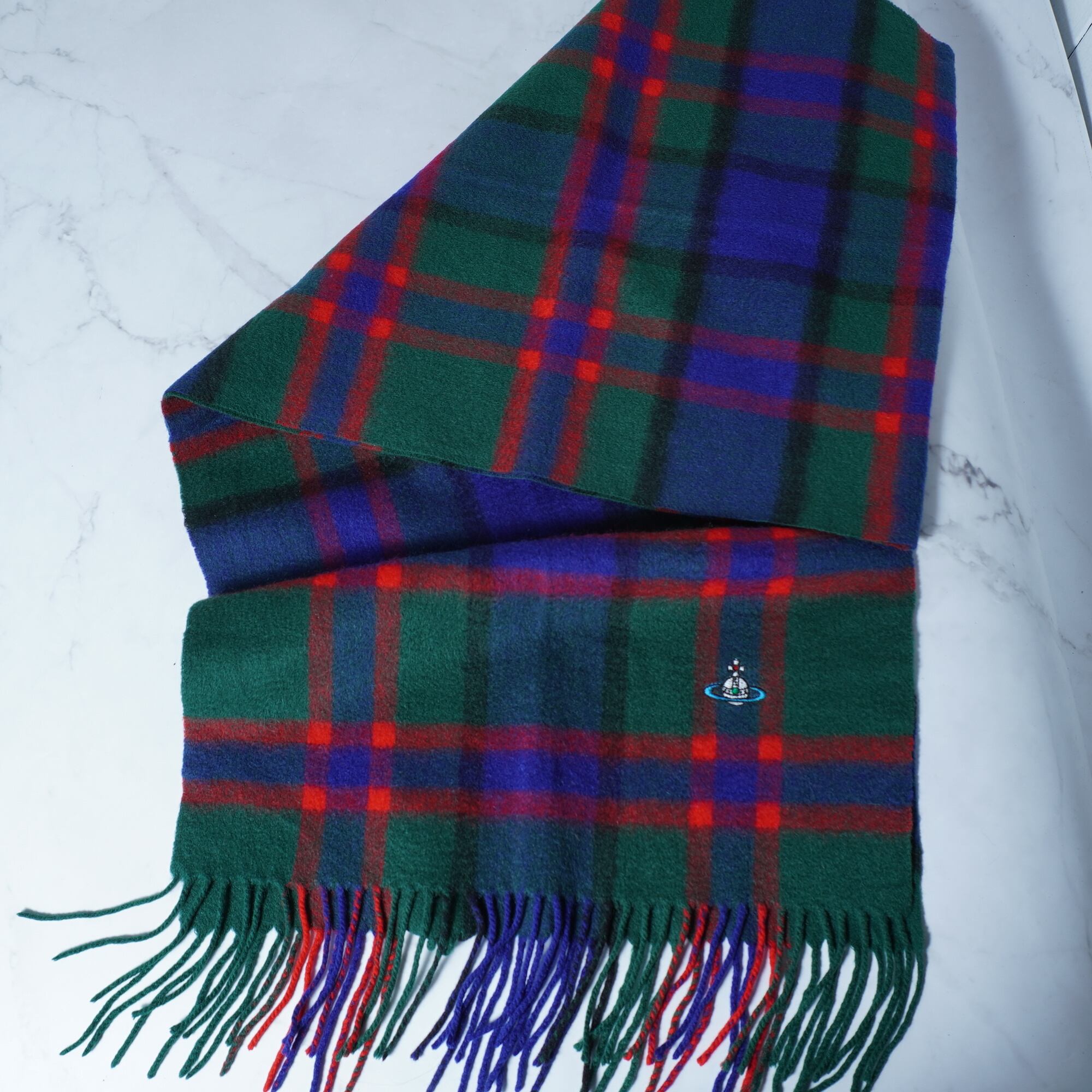 【Vivienne Westwood】ヴィヴィアンウエストウッド オーブロゴ刺繍 チェック柄カシミアマフラー red&green&blue