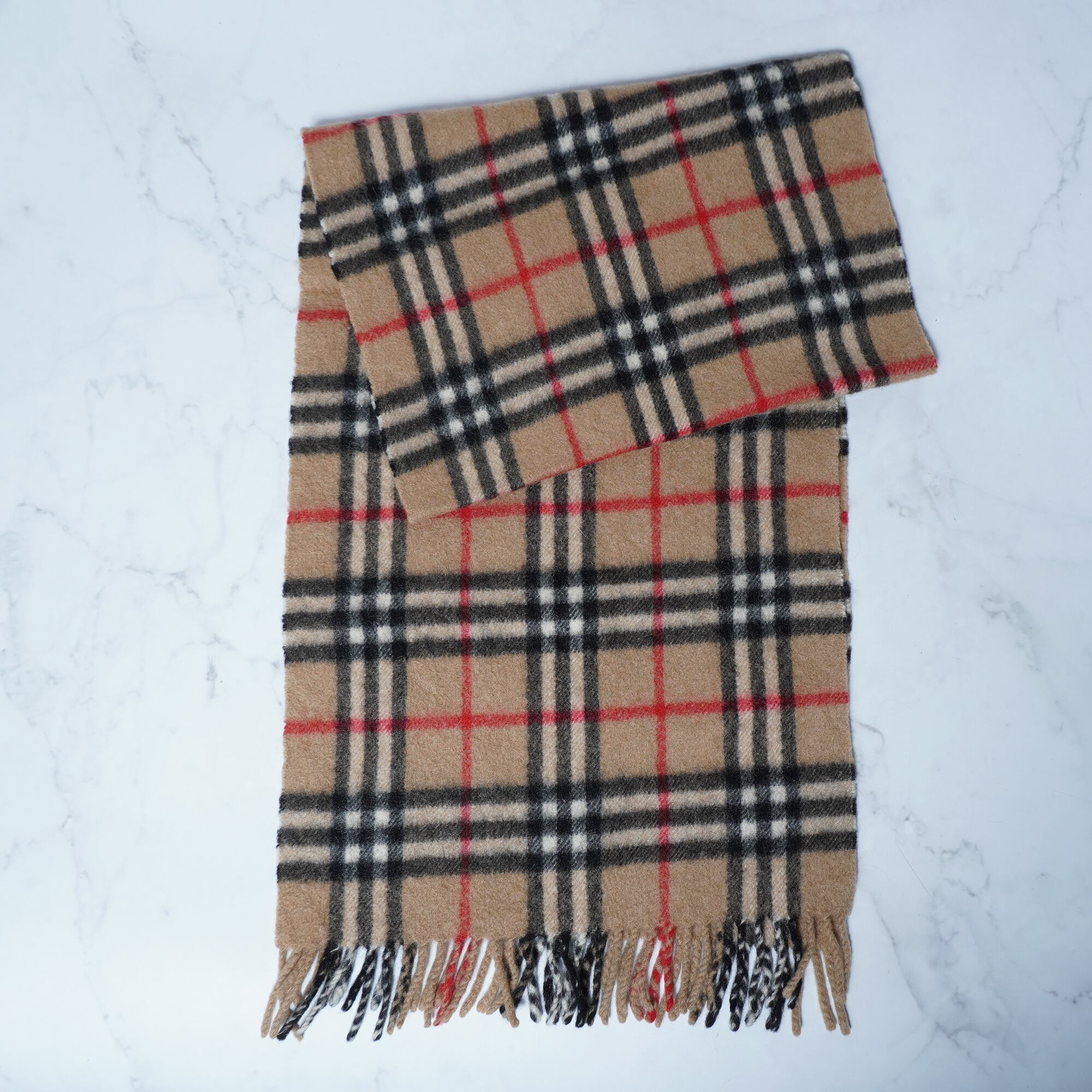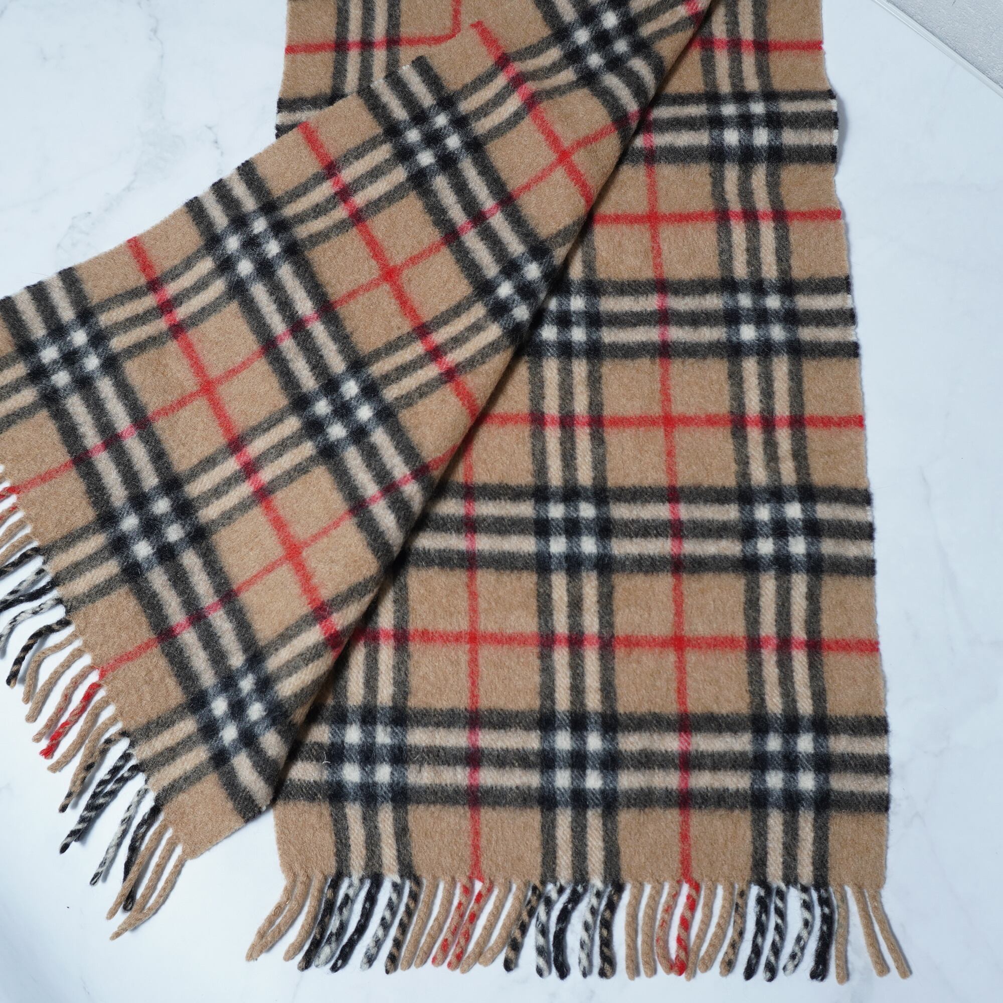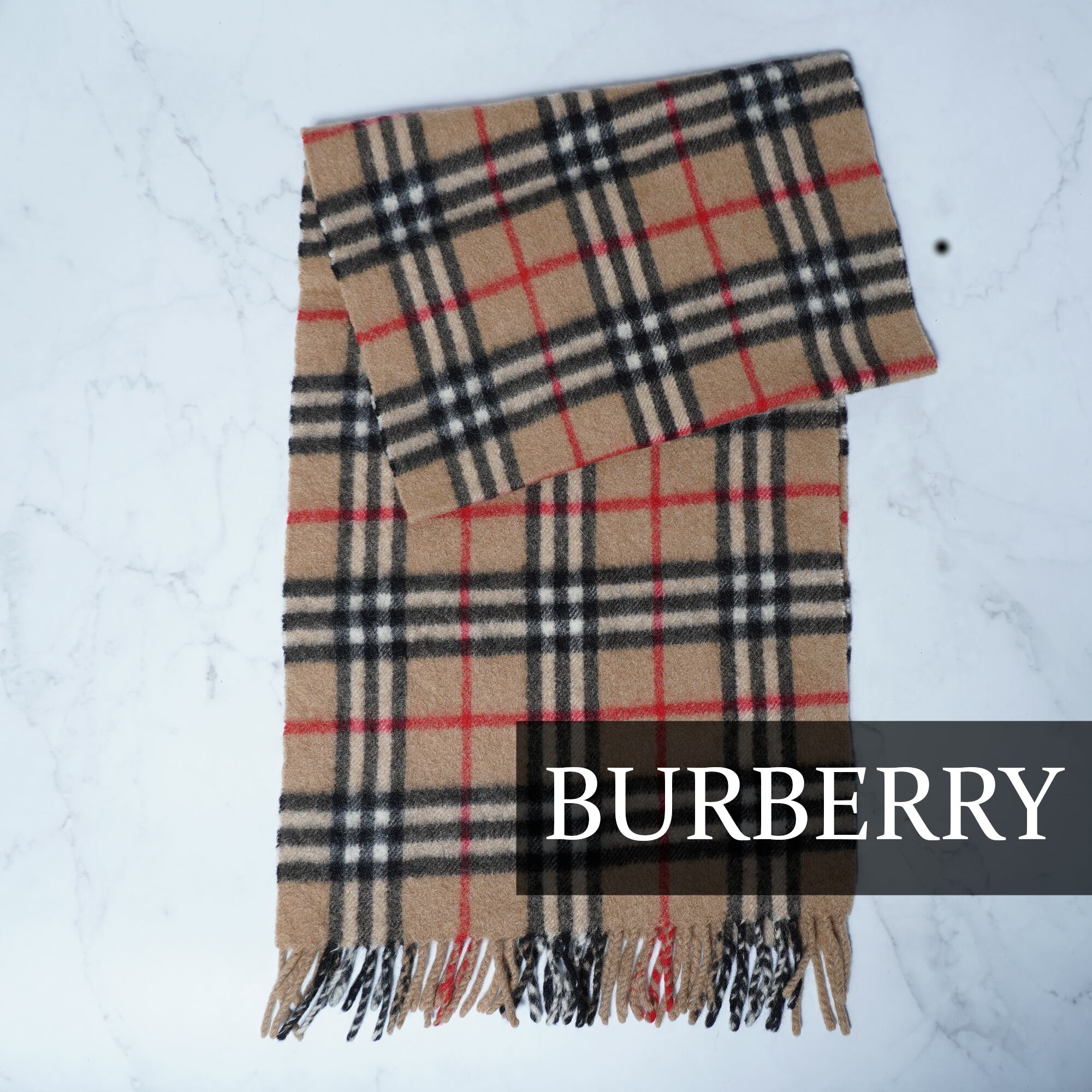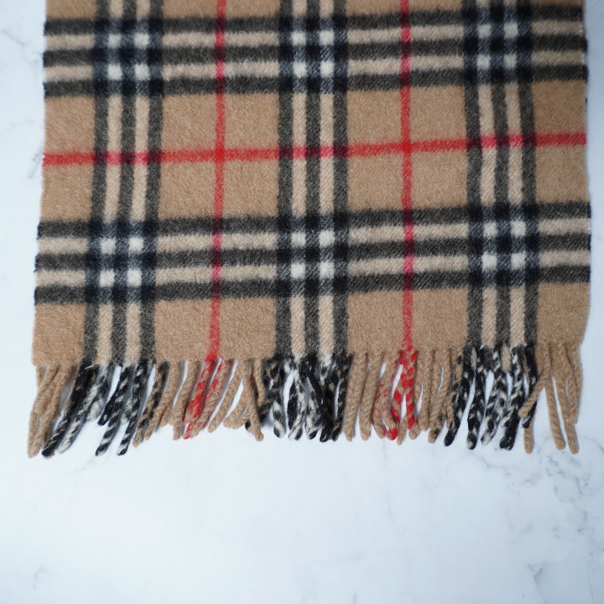 【BURBERRY】バーバリー ノヴァチェックフリンジマフラー カシミヤ100% beige