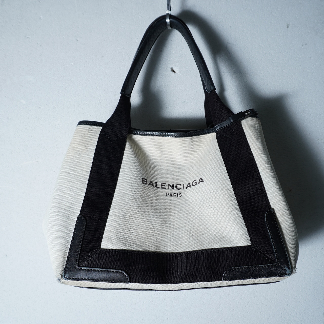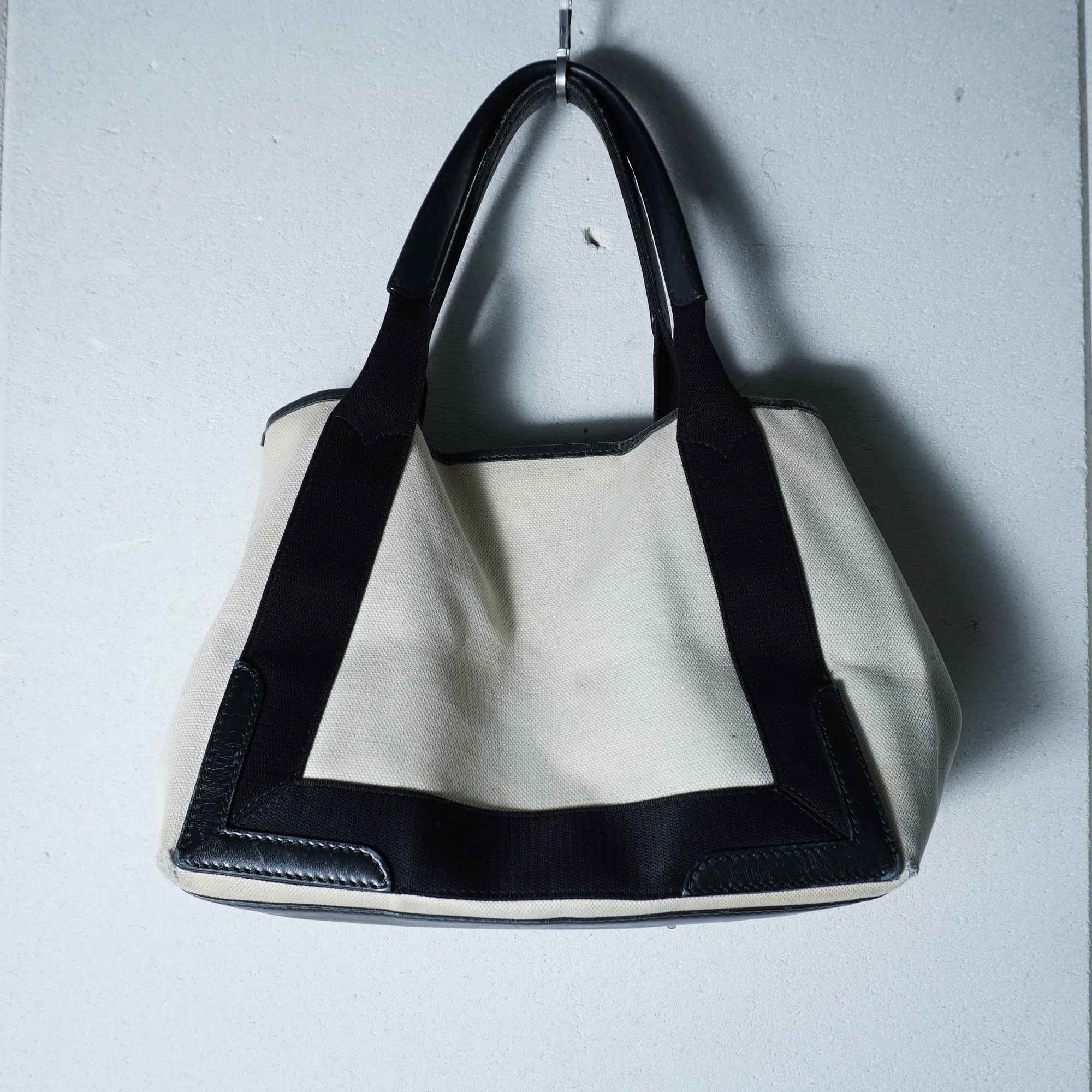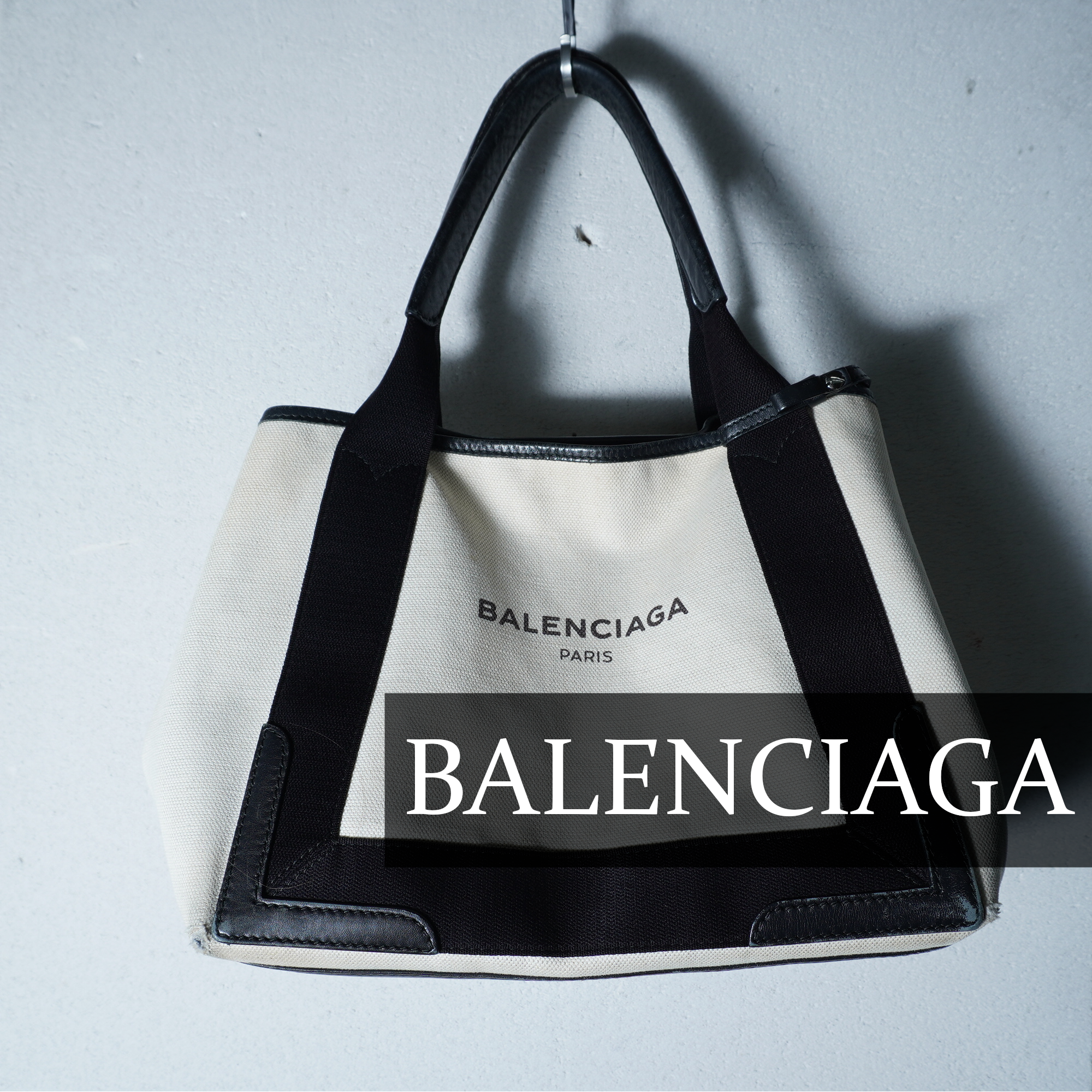 【BALENCIAGA】バレンシアガ ”ロゴ入” NAVY CABAS トートバッグ black&beige