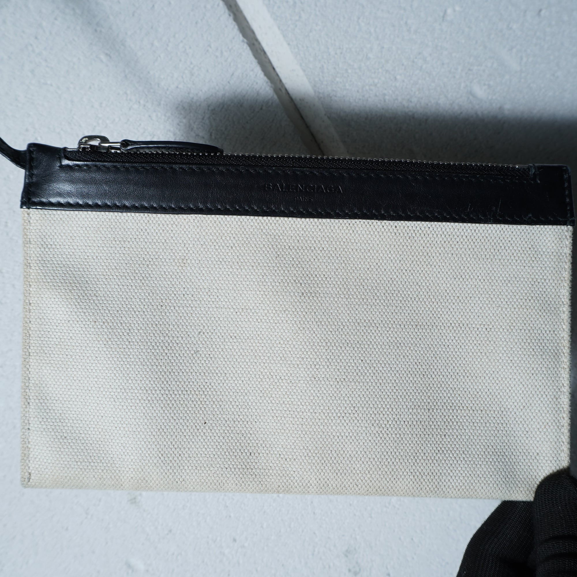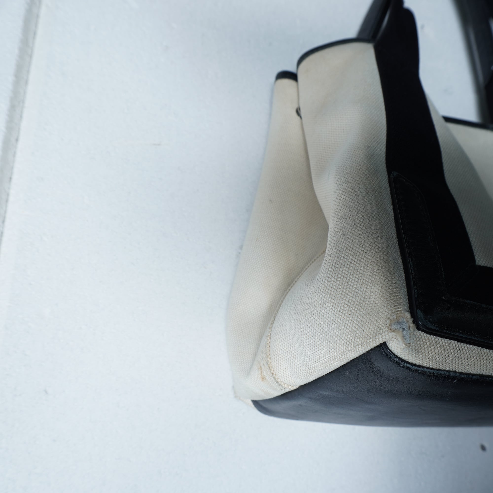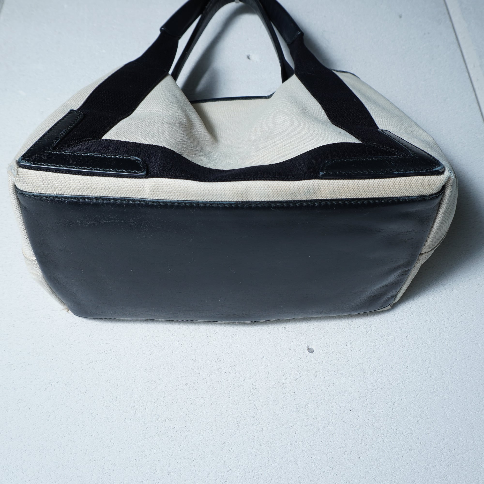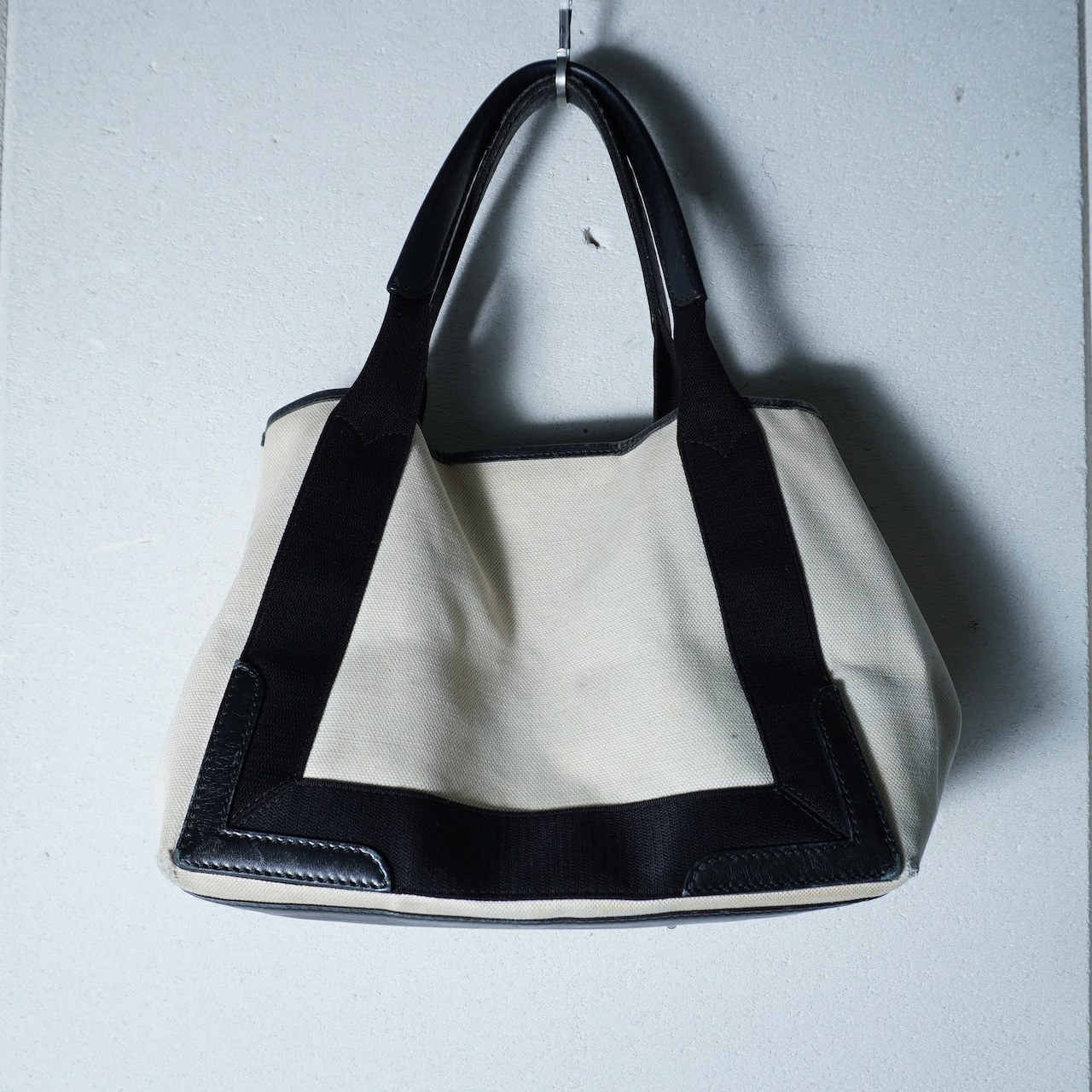 【BALENCIAGA】バレンシアガ ”ロゴ入” NAVY CABAS トートバッグ black&beige