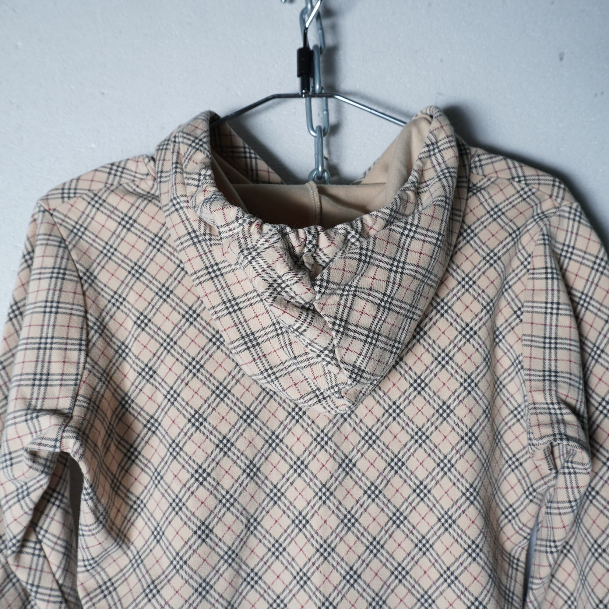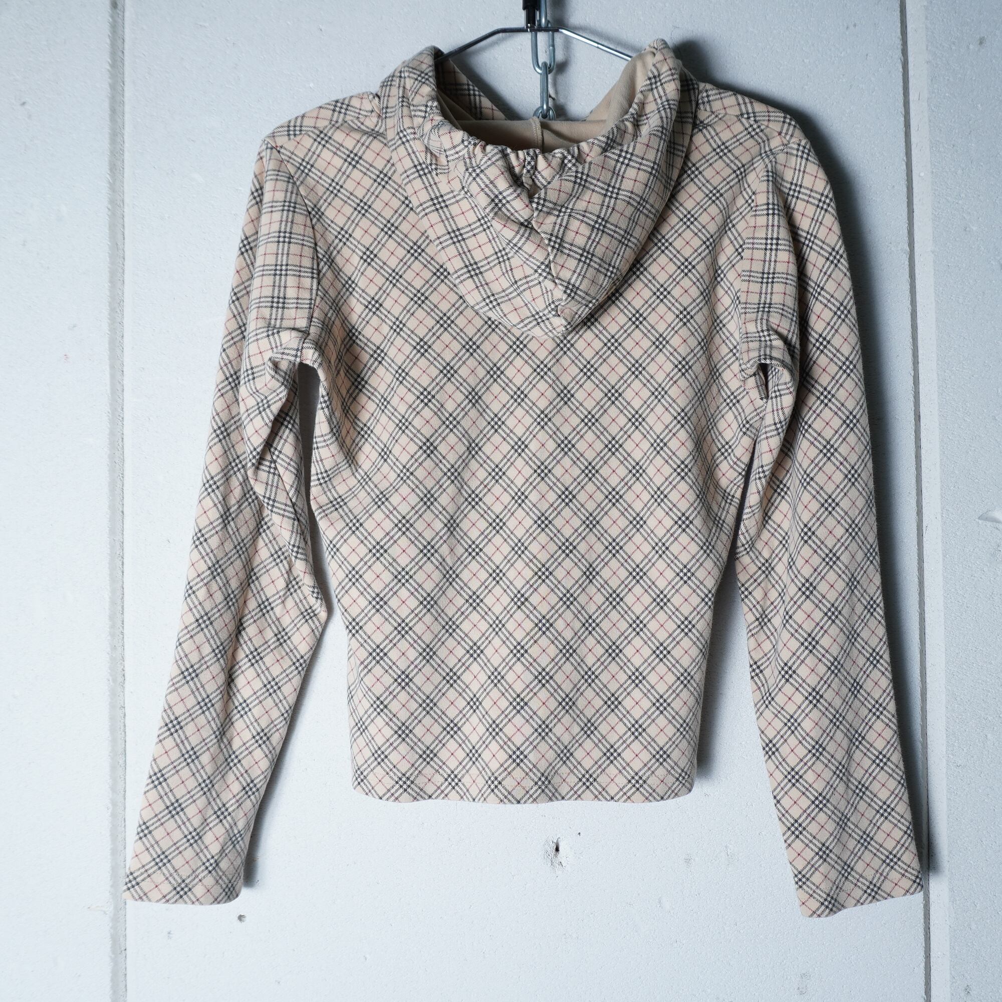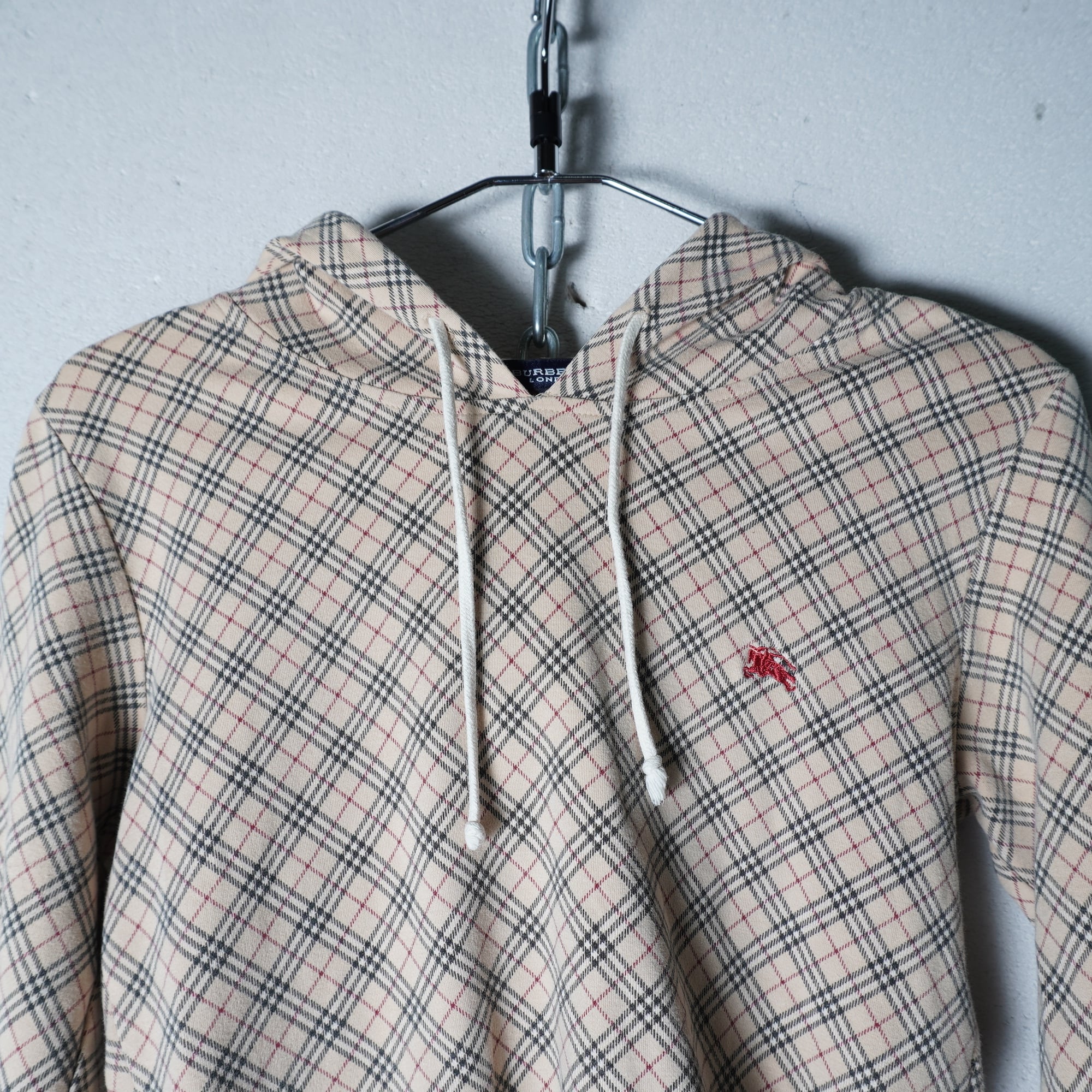 【BURBERRY】バーバリー ホースロゴ刺繍 チェック柄パーカー beige