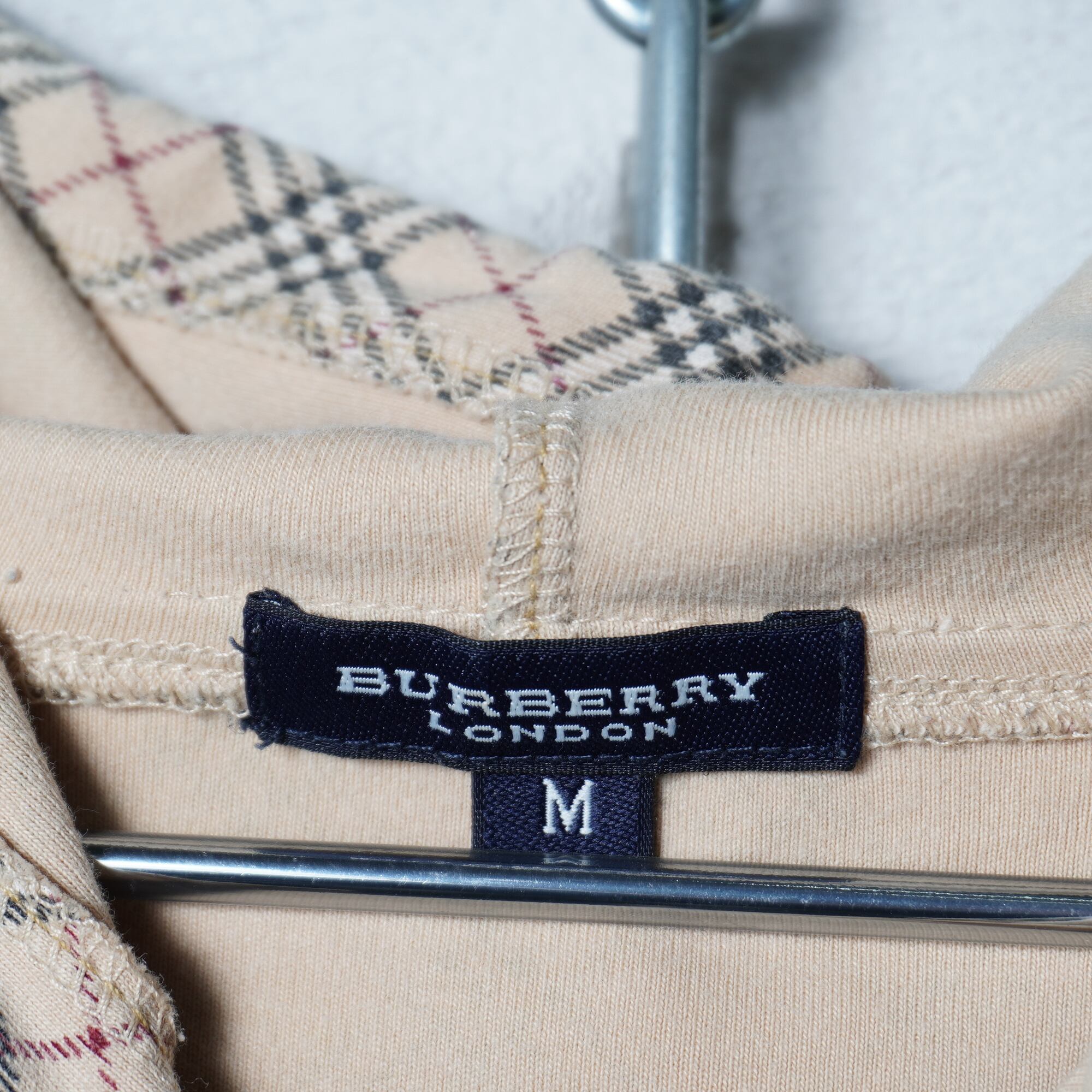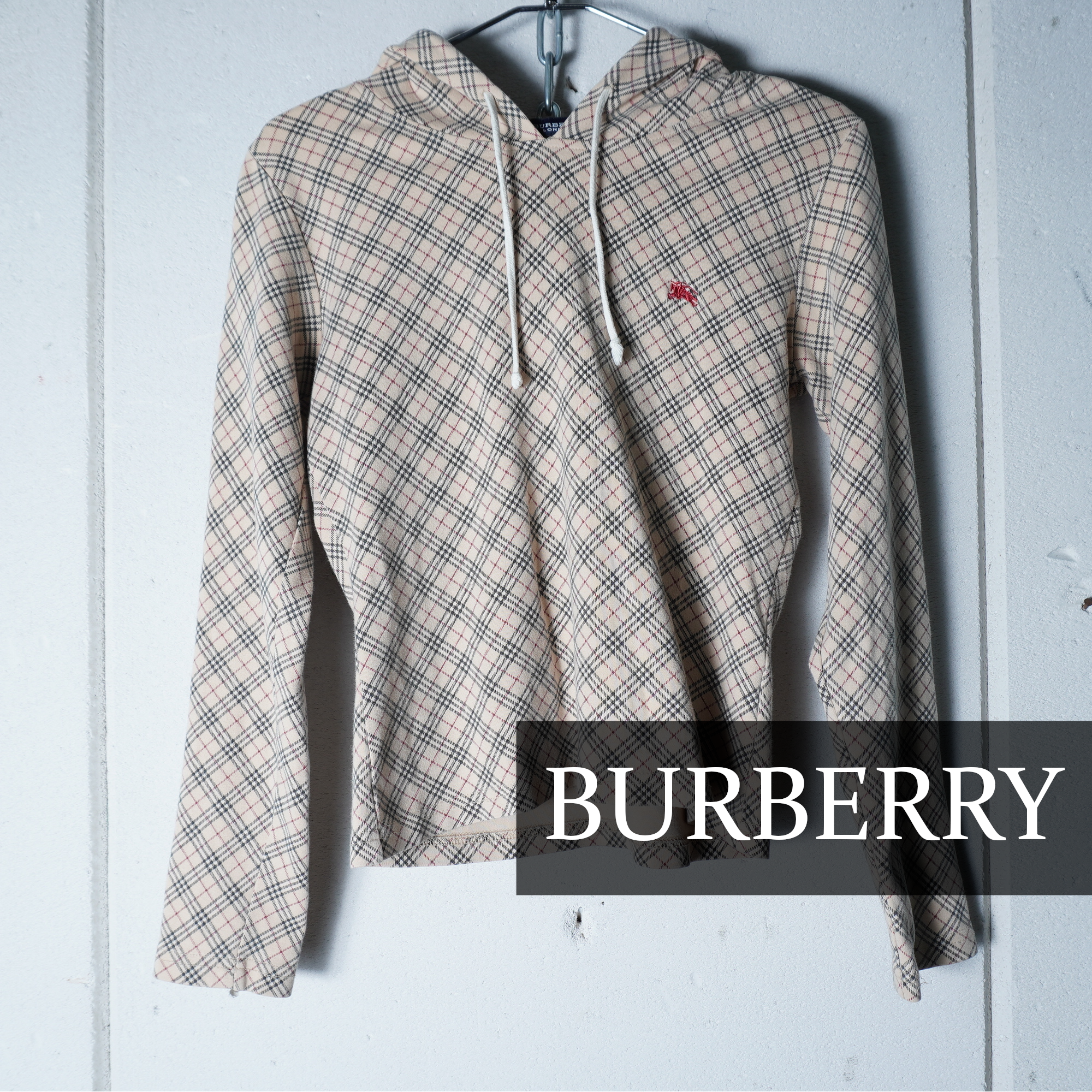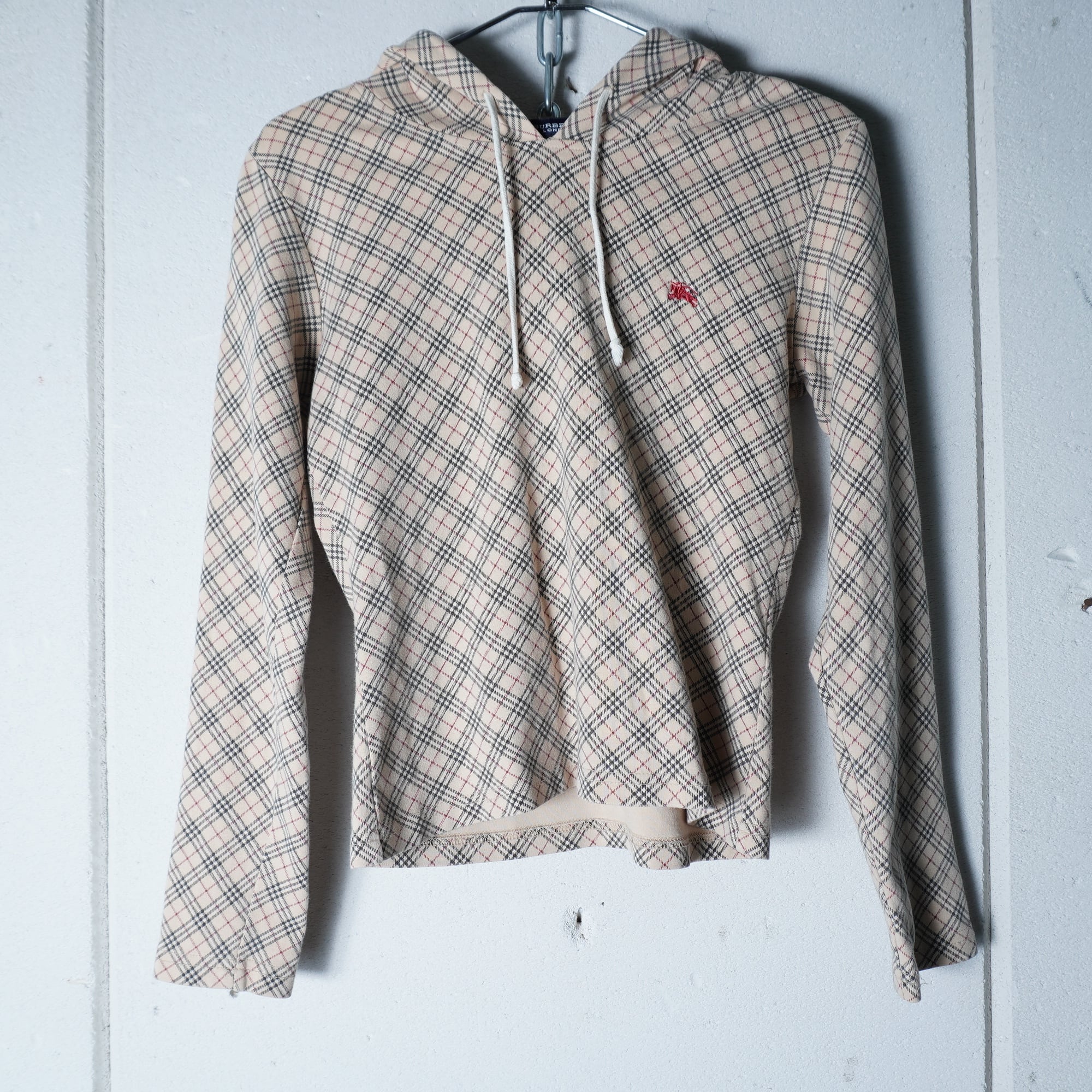 【BURBERRY】バーバリー ホースロゴ刺繍 チェック柄パーカー beige