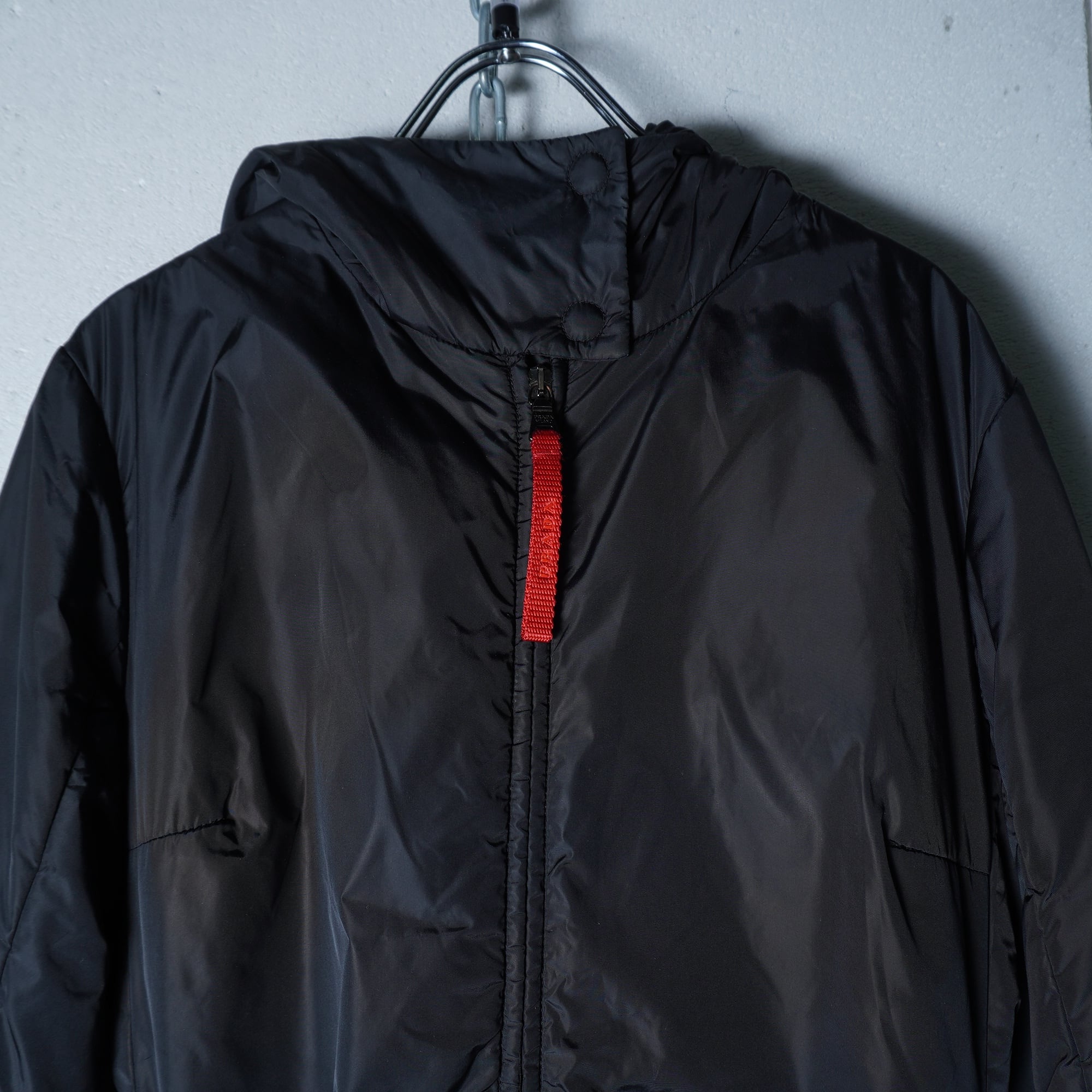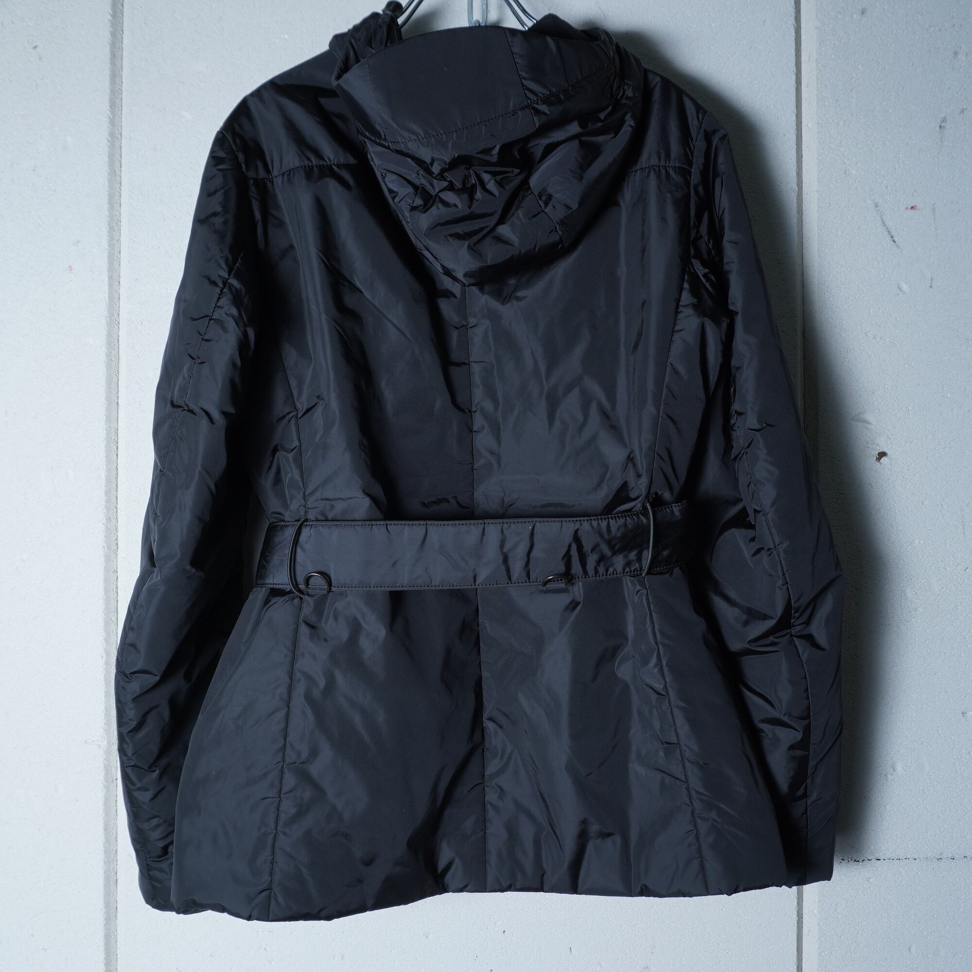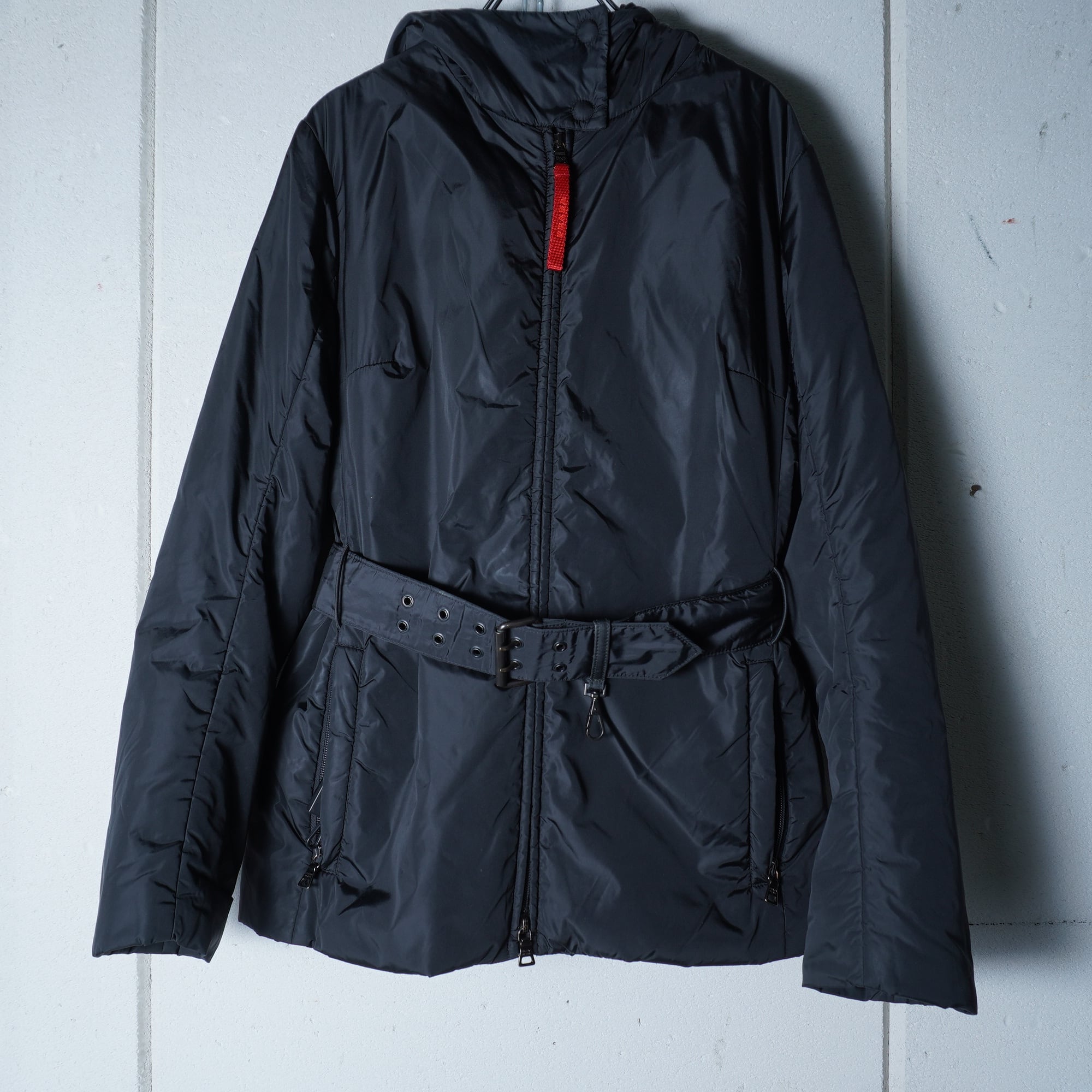 【PRADA】プラダ ロゴジップ・ベルト付きフーディーナイロンジャケット black