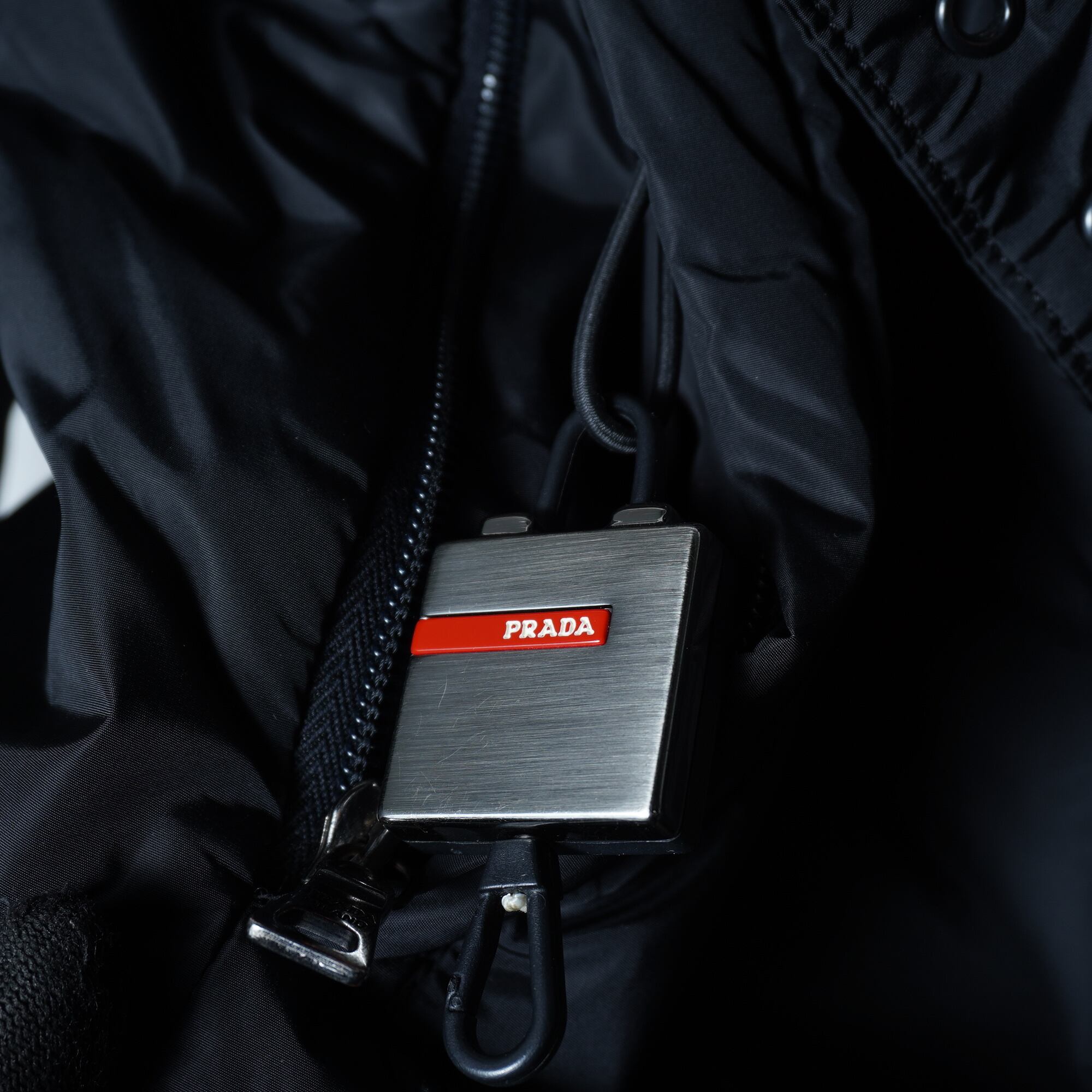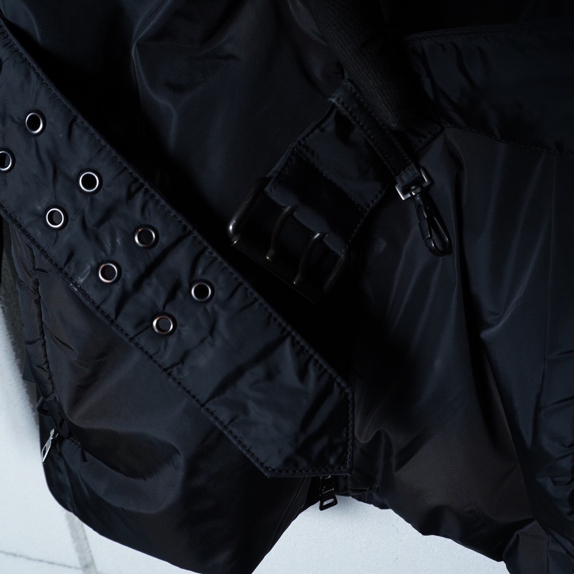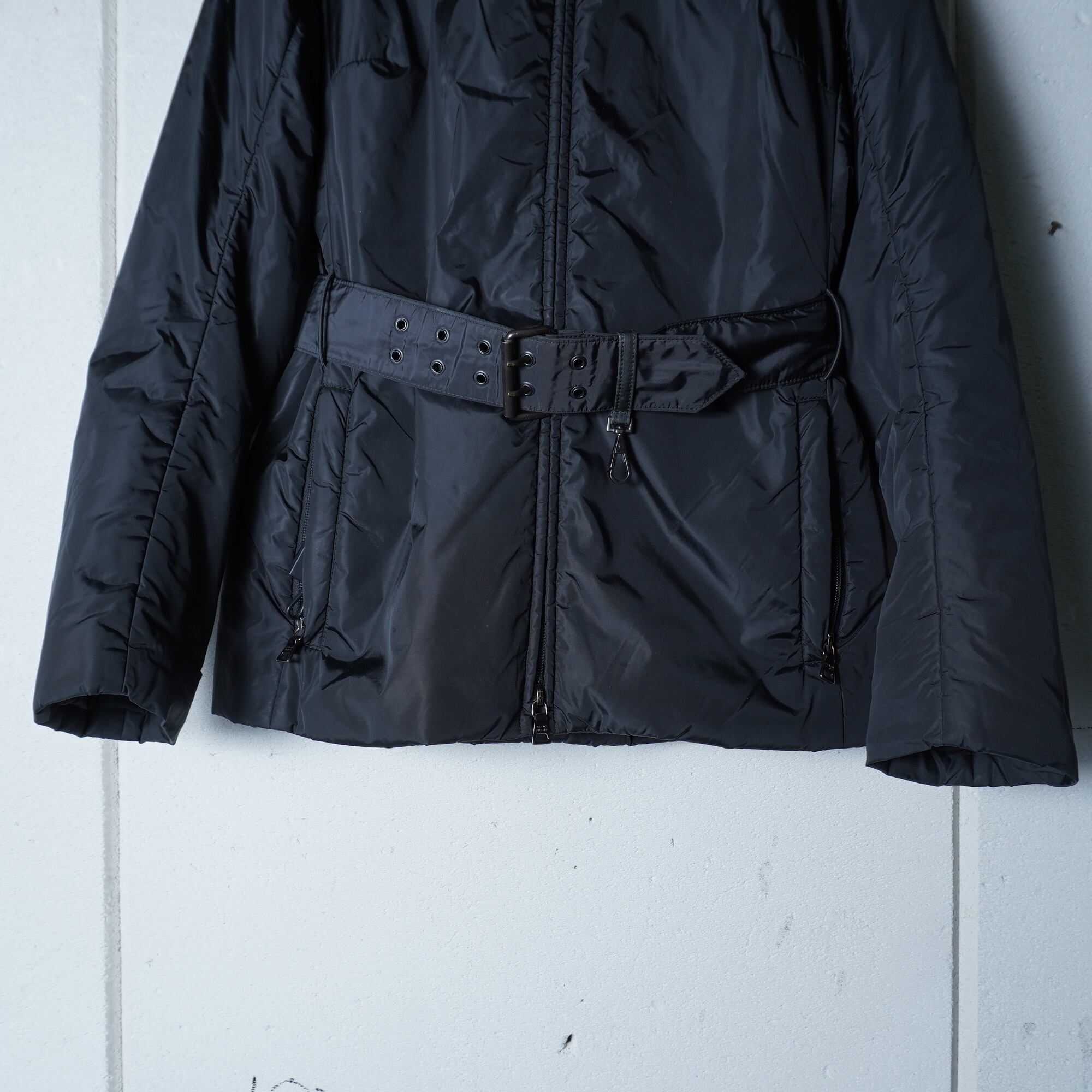 【PRADA】プラダ ロゴジップ・ベルト付きフーディーナイロンジャケット black
