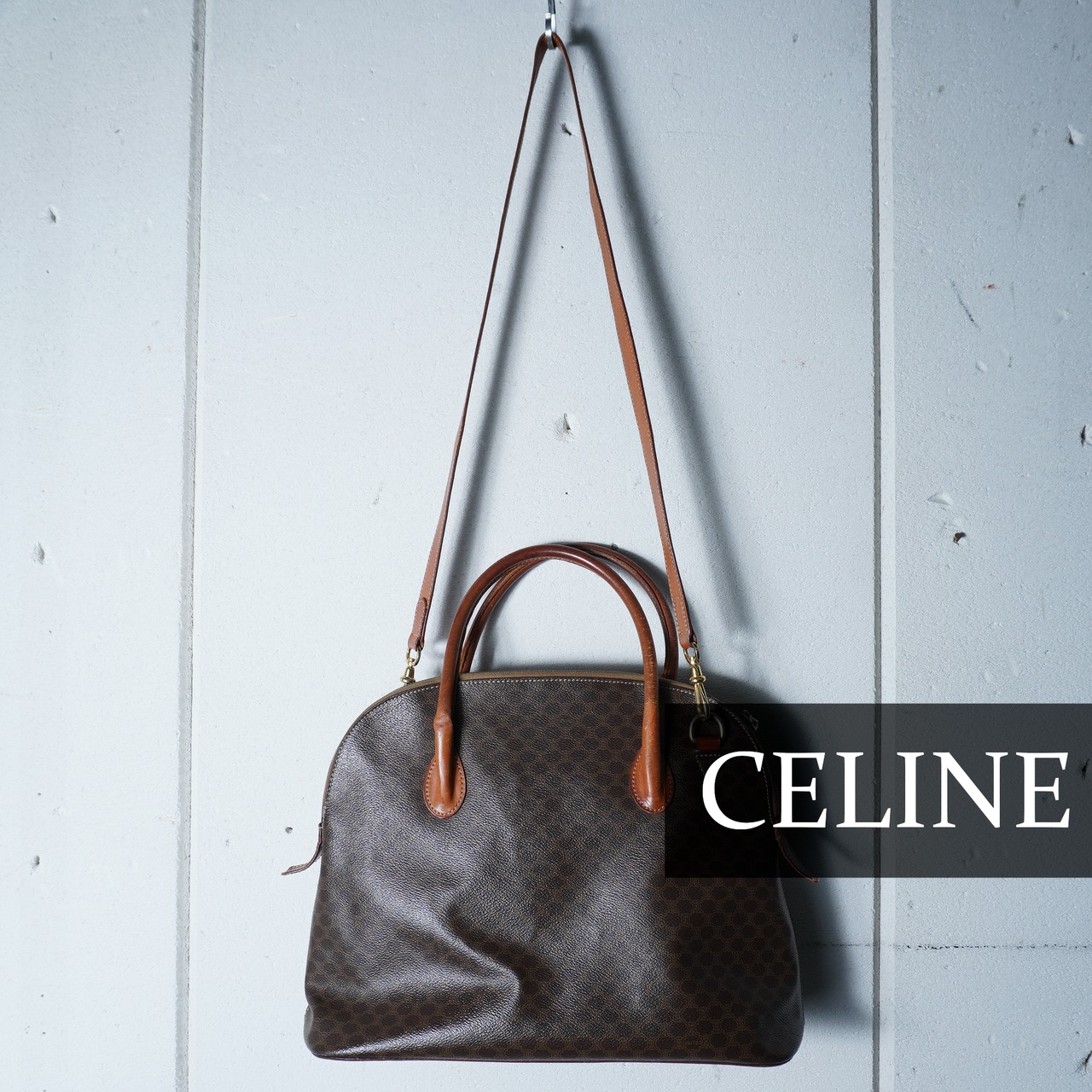 【CELINE】セリーヌ マカダム柄2WAYレザーショルダーバンドバッグ brown