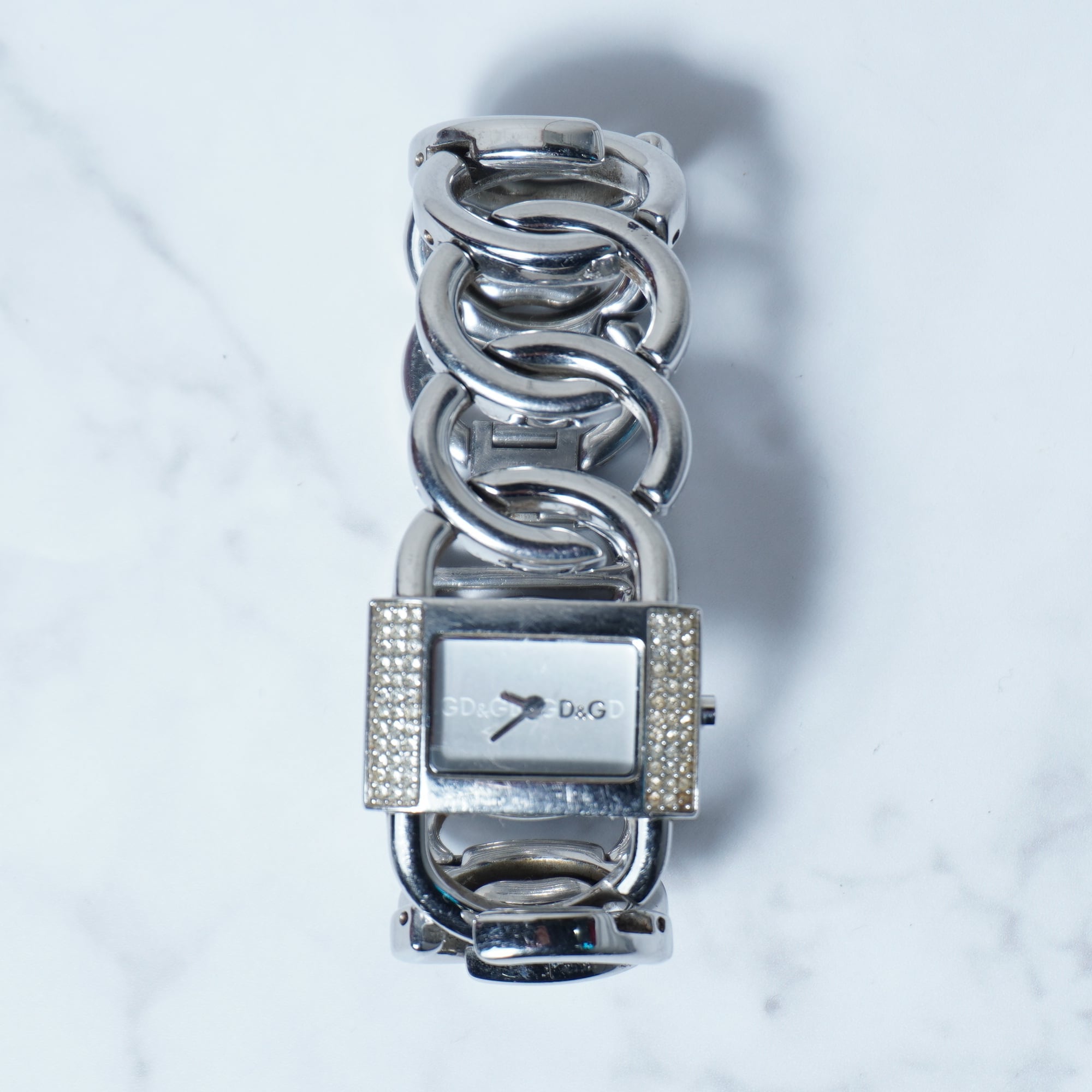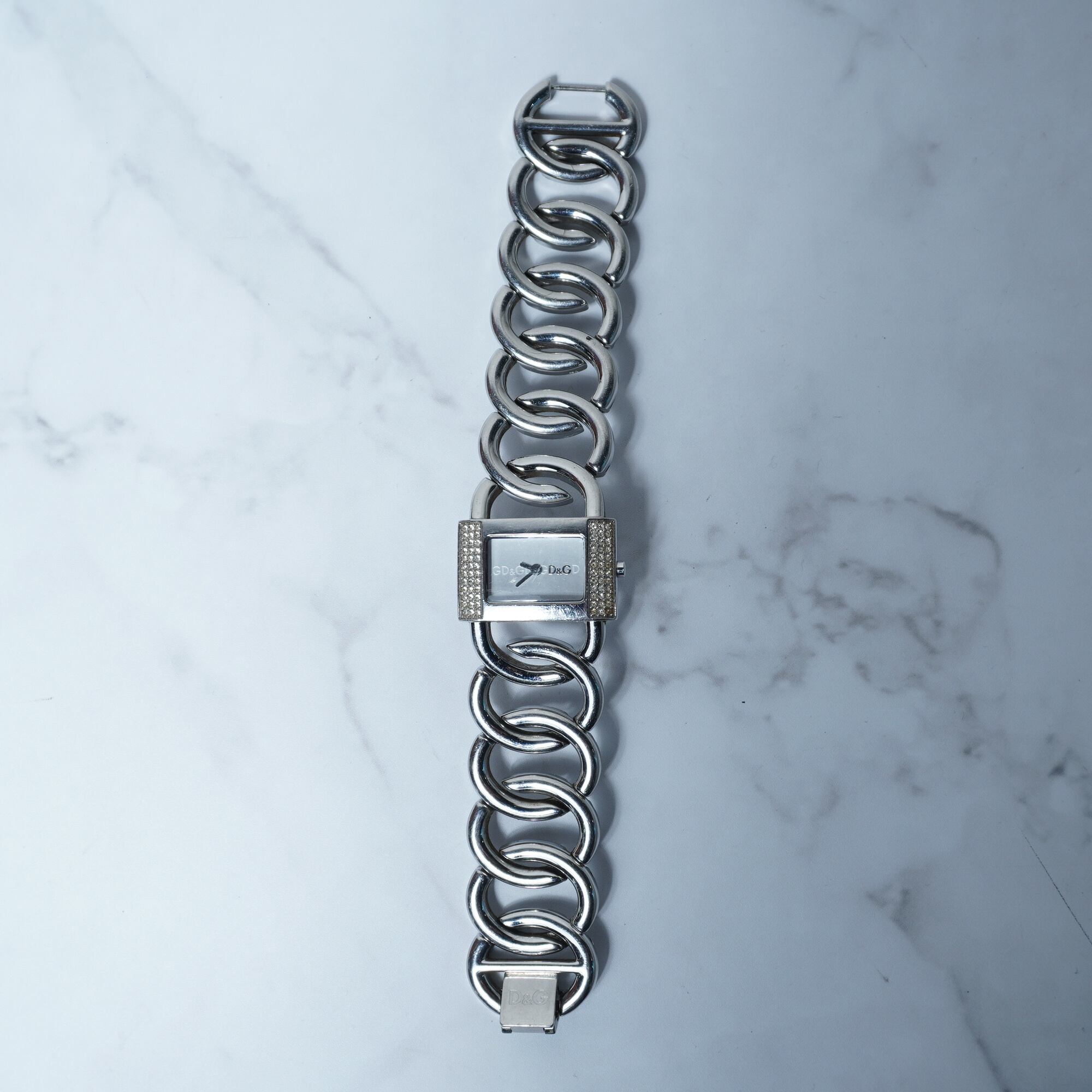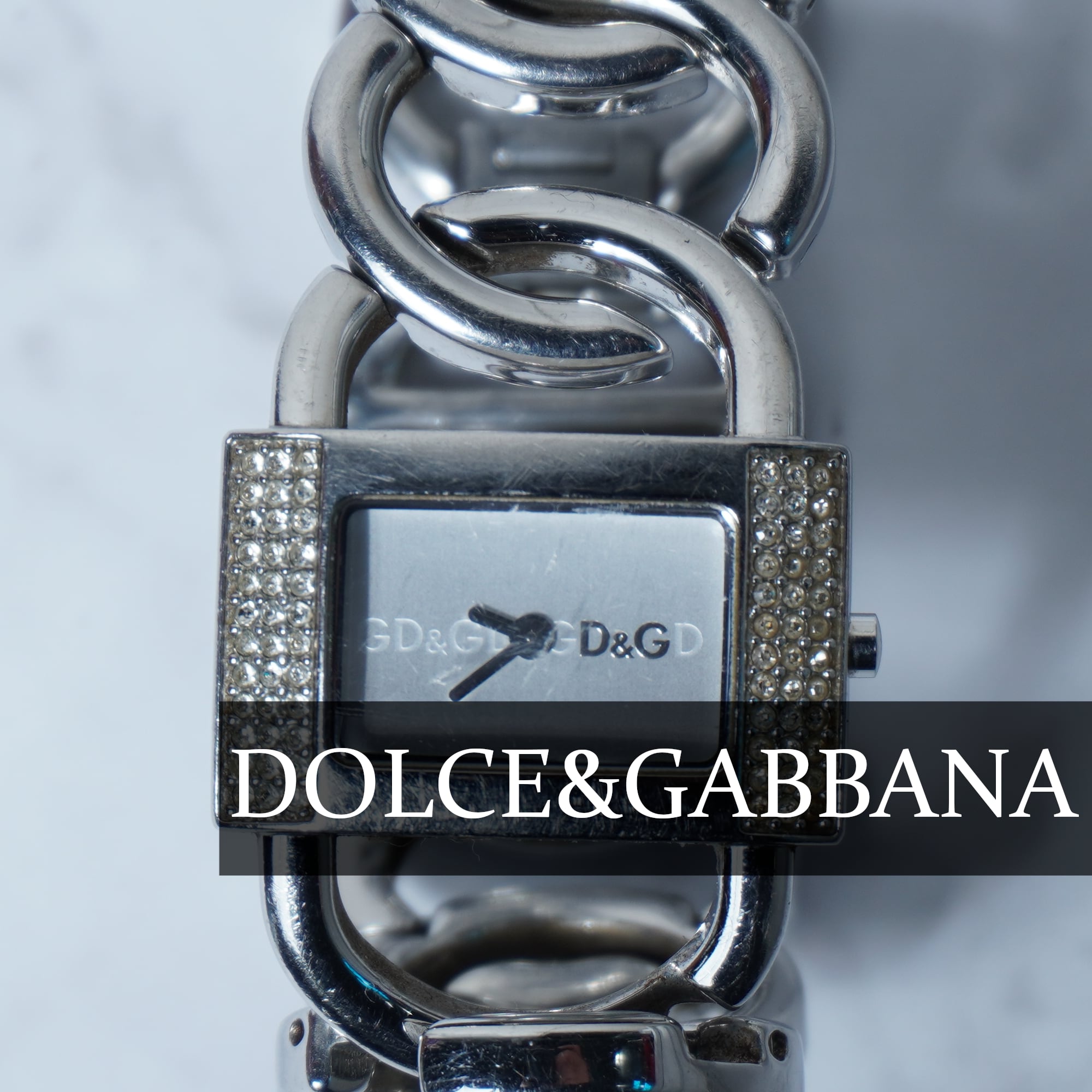 【DOLCE&GABBNA】ドルチェ&ガッバーナ 稼働品 D&Gロゴラインストーンベゼルバングルクォーツウォッチ